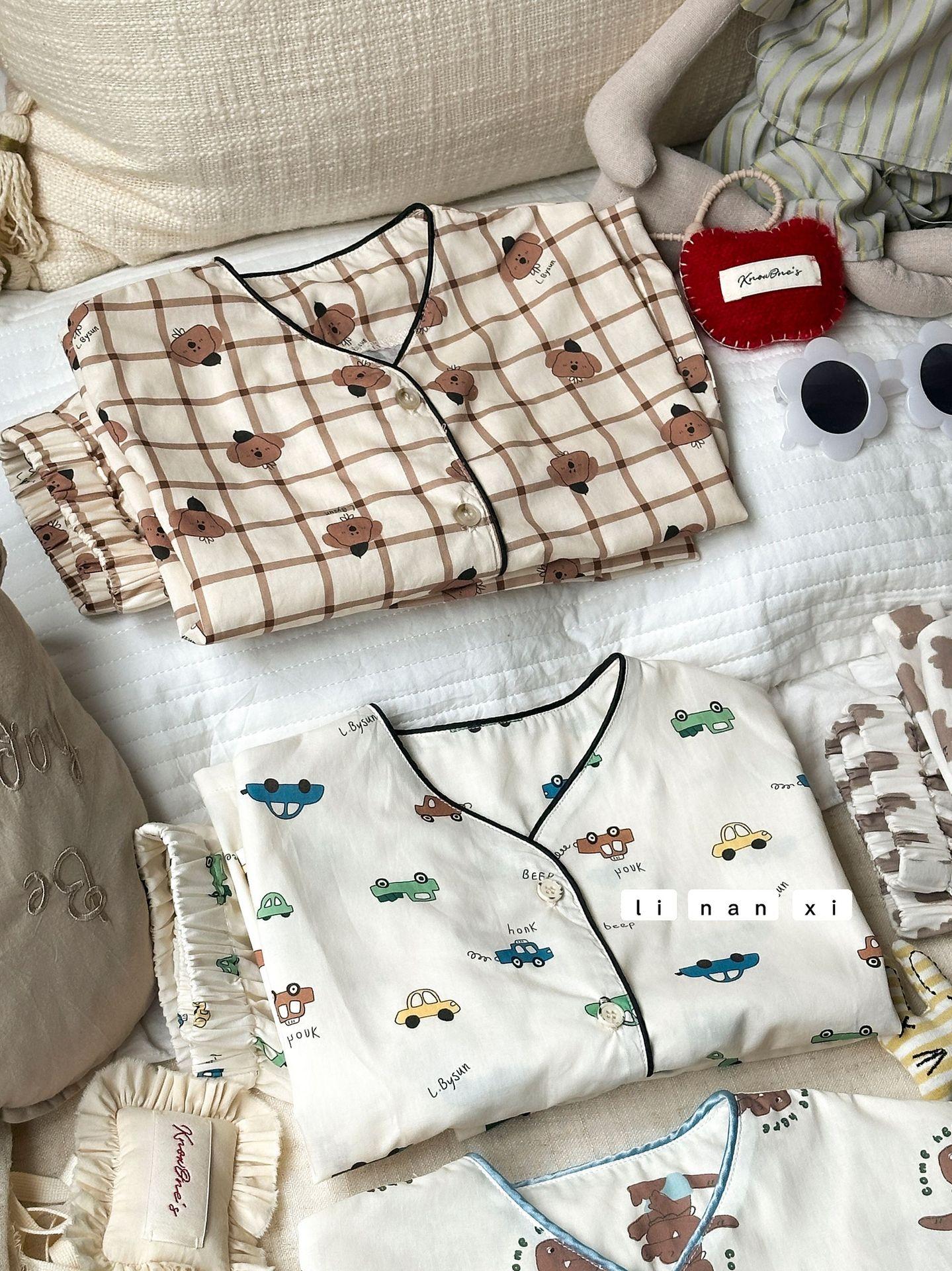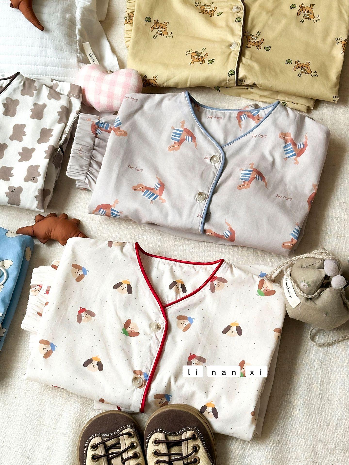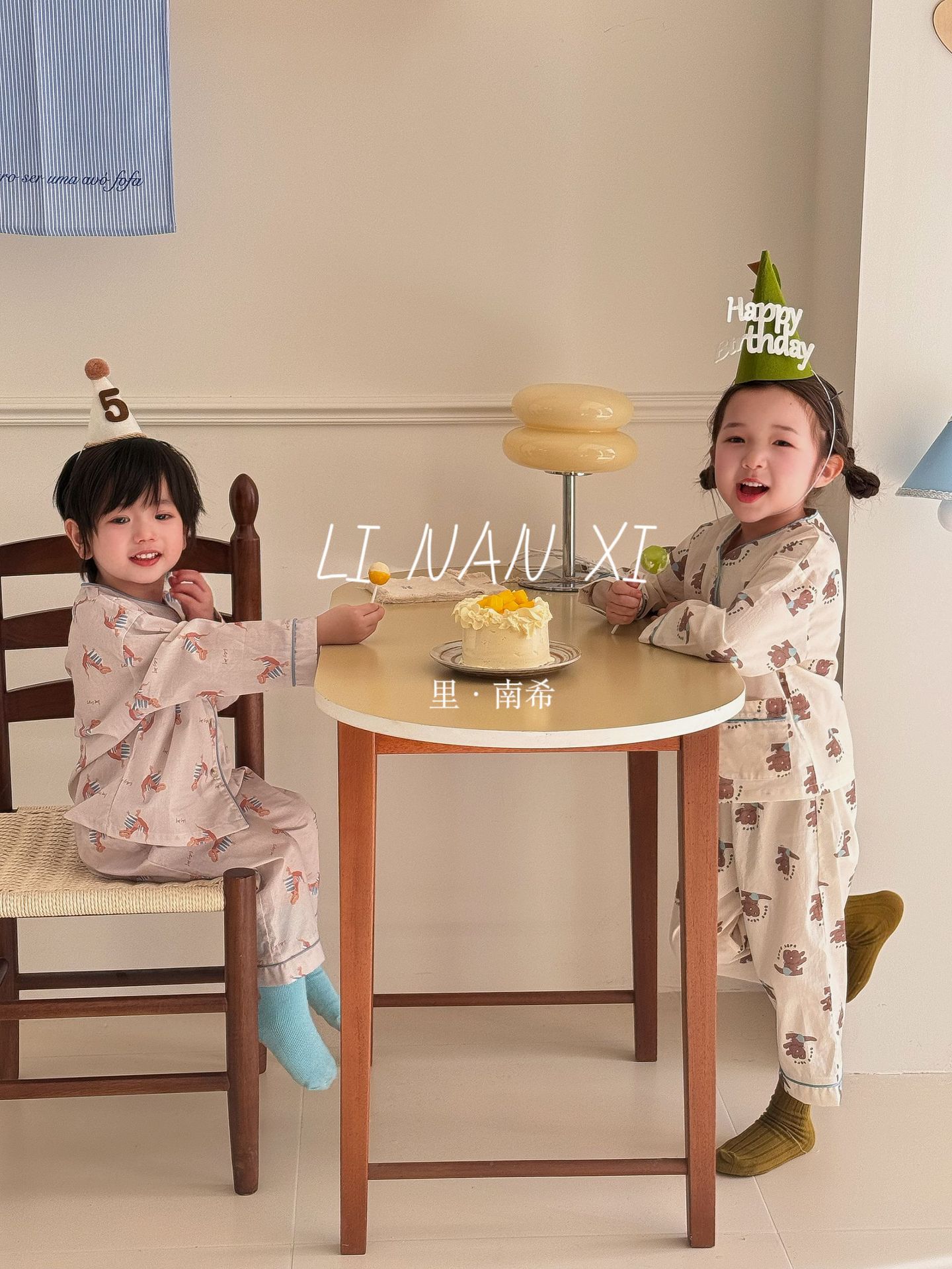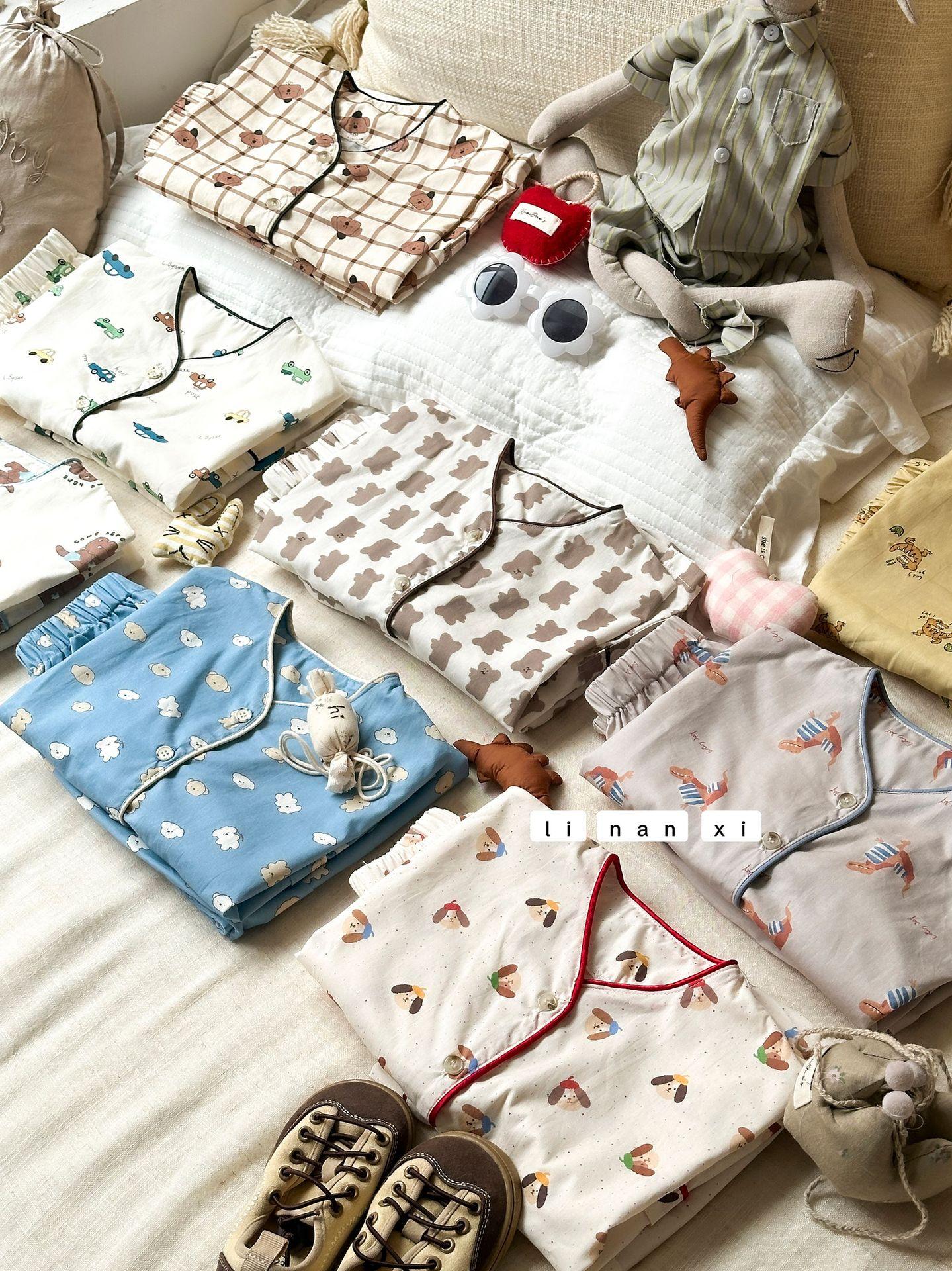 Pijamas y Pijamas Coreanos para Niños 25 Otoño Nuevo Algodón Bebé Dibujos Animados Lindo Conjunto Ropa para Casa 85005