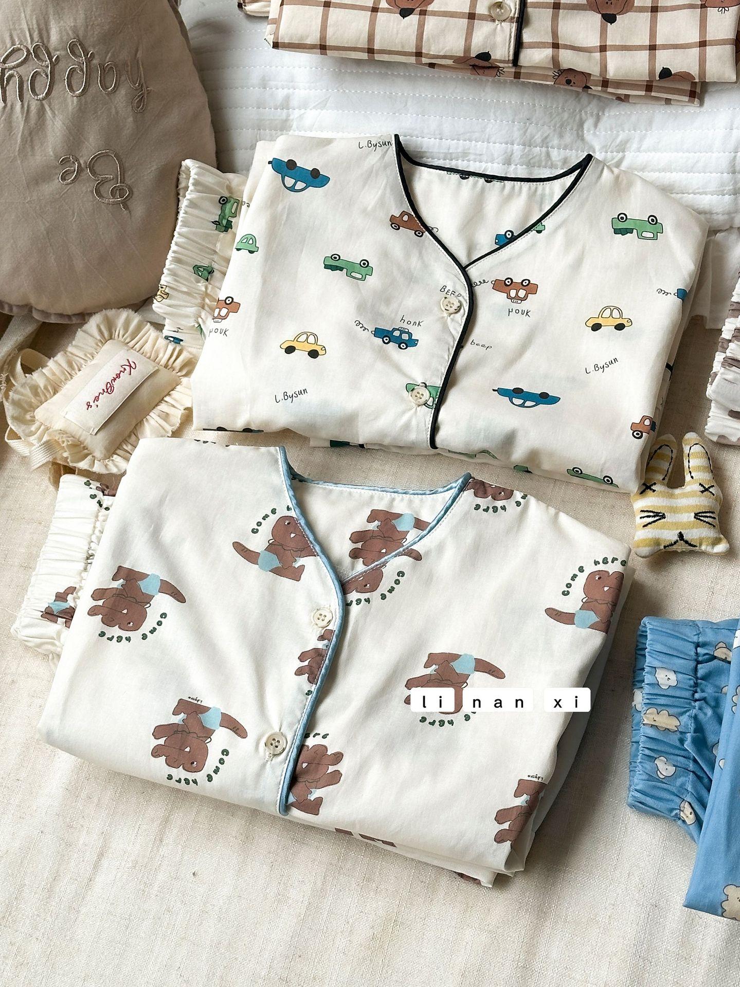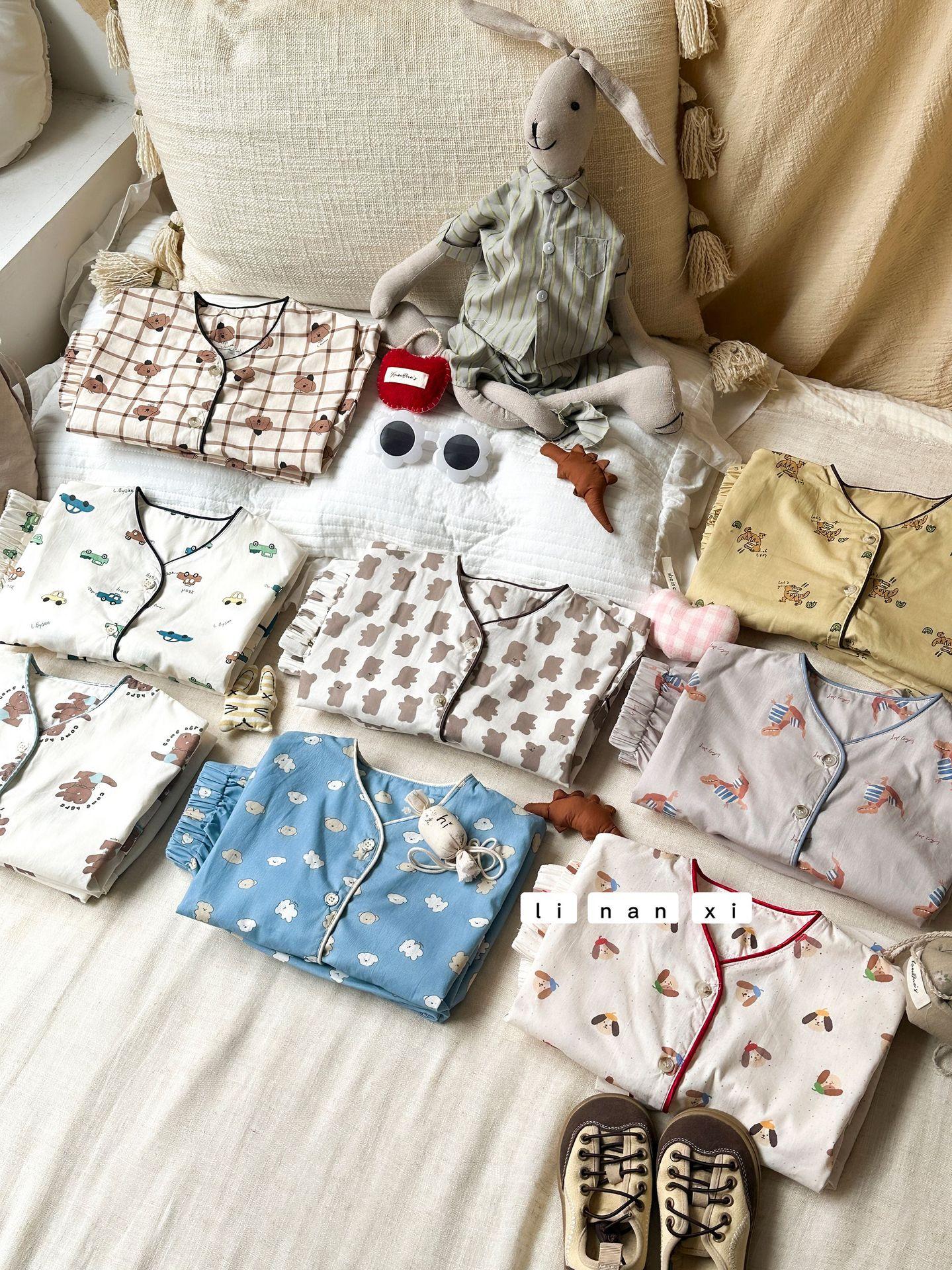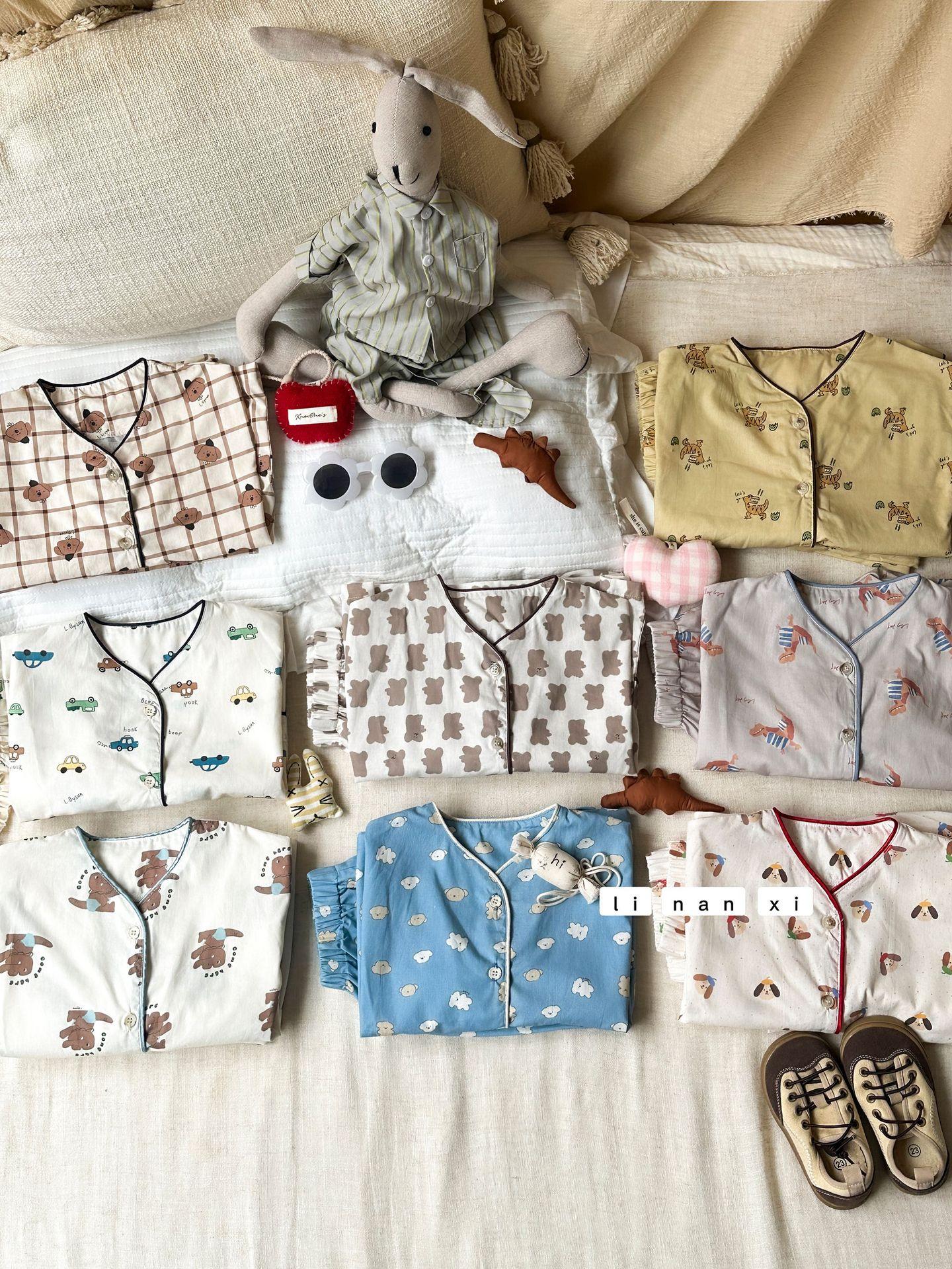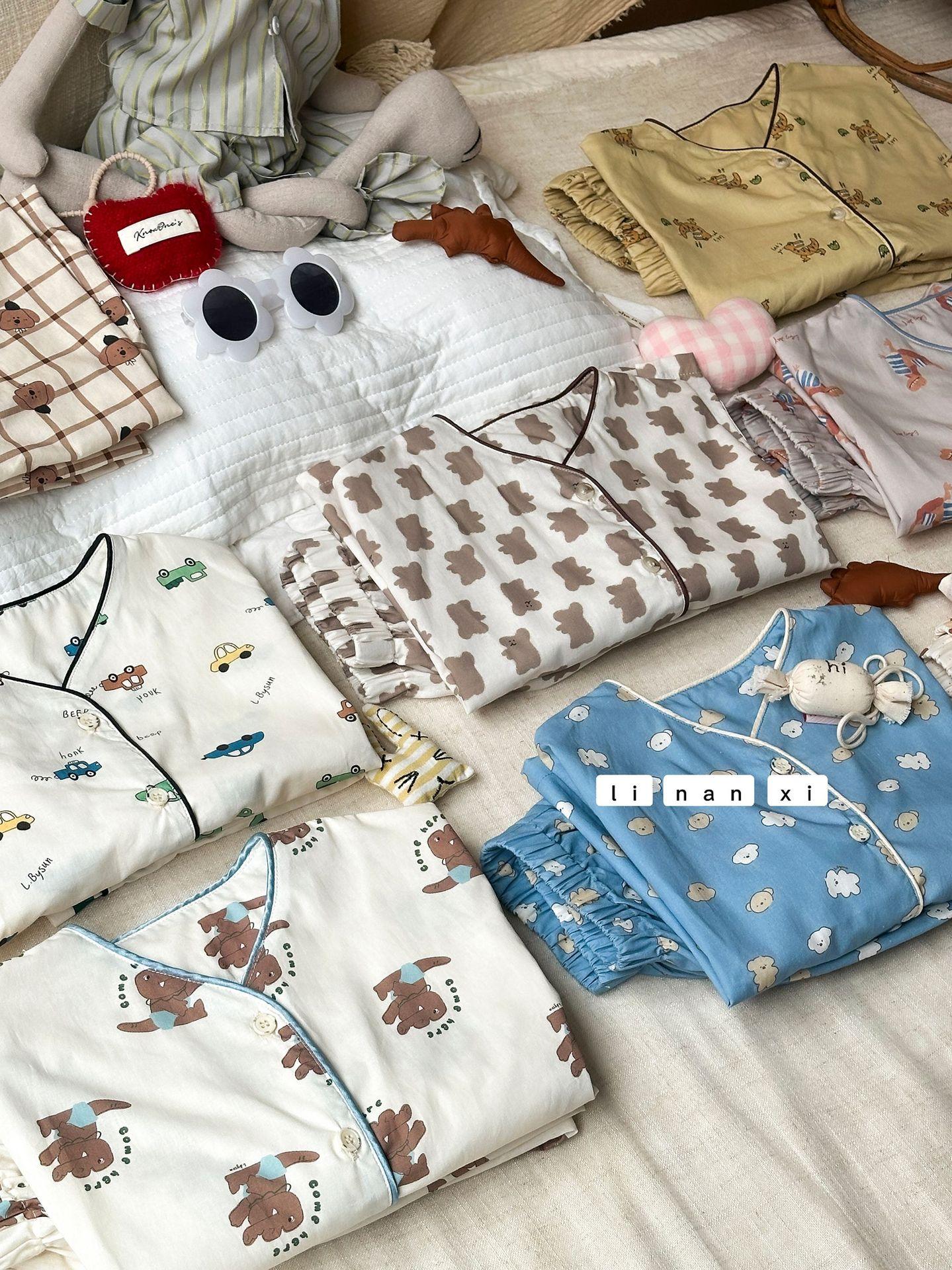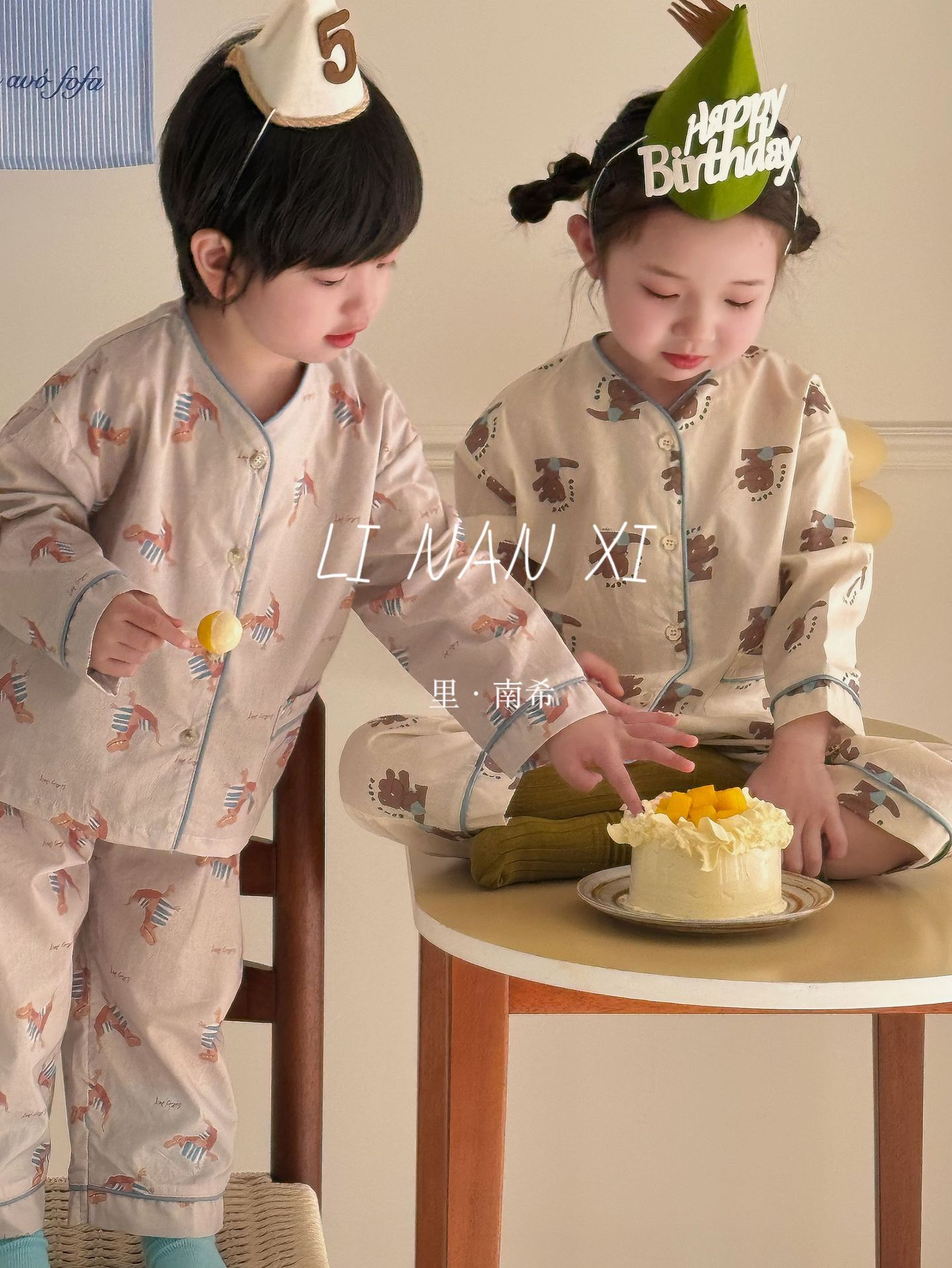 Pijamas y Pijamas Coreanos para Niños 25 Otoño Nuevo Algodón Bebé Dibujos Animados Lindo Conjunto Ropa para Casa 85005