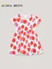 Falda de princesa para niñas de estilo europeo y americano, comercio exterior, verano, nuevo vestido para niñas, falda de manga corta con estampado de fresas lindo