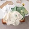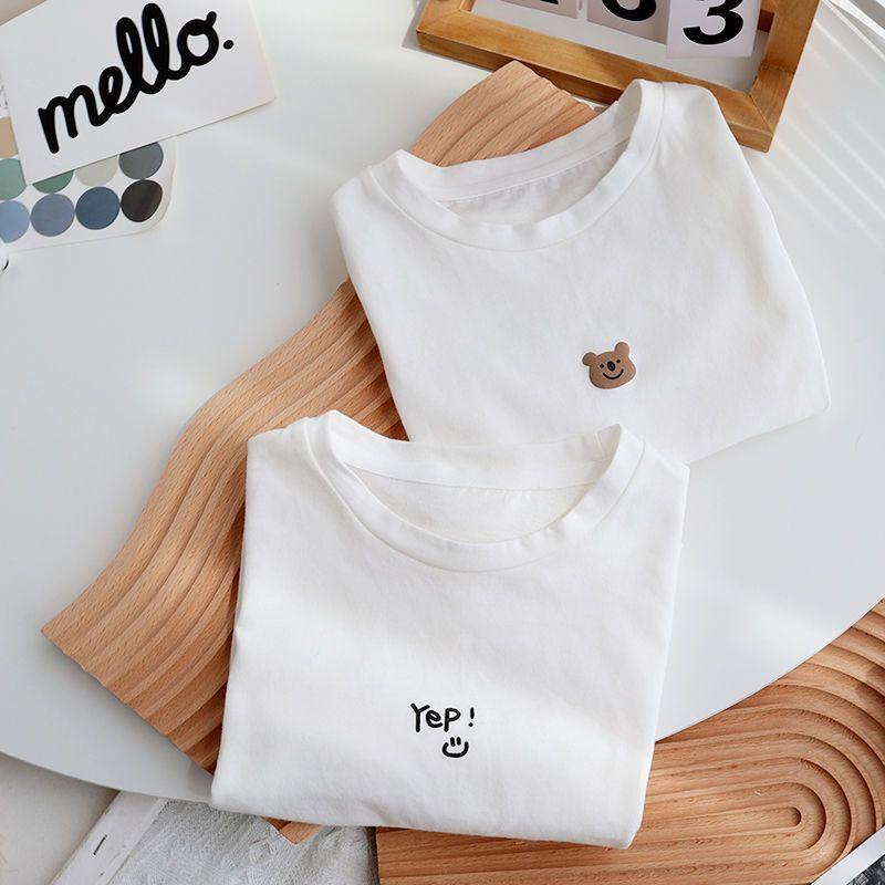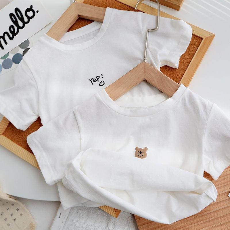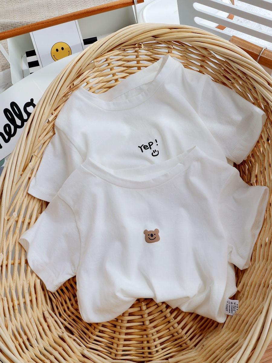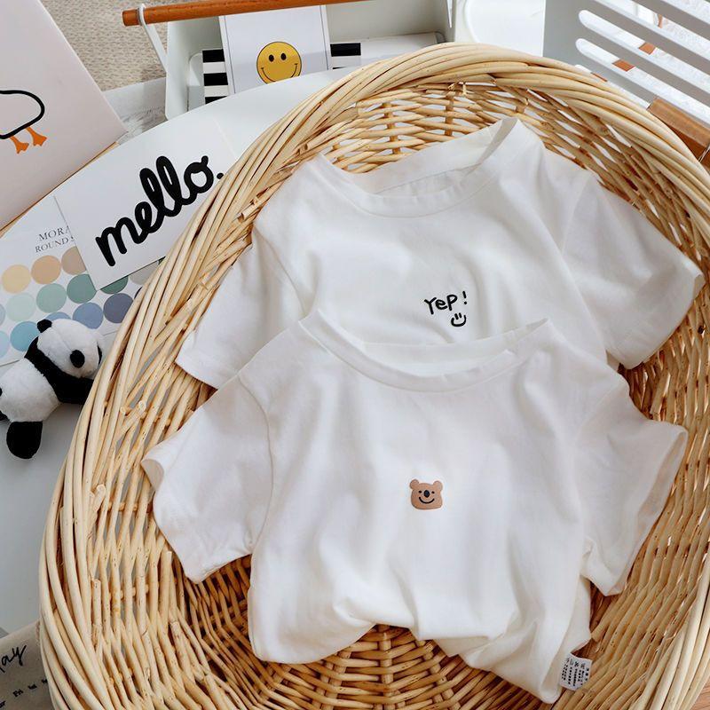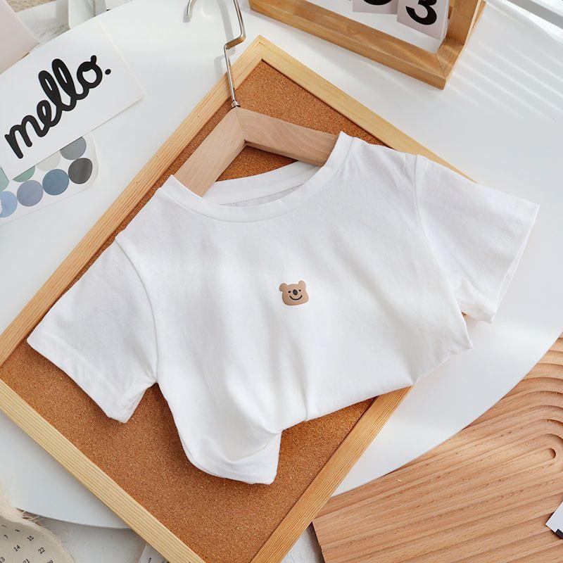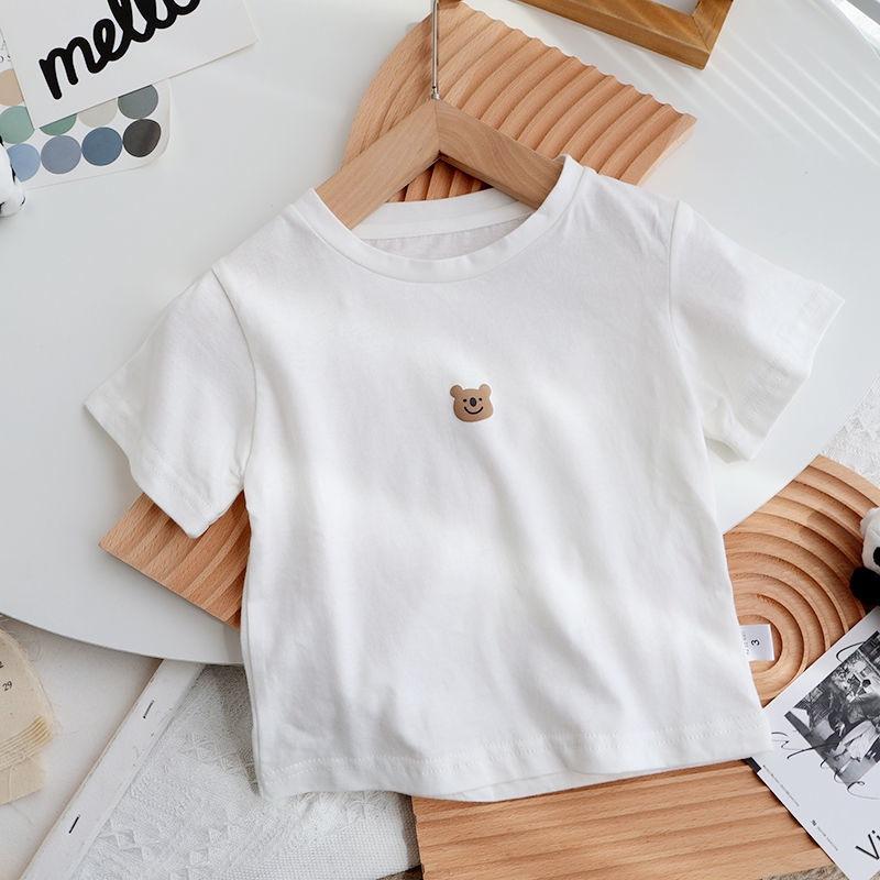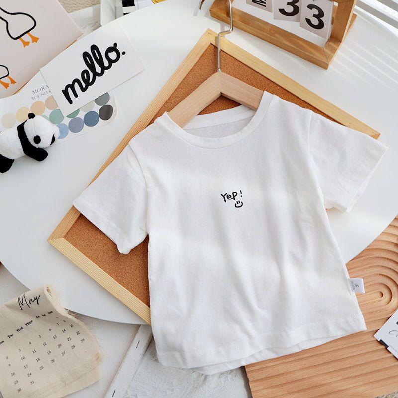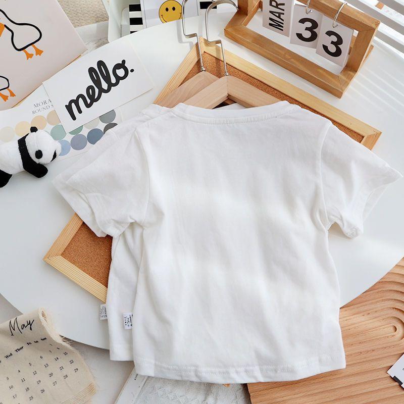 Camiseta de manga corta de verano para niños y niñas, estilo extranjero para bebés, marca de moda personalizada para niños, comercio exterior, letras de dibujos animados INS, manga media blanca