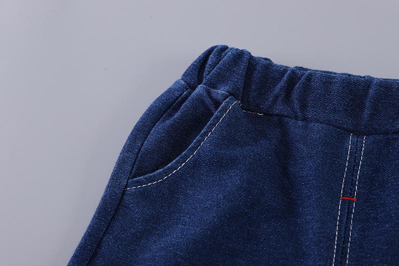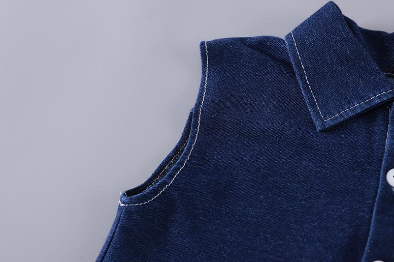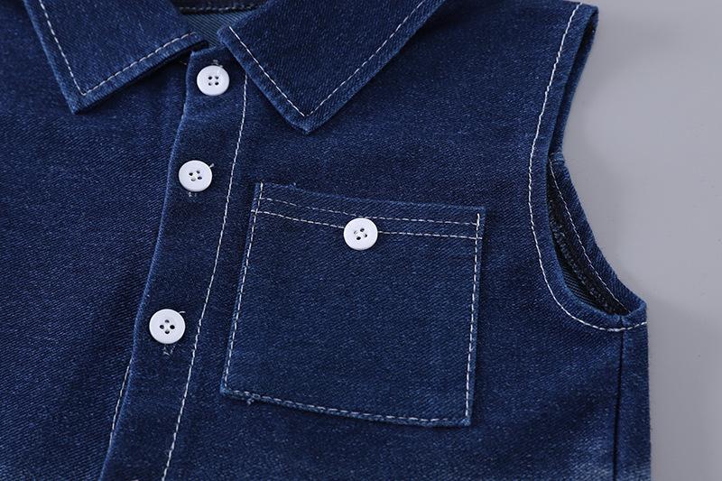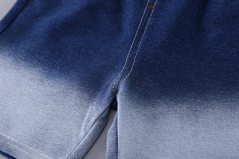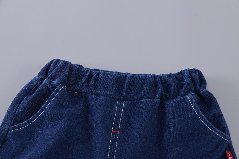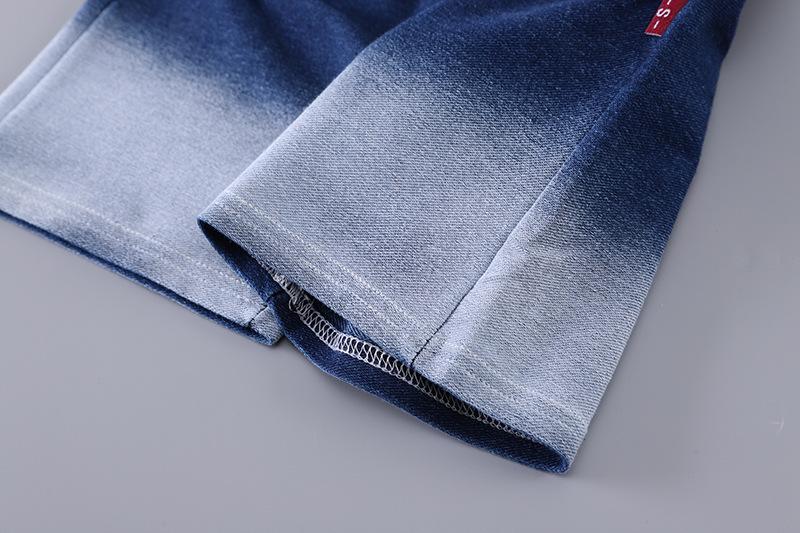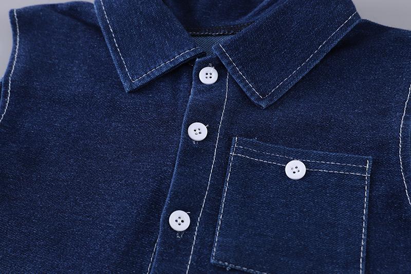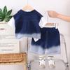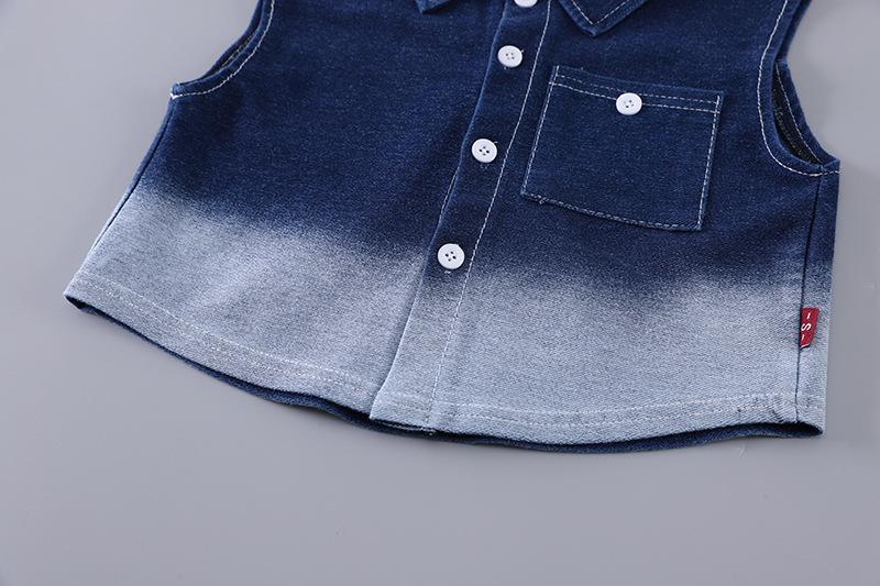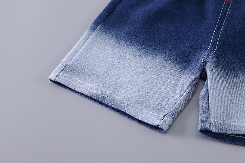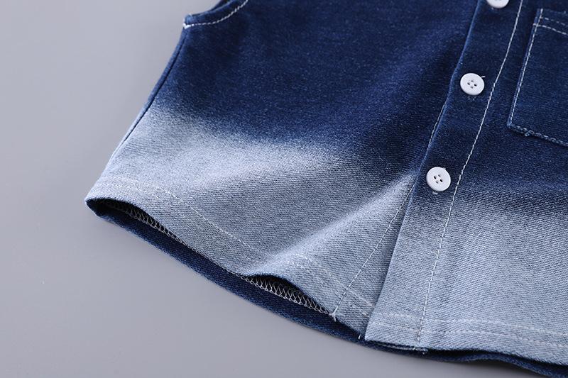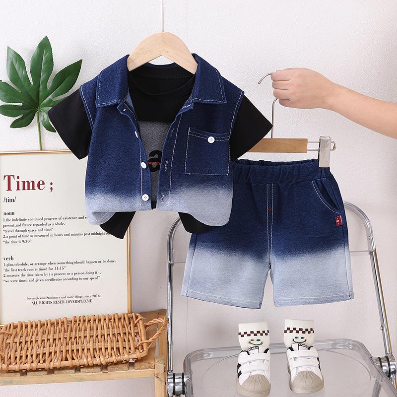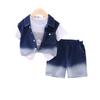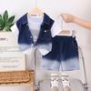 Conjunto de camisa de manga corta para niño, novedad de 2025, ropa bonita de verano para bebé con solapa, conjunto de tres piezas de mezclilla degradada para niño