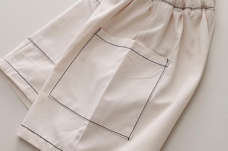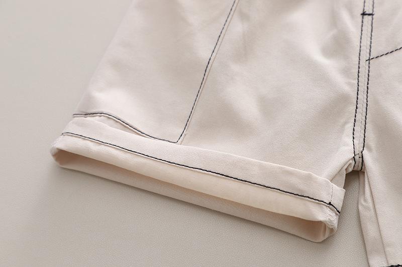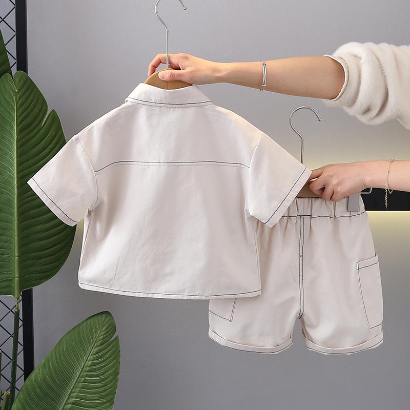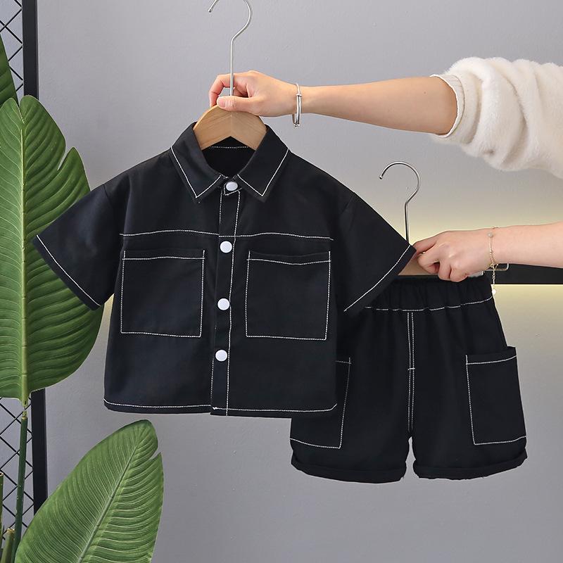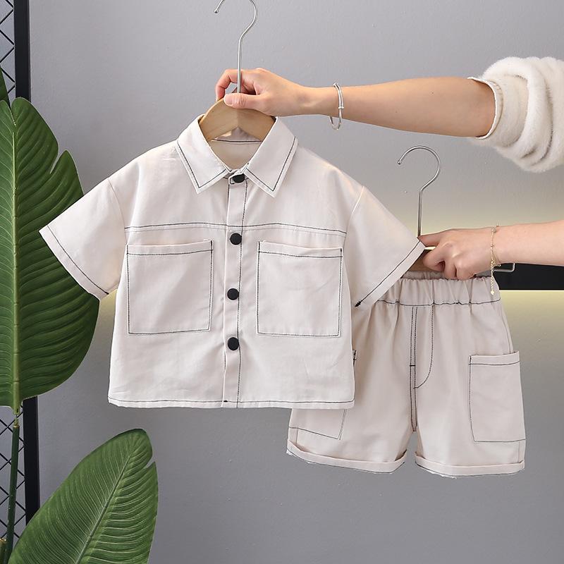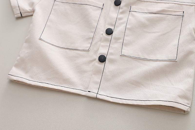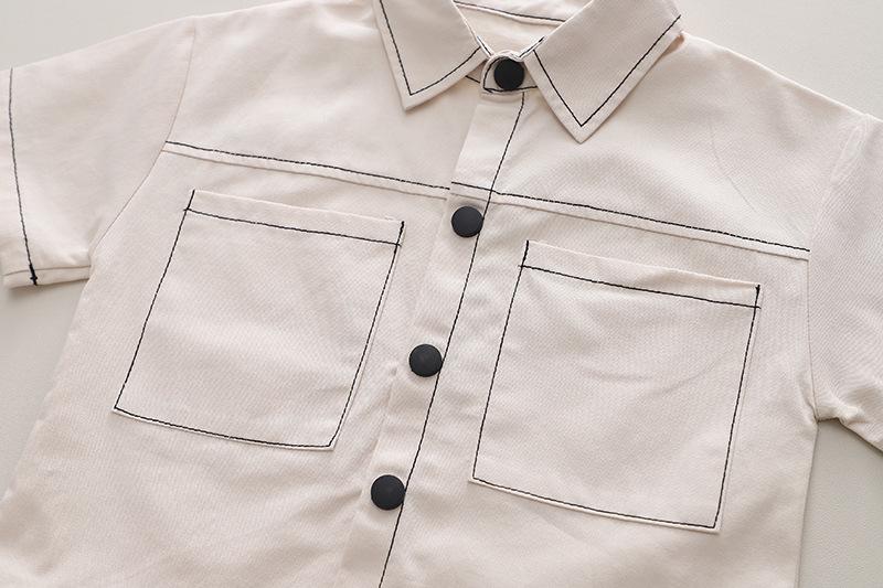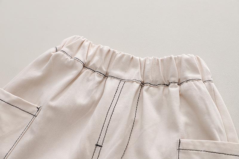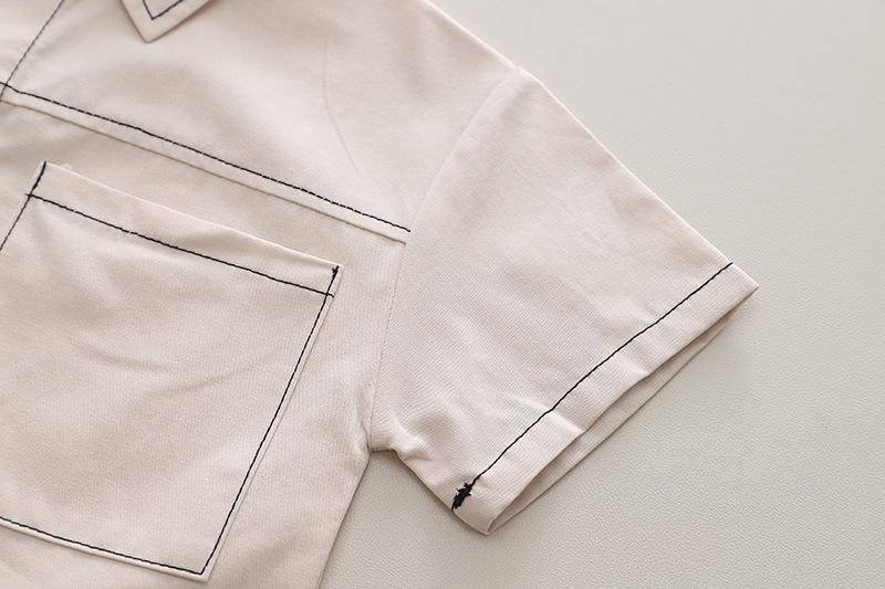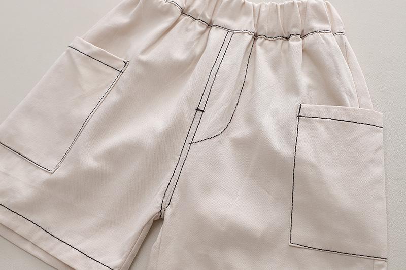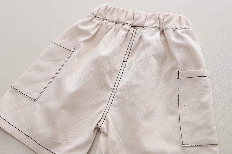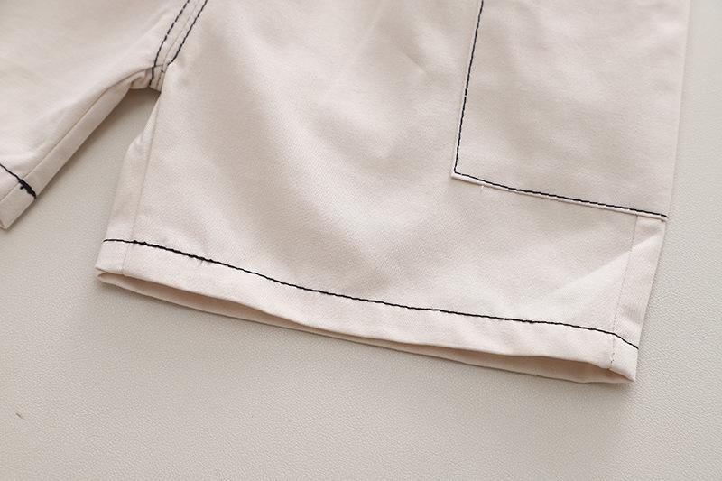 Conjunto de dos piezas de manga corta de color liso con bolsillos grandes y herramientas de moda para bebé niño de verano 2024, tendencia de una generación de cabello