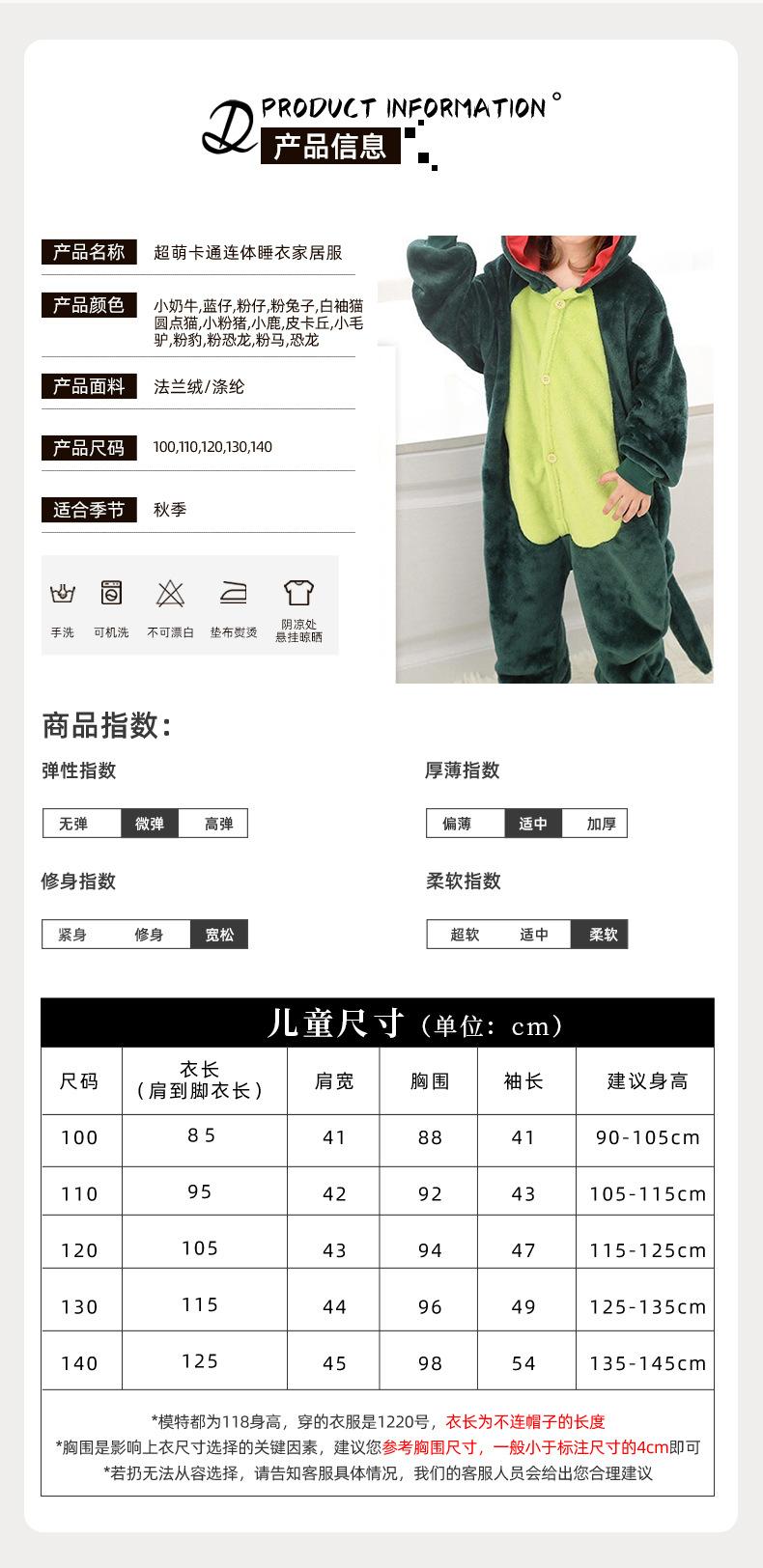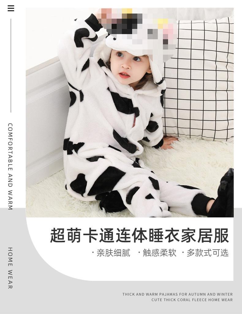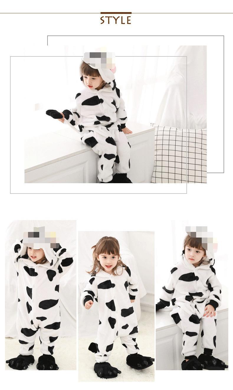 Pijamas de Vaca de Dibujos Animados Super Lindos Invierno Niños Niños Grandes Animales Niños de Una Pieza Niñas Otoño e Invierno Venta al por Mayor Franela