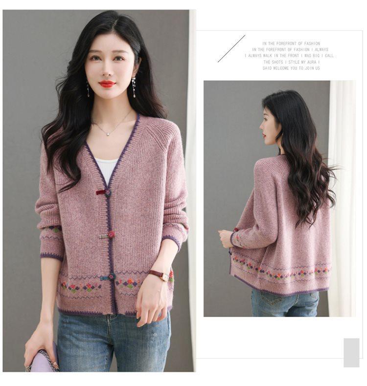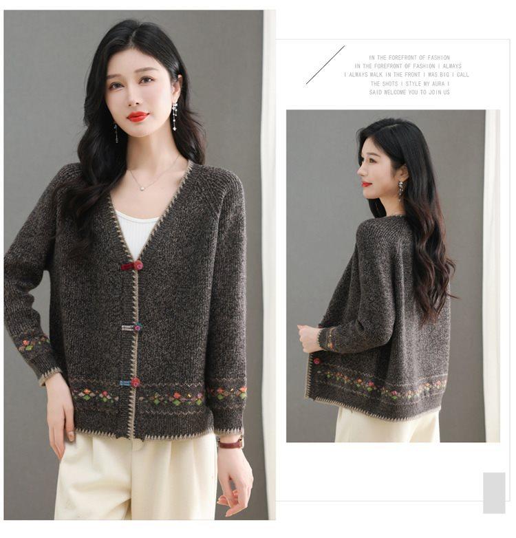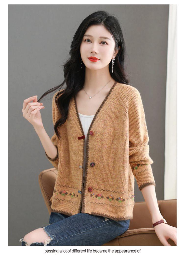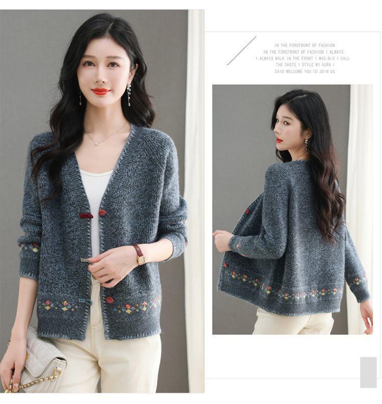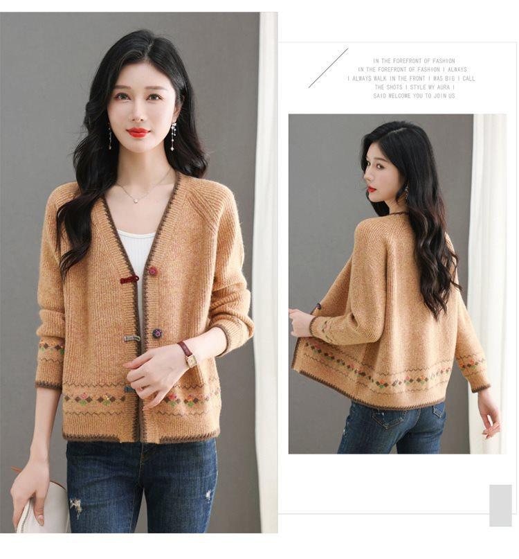 Cárdigan de Lana Suéter Corto Holgado para Mujer, Nuevo Estilo de Primavera y Otoño, Cárdigan Tejido Petite, Suéter Exterior de Mamá