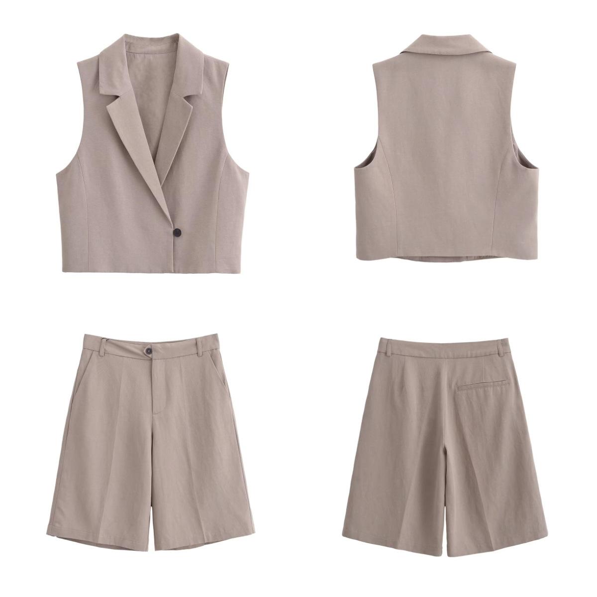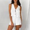 Nuevos Productos de Verano 2024 para Mujer Ropa de Mujer Transfronteriza Europea y Americana Ol Traje Casual Simple Chaleco + Shorts
