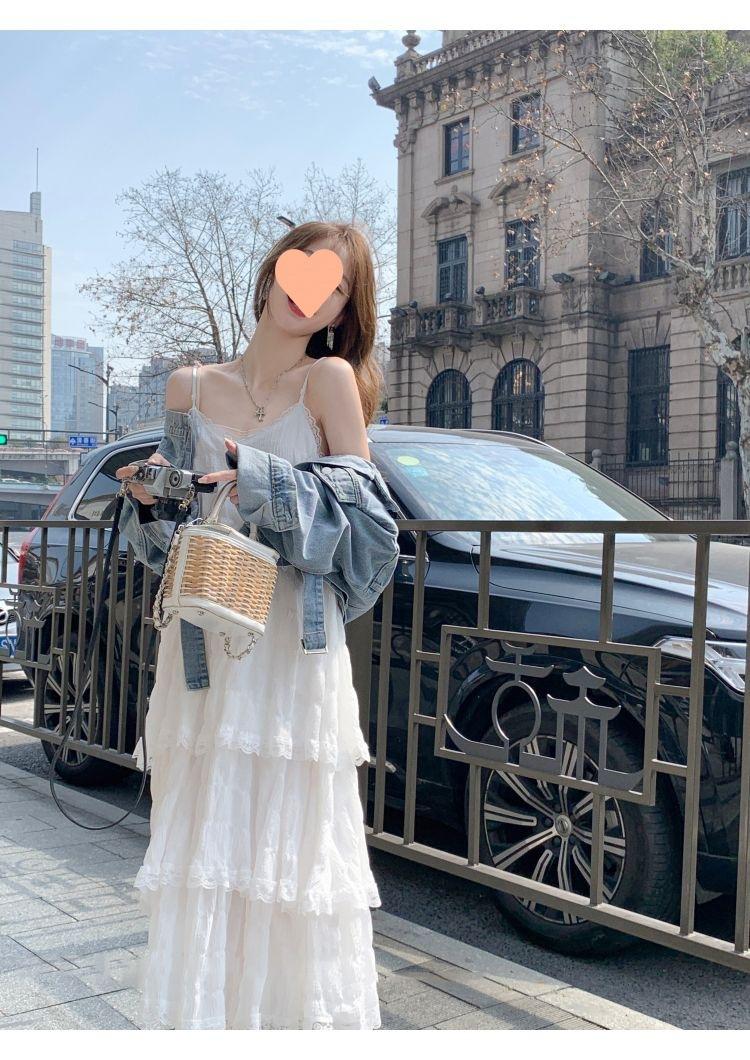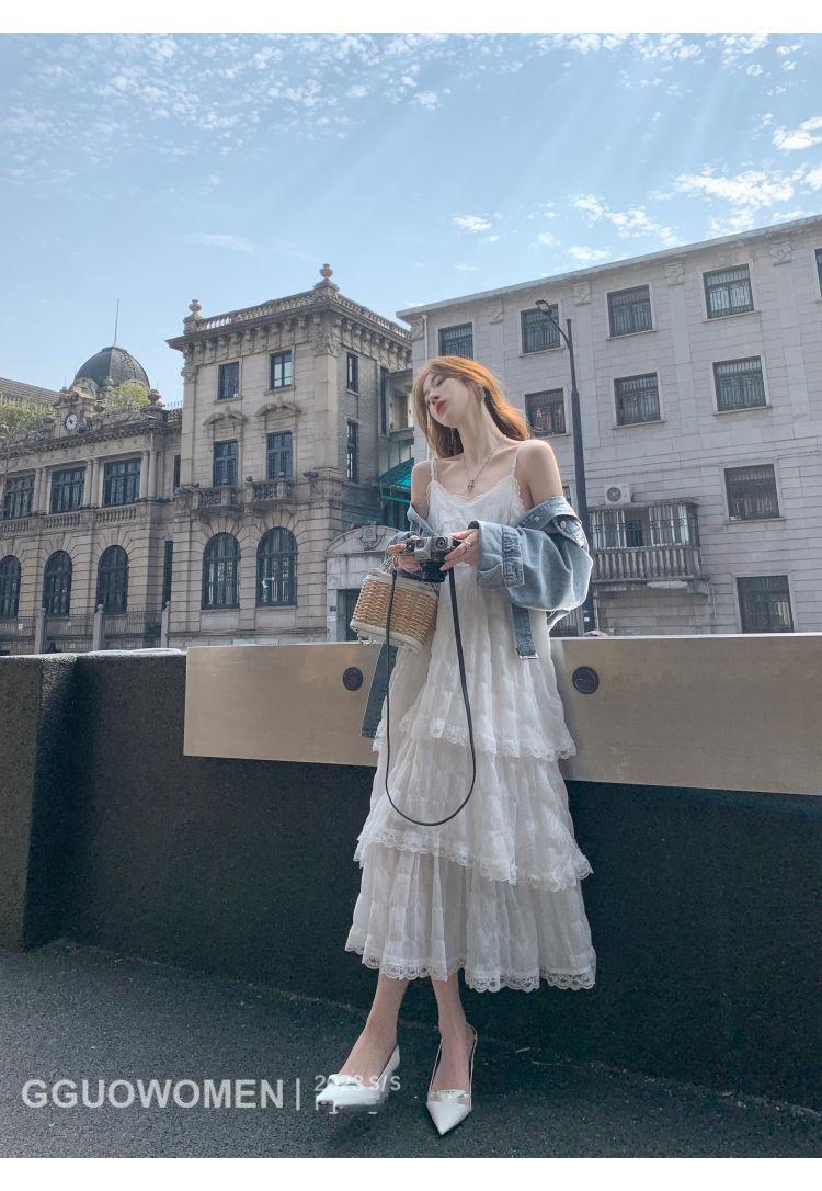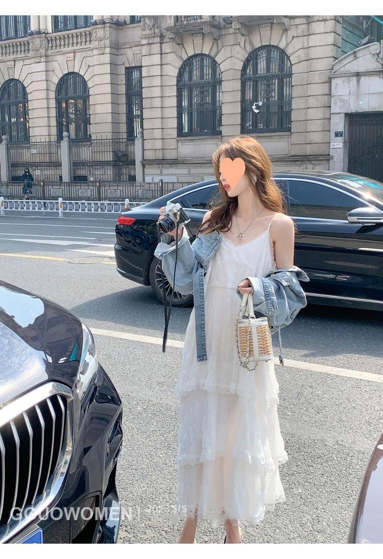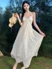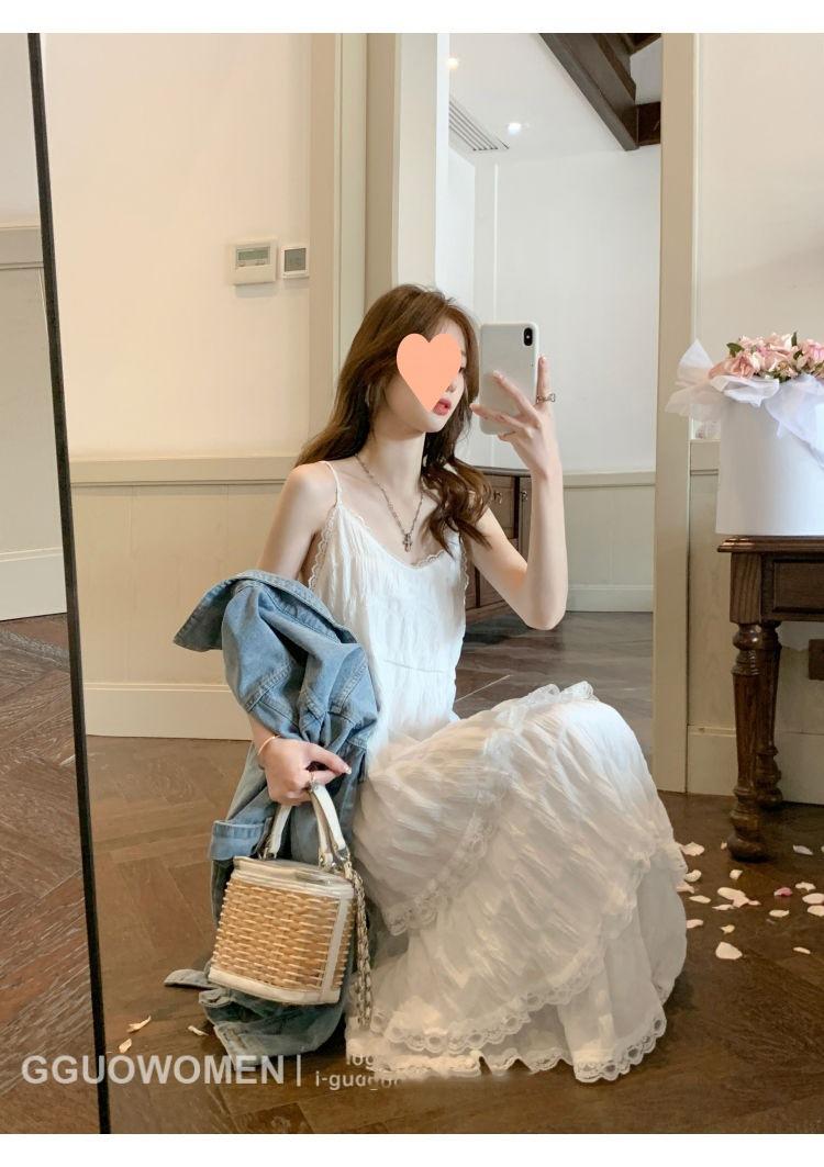 Vestido Blanco Verano 2025 Nuevo Vacaciones Junto al Mar Vestido de Playa Deseo Puro Falda de Tirantes Sin Mangas