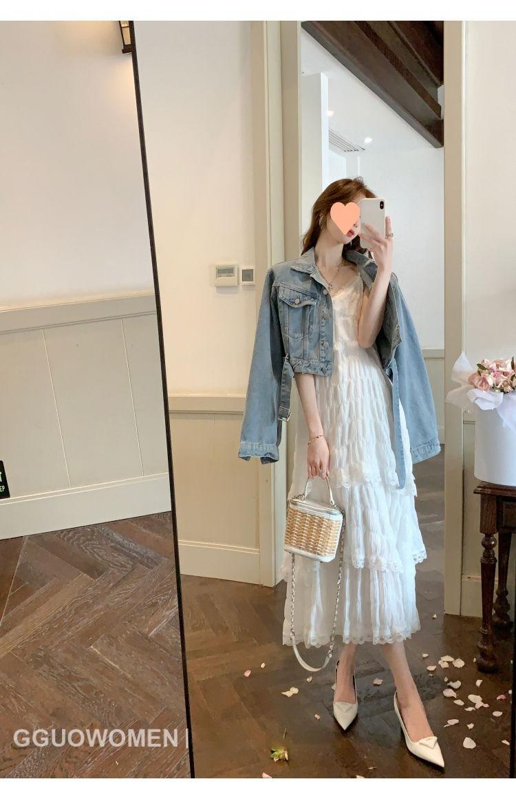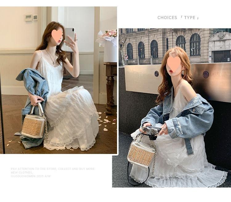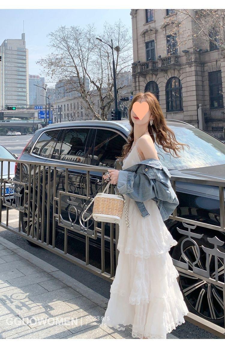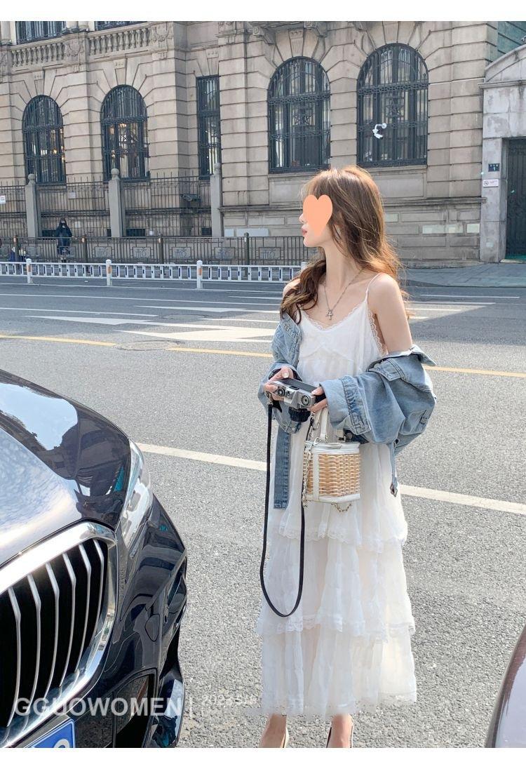 Vestido Blanco Verano 2025 Nuevo Vacaciones Junto al Mar Vestido de Playa Deseo Puro Falda de Tirantes Sin Mangas