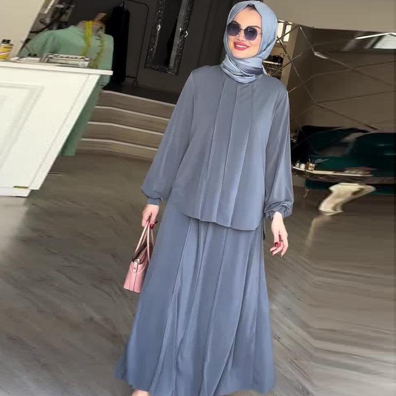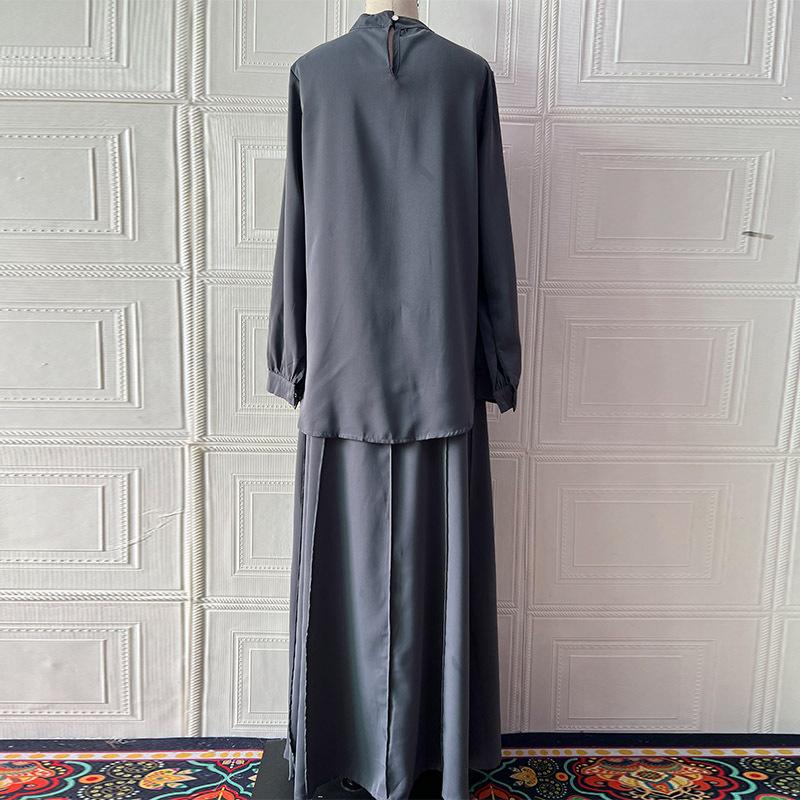 2024 Amazon Europeo y Americano Comercio Exterior Transfronterizo Nuevo Elegante Tops y Pantalones Musulmanes Sueltos Falda de Dos Piezas