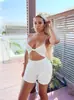 Mono de color sólido de moda con cuello alto, manga larga y hombros descubiertos con diseño de chica sexy europea y americana