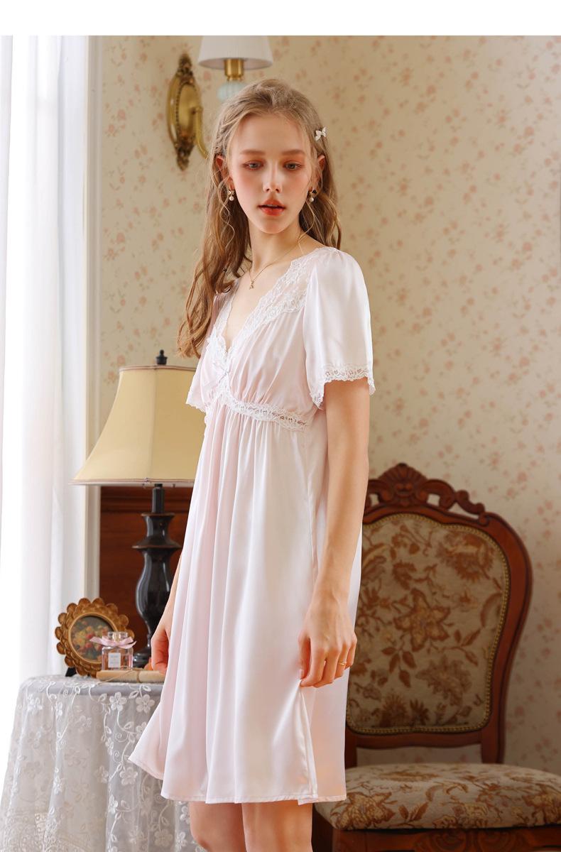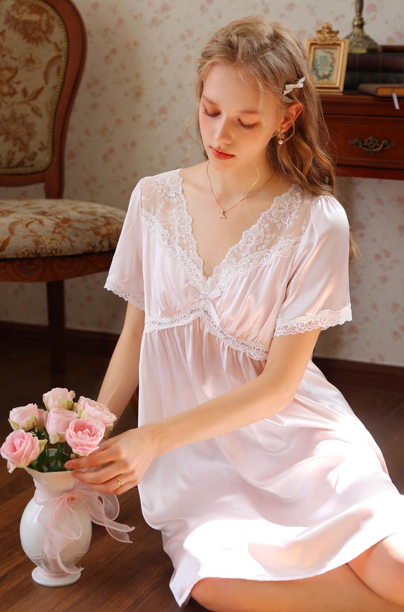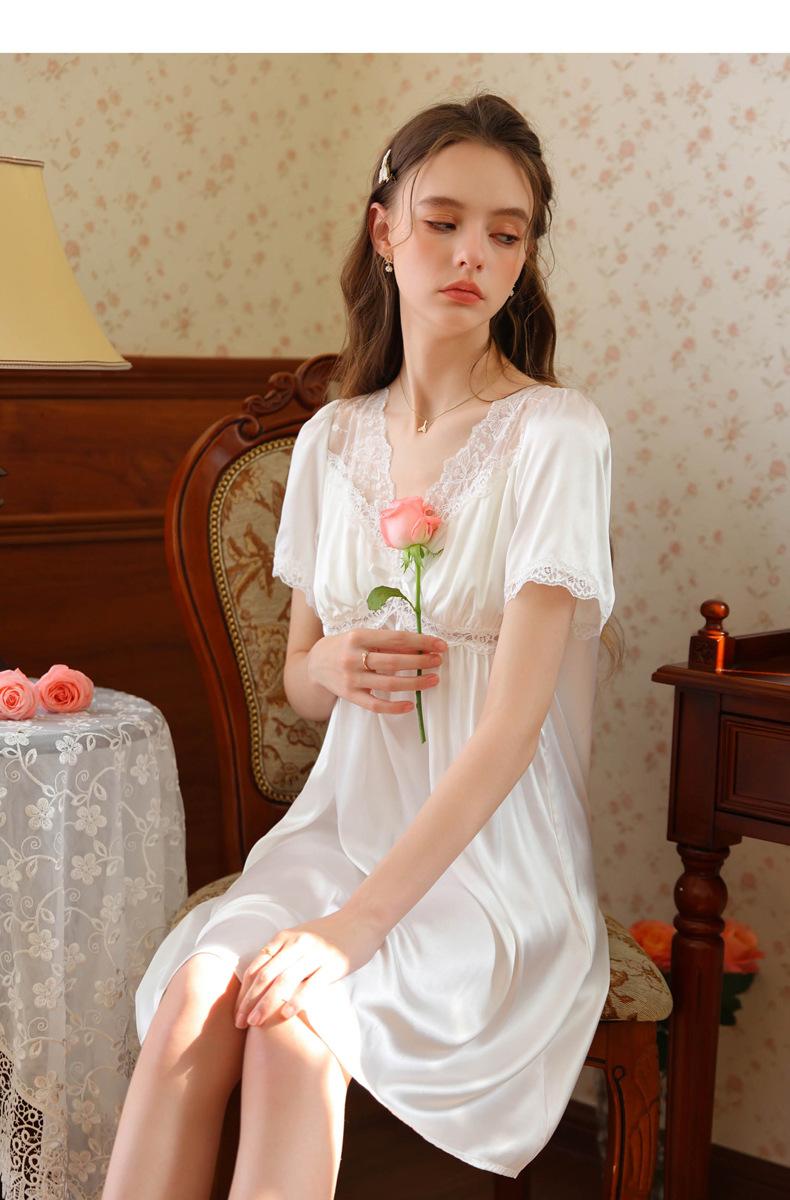 Camisón de encaje sexy de verano de alta calidad con encaje de manga corta, nuevo estilo princesa palacio, estilo francés, ropa de casa para niña.