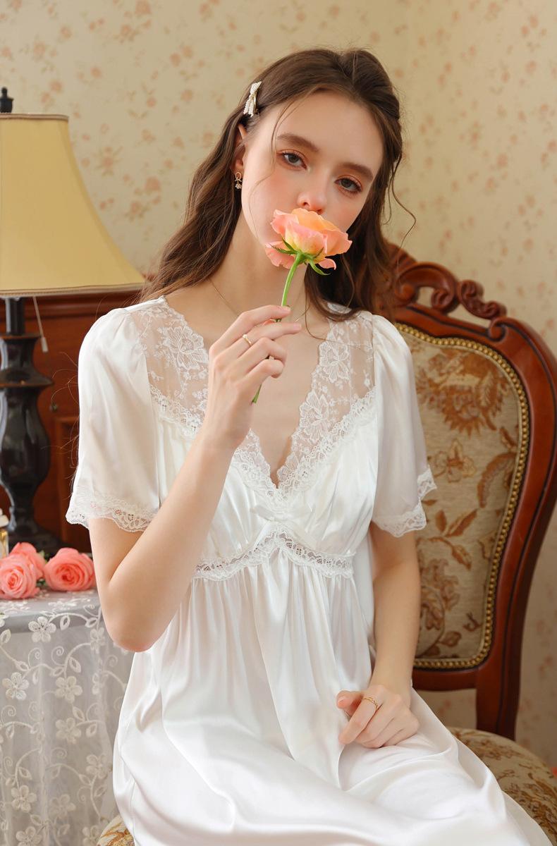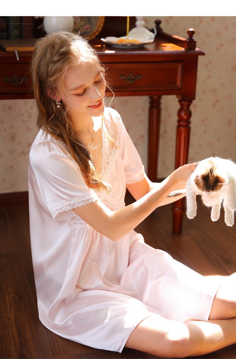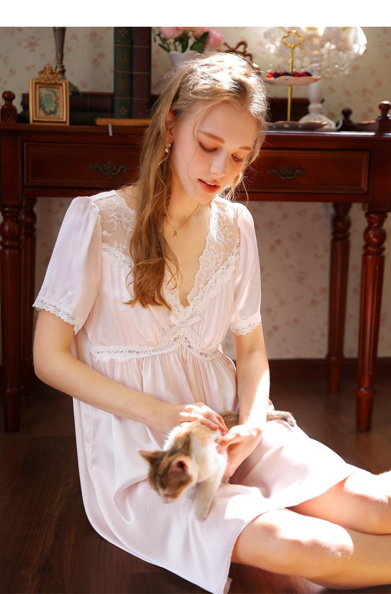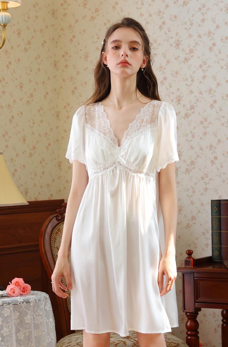 Camisón de encaje sexy de verano de alta calidad con encaje de manga corta, nuevo estilo princesa palacio, estilo francés, ropa de casa para niña.