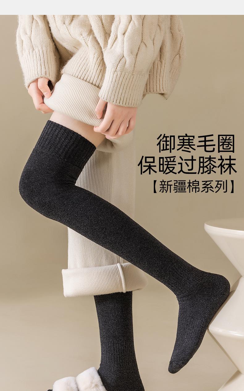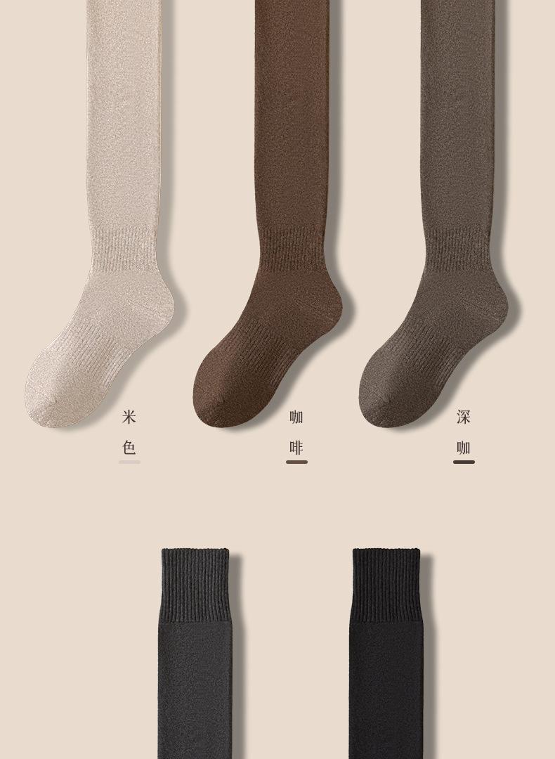 Calcetines de Algodón por Encima de la Rodilla para Mujer Otoño e Invierno con Forro Polar Gruesos Cálidos Absorbentes del Sudor Transpirables Medias Reductoras de Muslo Invierno