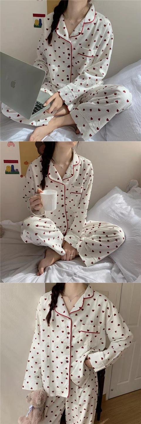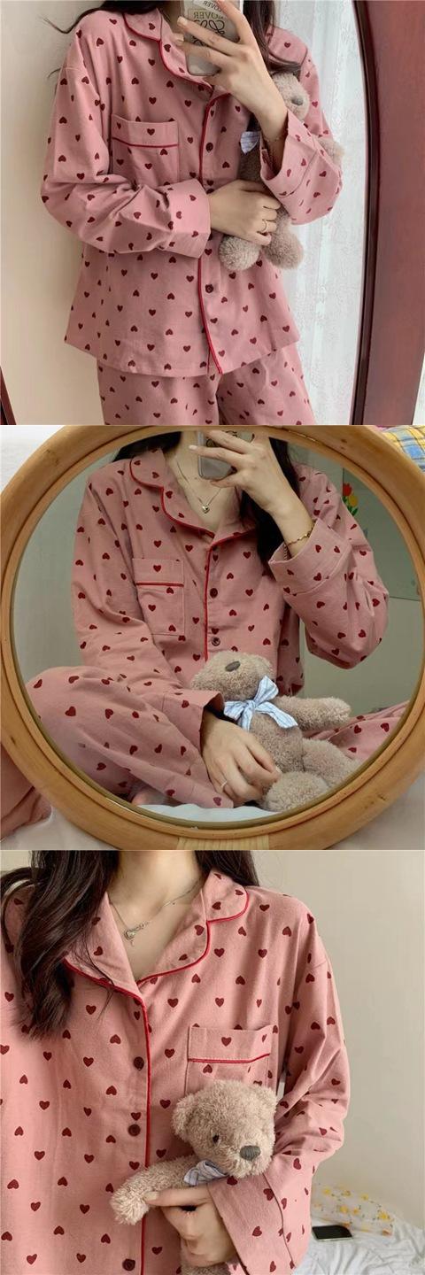 Pijamas de mujer de primavera y otoño de manga larga estilo coreano Internet popular de alta gama cárdigan traje de casa de niña traje de dos piezas otoño e invierno
