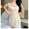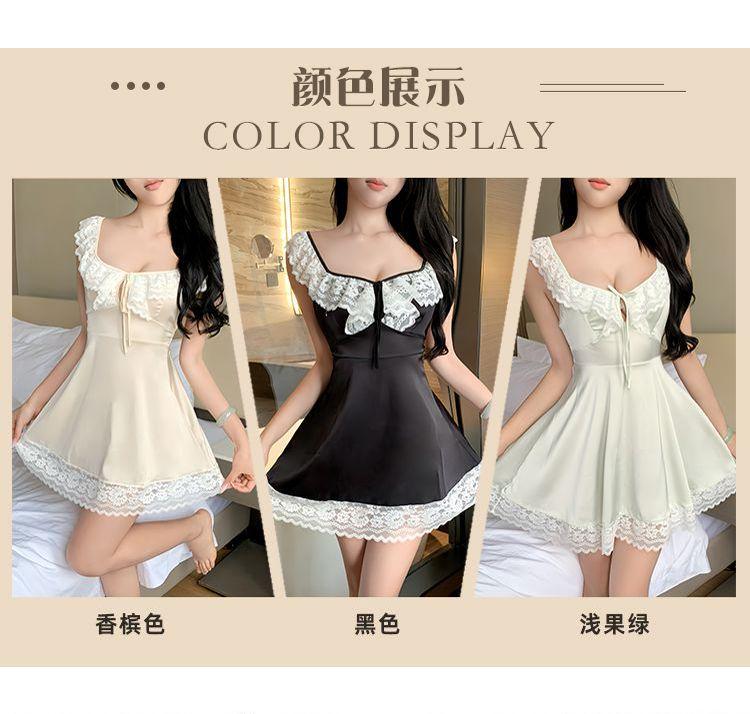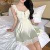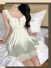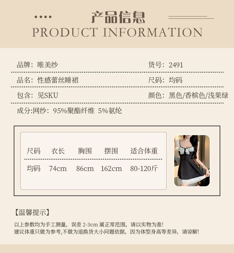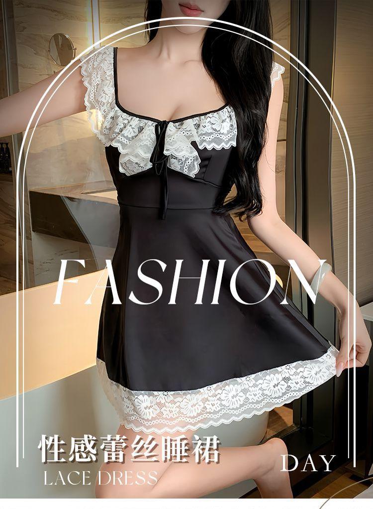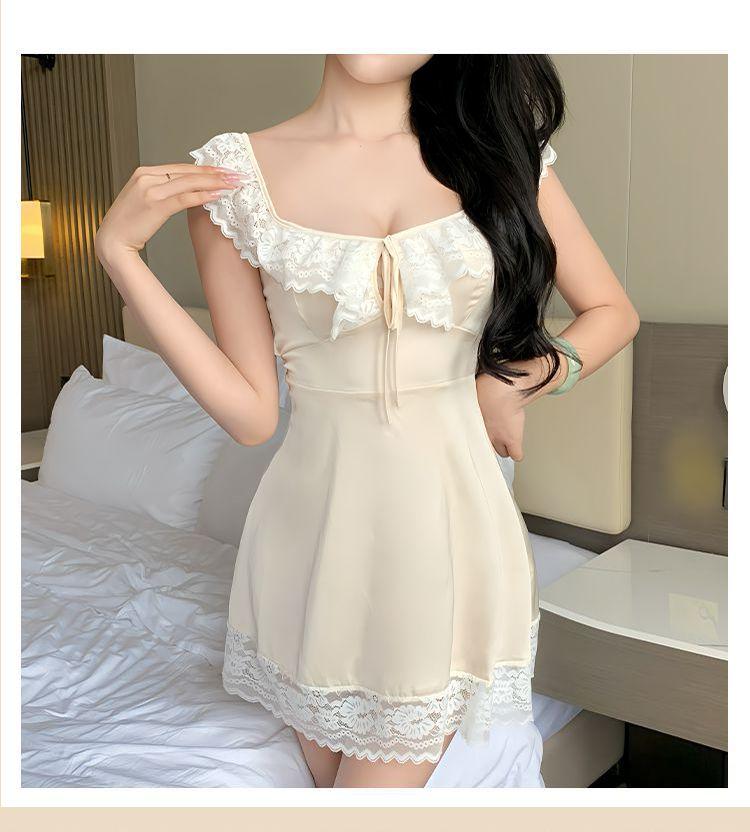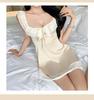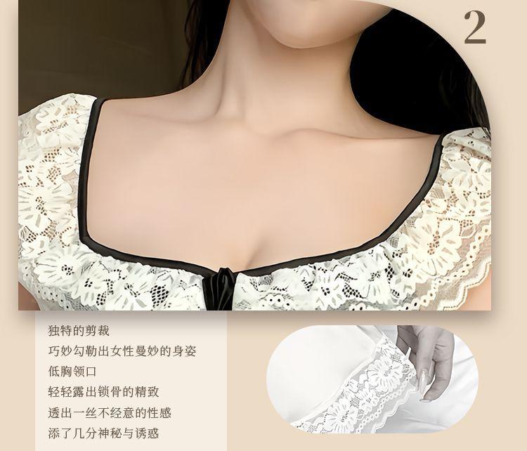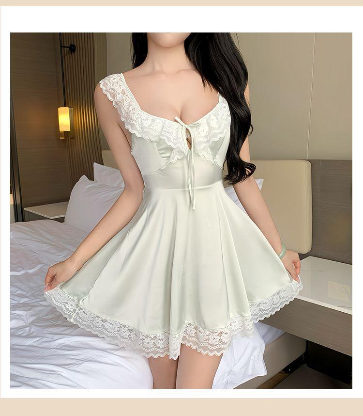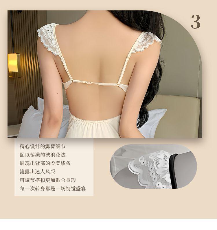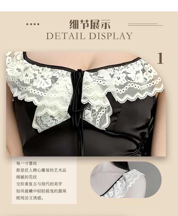 Hermoso Camisón Sexy de Gasa para Mujer Encaje Francés Sexy Camisón Satén de Alta Gama Espalda Descubierta Hogar Falda Suspensor