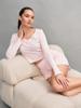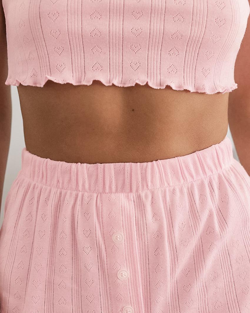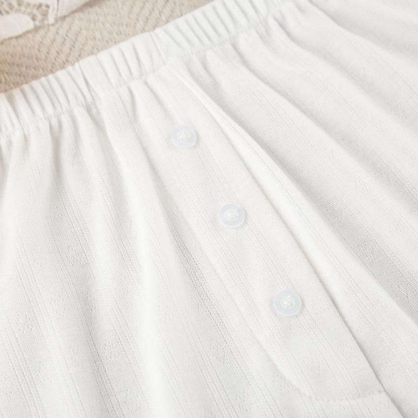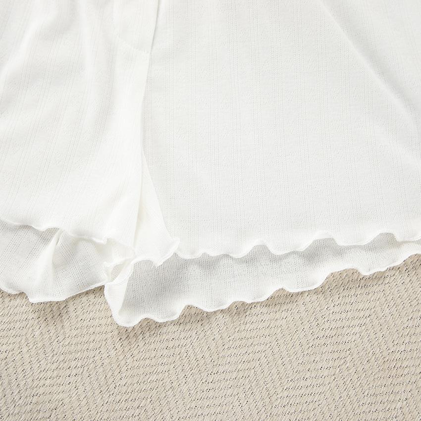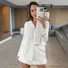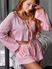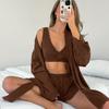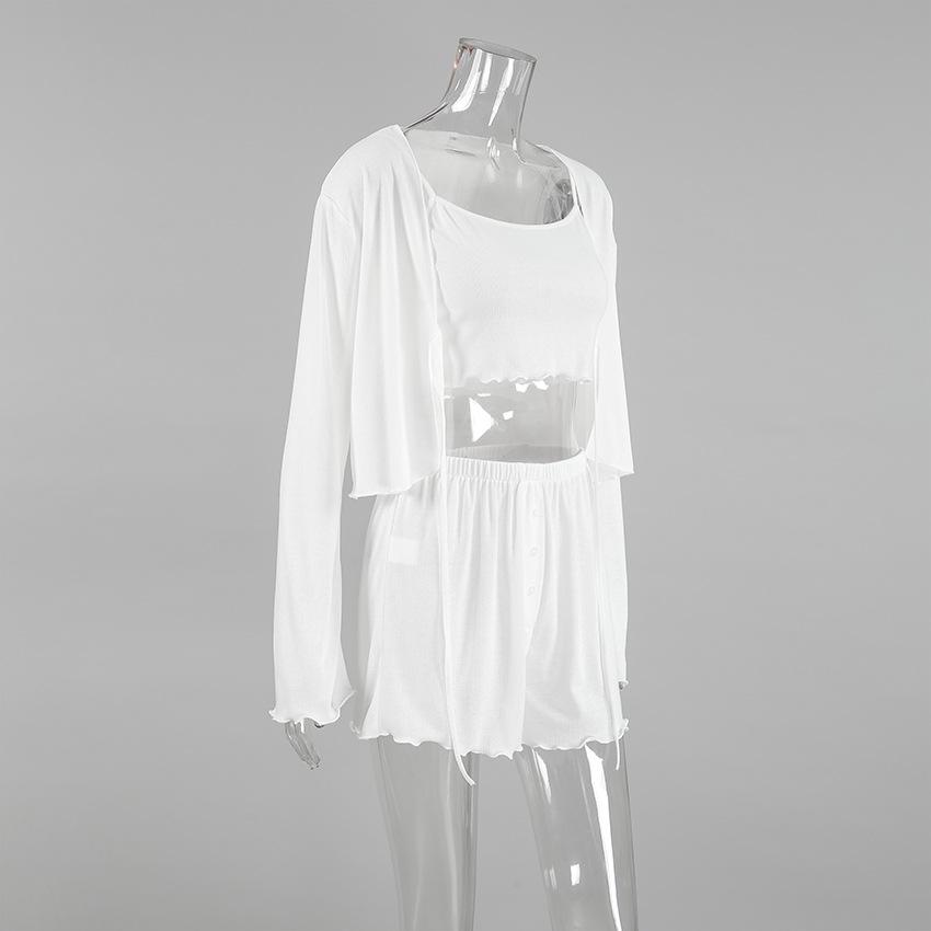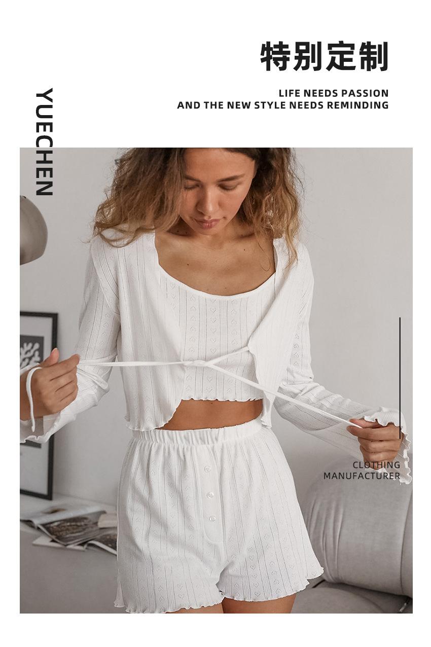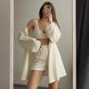 Pijama transpirable de jacquard de punto de primavera europea y americana 2025, cárdigan de manga larga con cordones para mujer, pantalones cortos con tirantes, conjunto de tres piezas para el hogar