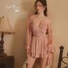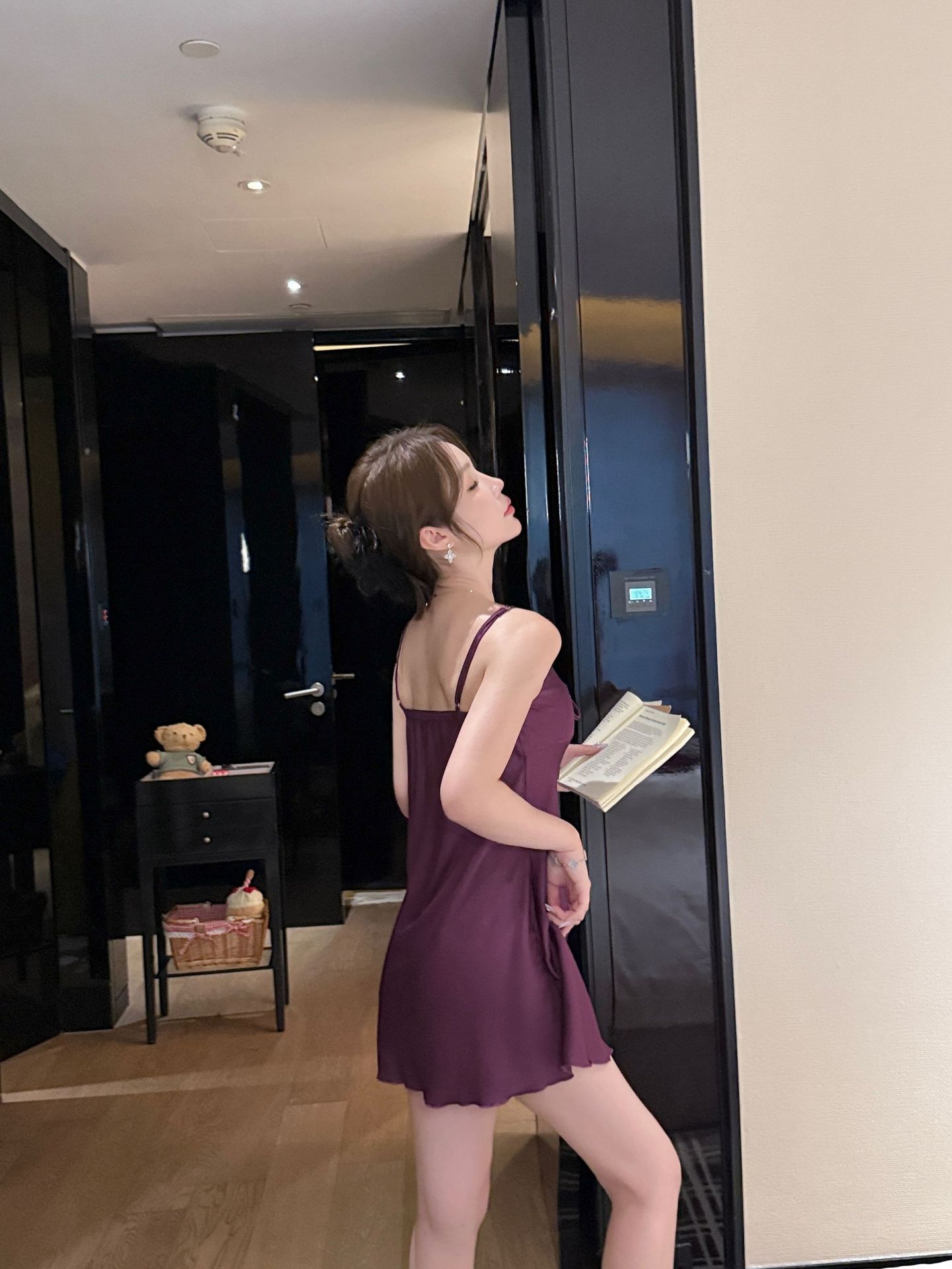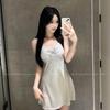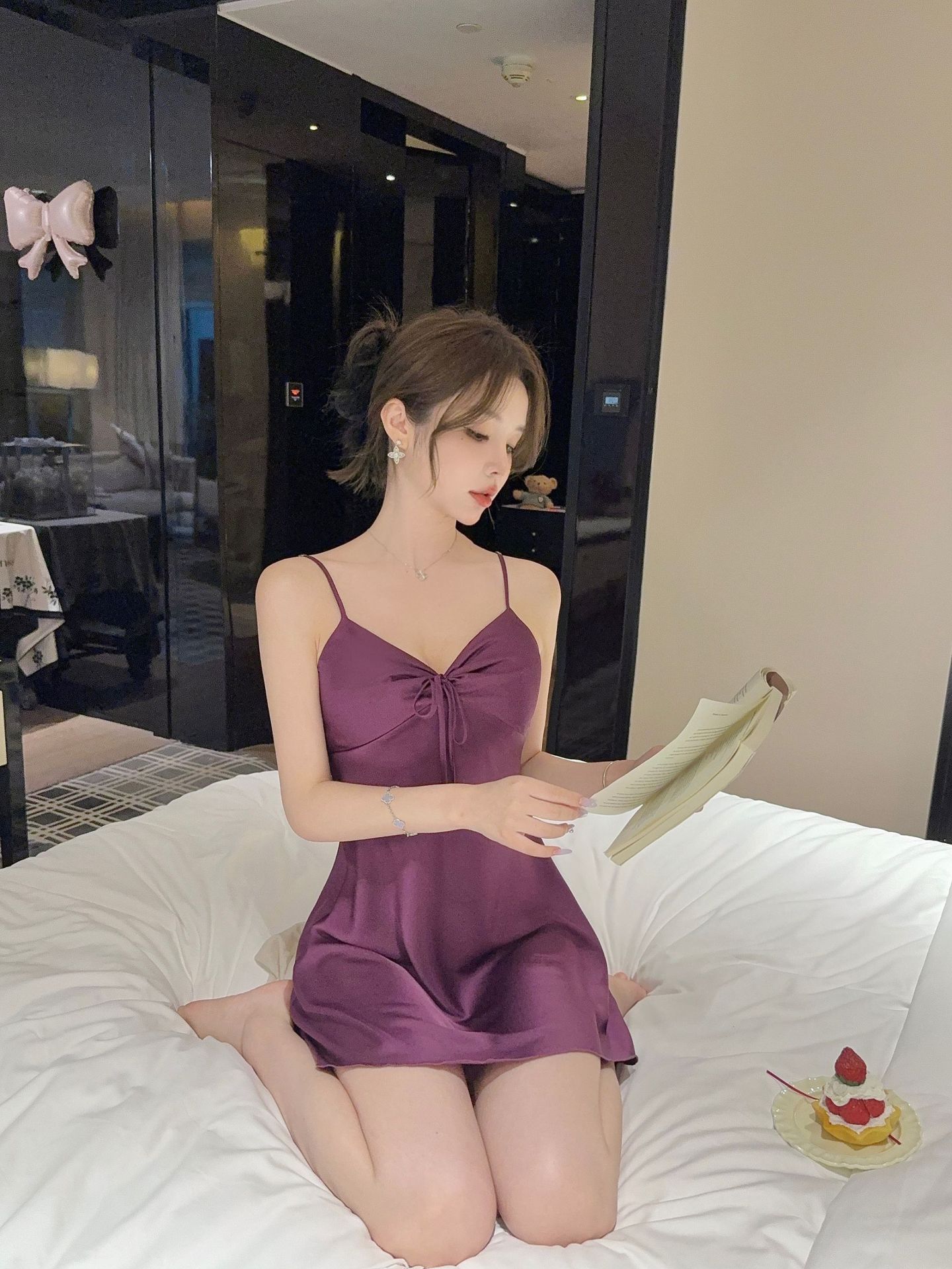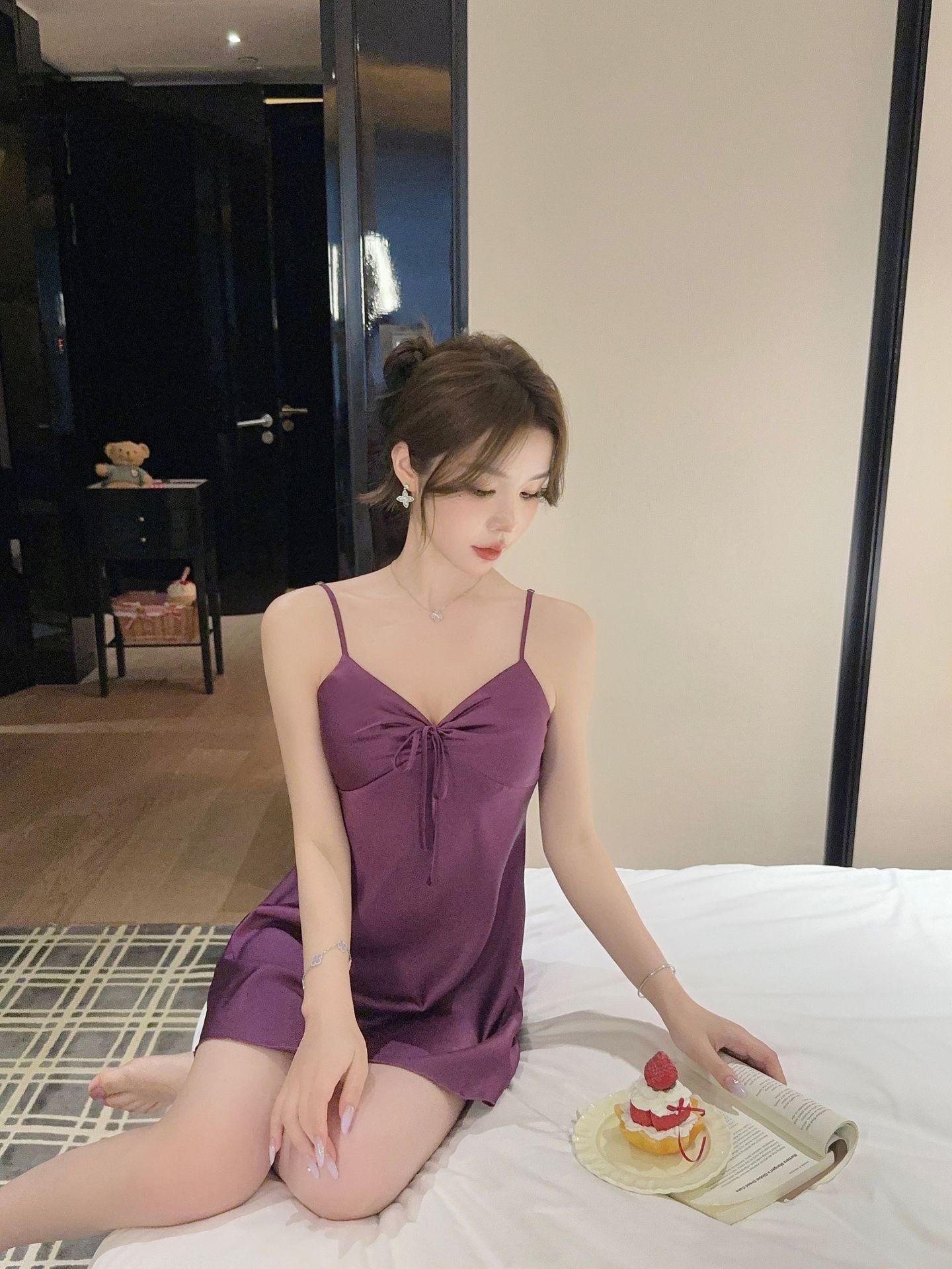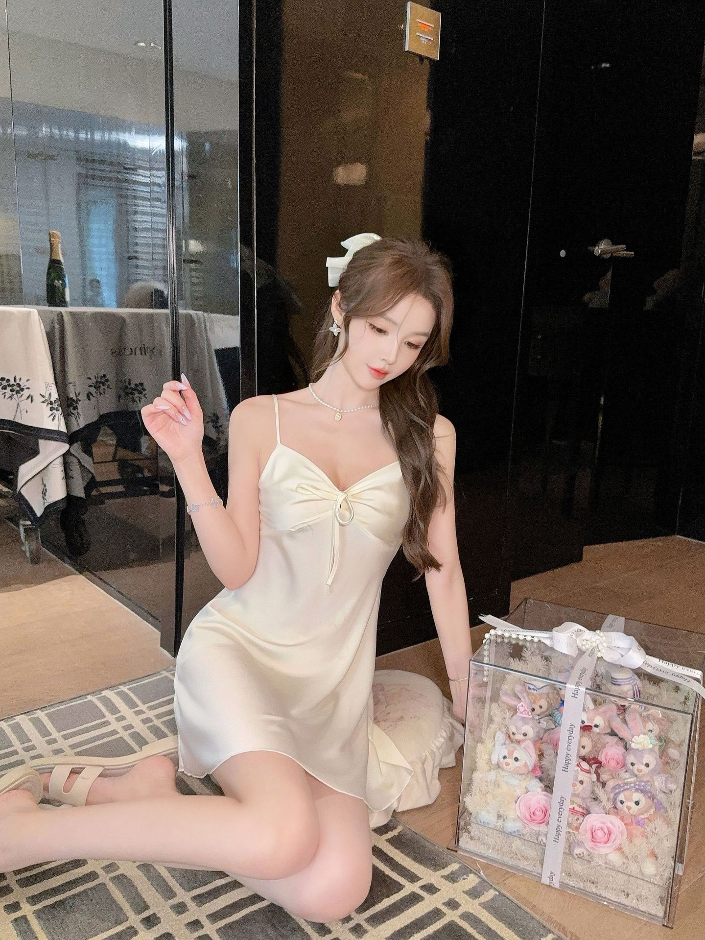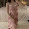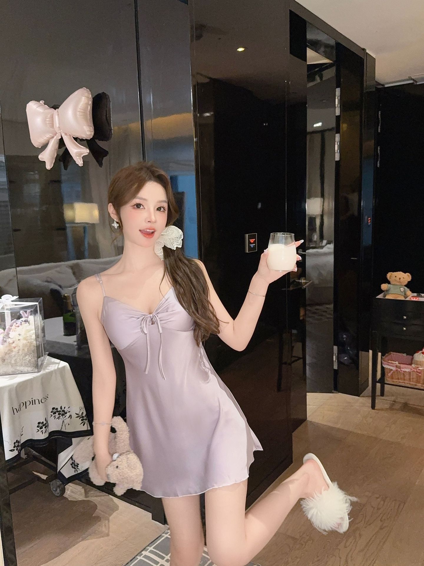 Pijama Sexy para Mujer Seda de Hielo Puro Deseo Lazo Tirantes Camisón con Almohadilla en el Pecho 2025 Nueva Ropa para Casa Transfronteriza