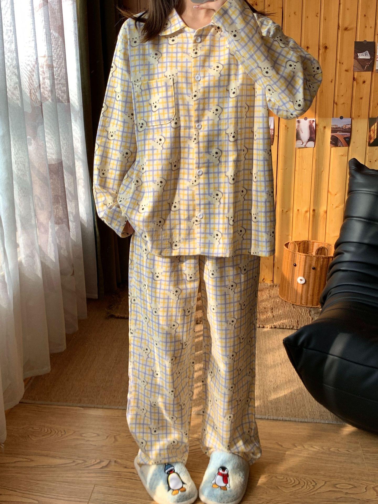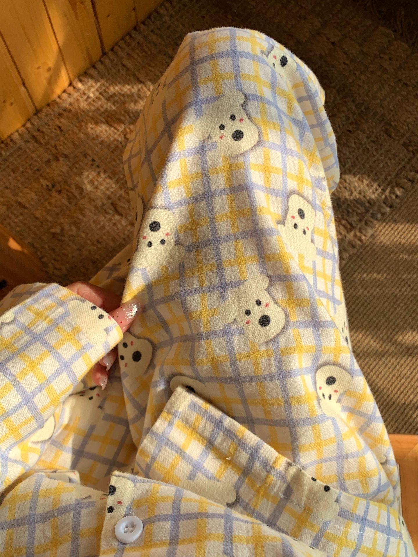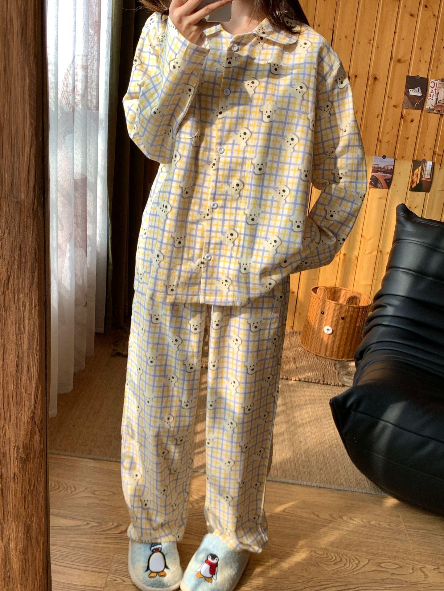 Compra ¡Nuevo! Pijama de algodón blanco colorido con lijado grueso para uso doméstico, con solapa y manga larga, ideal para usar en casa. al por mayor en Joom.pro