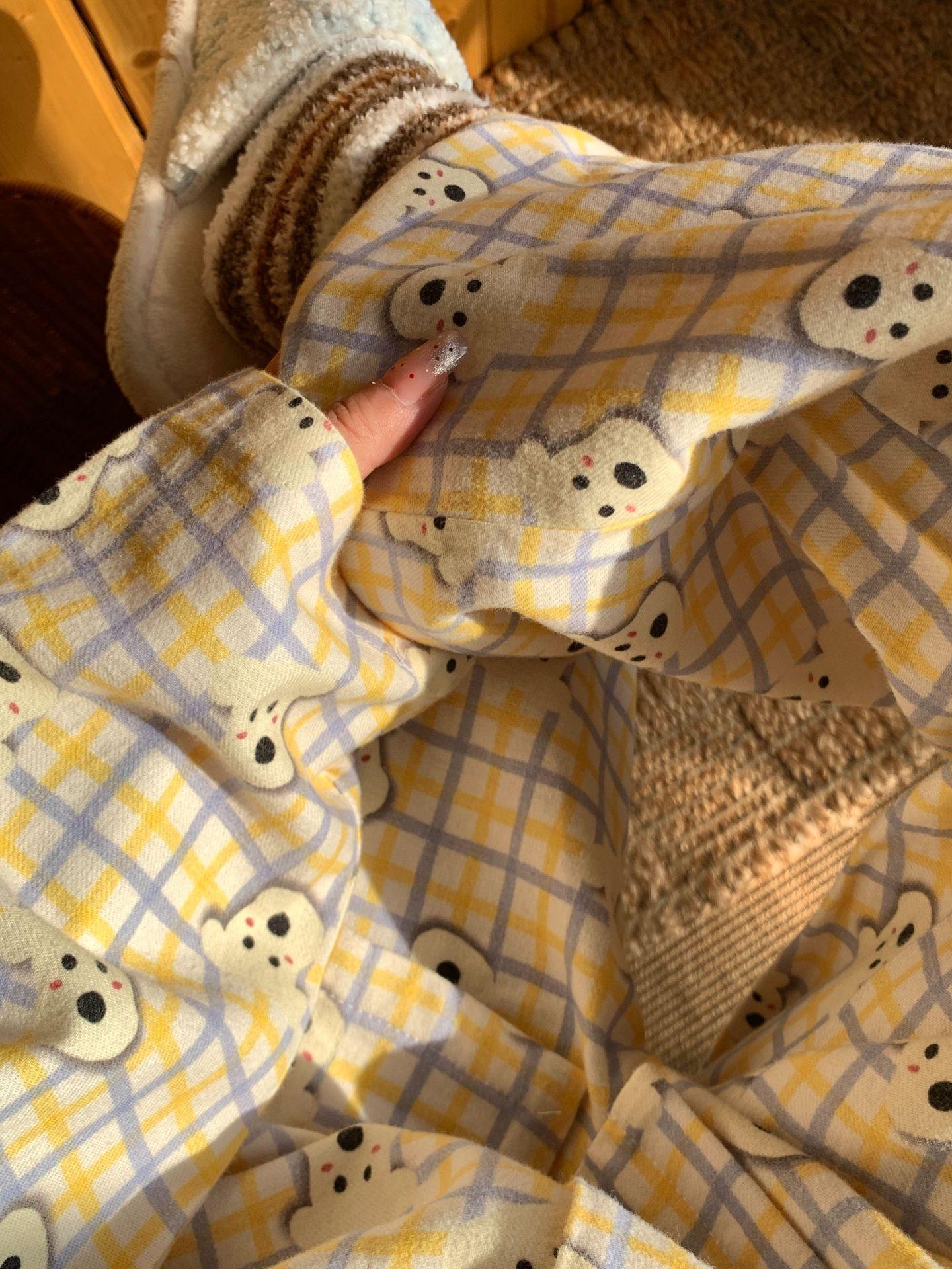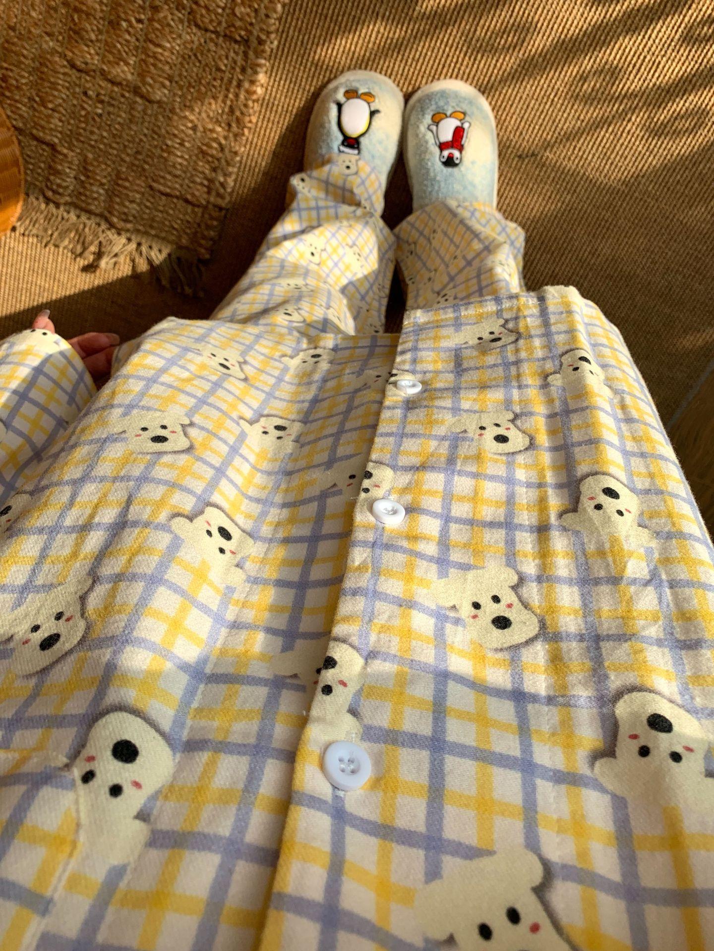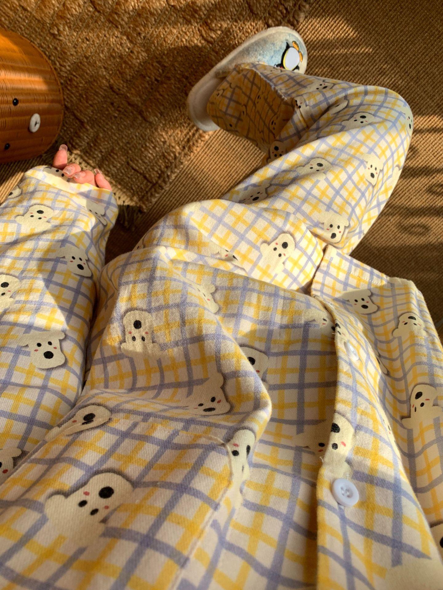 Compra ¡Nuevo! Pijama de algodón blanco colorido con lijado grueso para uso doméstico, con solapa y manga larga, ideal para usar en casa. al por mayor en Joom.pro