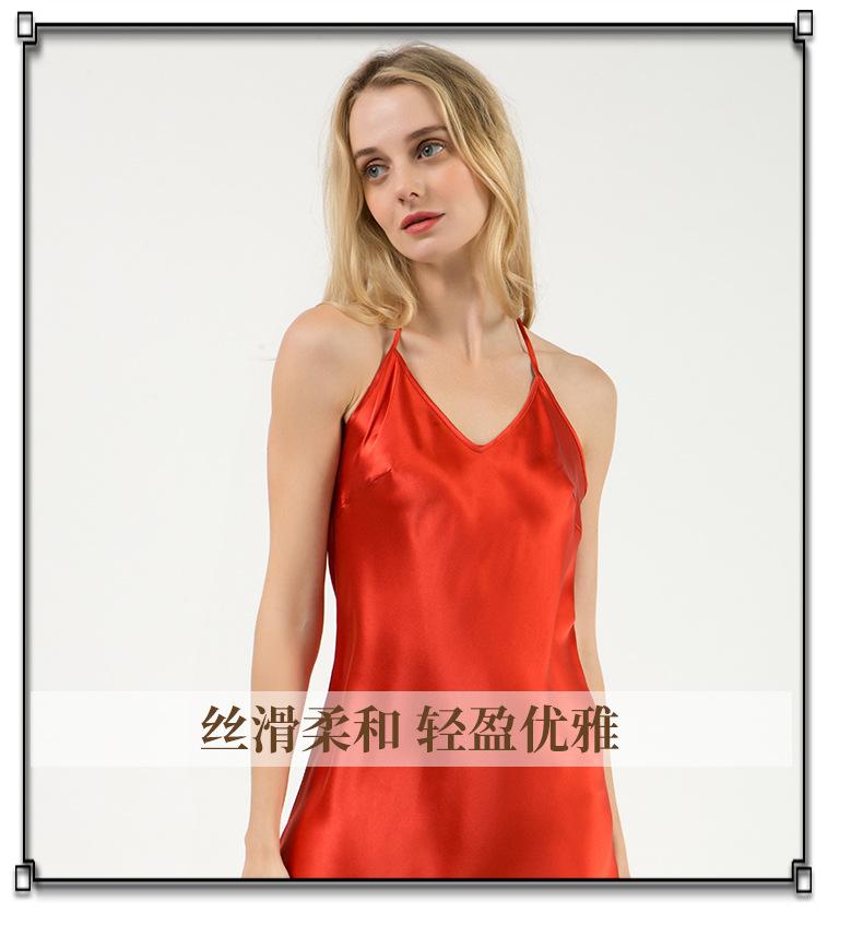 Camisón de Seda para Mujer, Vestido de Dormir con Tirantes Espagueti, Seda de Morera, Sexy Cuello en V, Camisola Fina de Verano para Dormir, Ropa de Descanso, Estilo Sexy