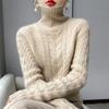 Nuevo Suéter Básico de Cuello Alto con Trenzas Gruesas de Color Sólido para Otoño e Invierno 2024 para Mujer, Suelto, Combinable con Todo, Coreano, de Punto