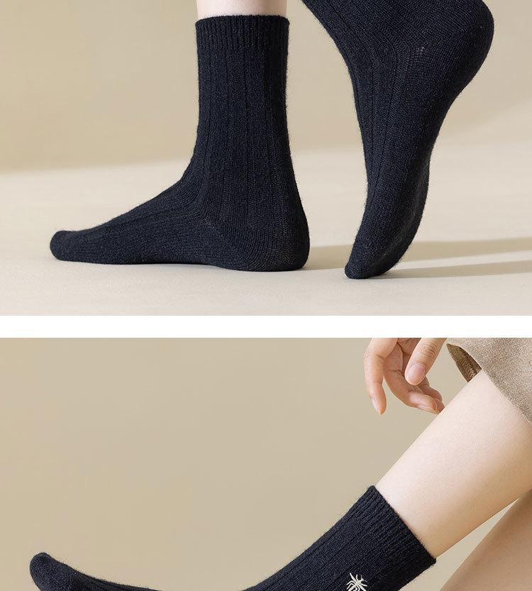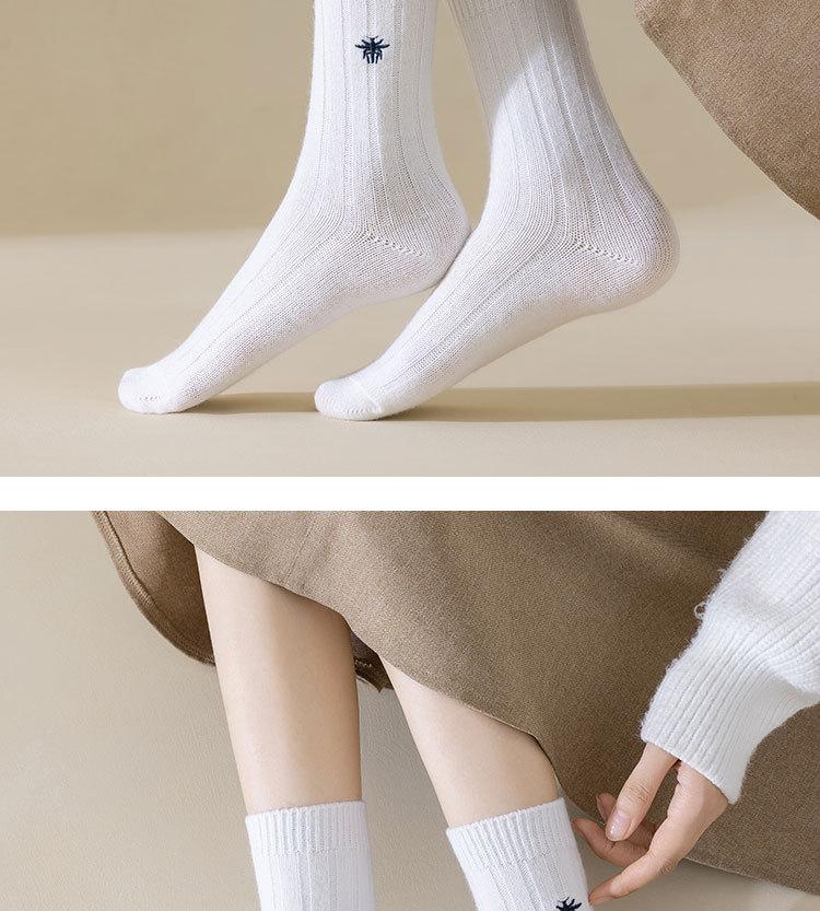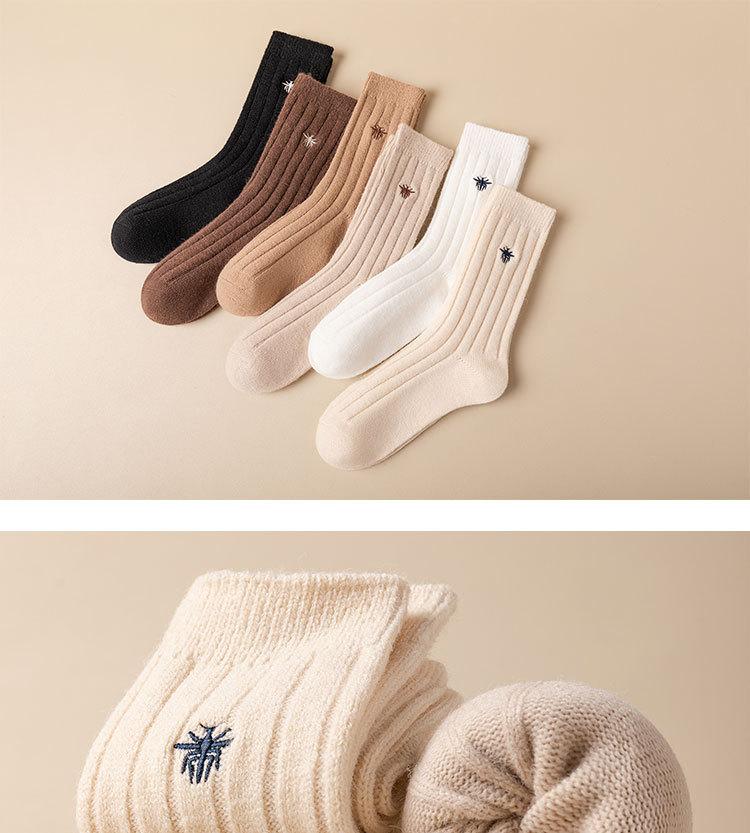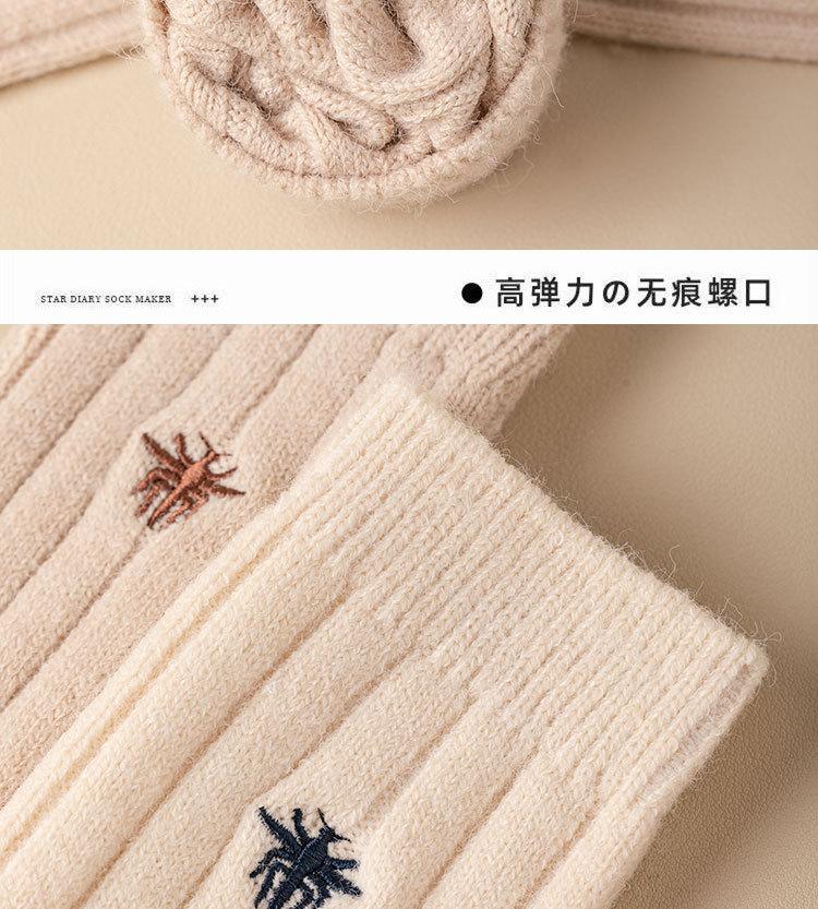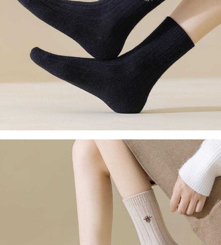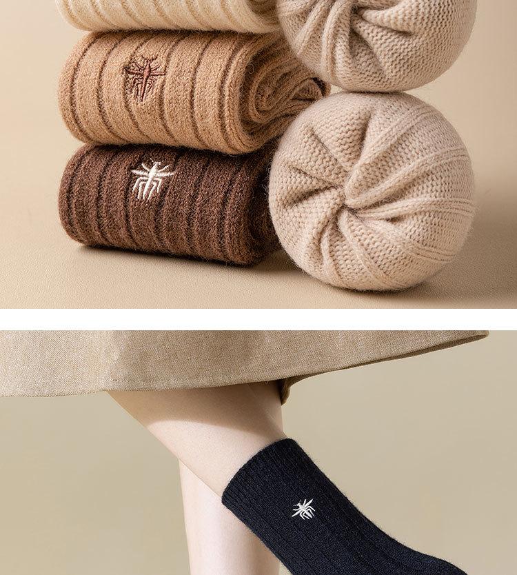 Calcetines de Nuevo Estilo para Mujer Otoño e Invierno Vintage Bordado Abejita de Media Caña Calcetines Gruesos Cálidos de Lana Medias de Invierno para Mujer