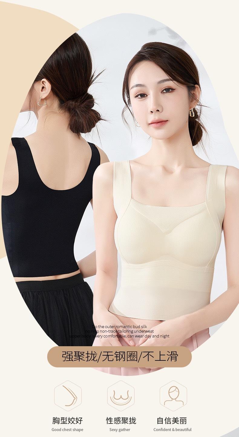 Ropa interior sin costuras color sólido chaleco de hombro ancho para mujer top de tubo simple levantamiento banda plástica para el pecho almohadilla para el pecho ropa exterior fondo espalda bonita envuelta en el pecho