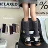 Calcetines de mujer de otoño e invierno gruesos y cálidos de color gris, estilo japonés, con medias apiladas para niña, con costura de metal Y2K, estándar para las piernas.