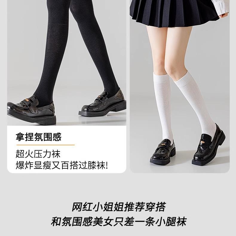 Calcetines de compresión hasta la pantorrilla para mujer primavera y otoño calcetines largos hasta la rodilla negros de media caña otoño calcetines de media caña jk con zapatos de piel pequeños