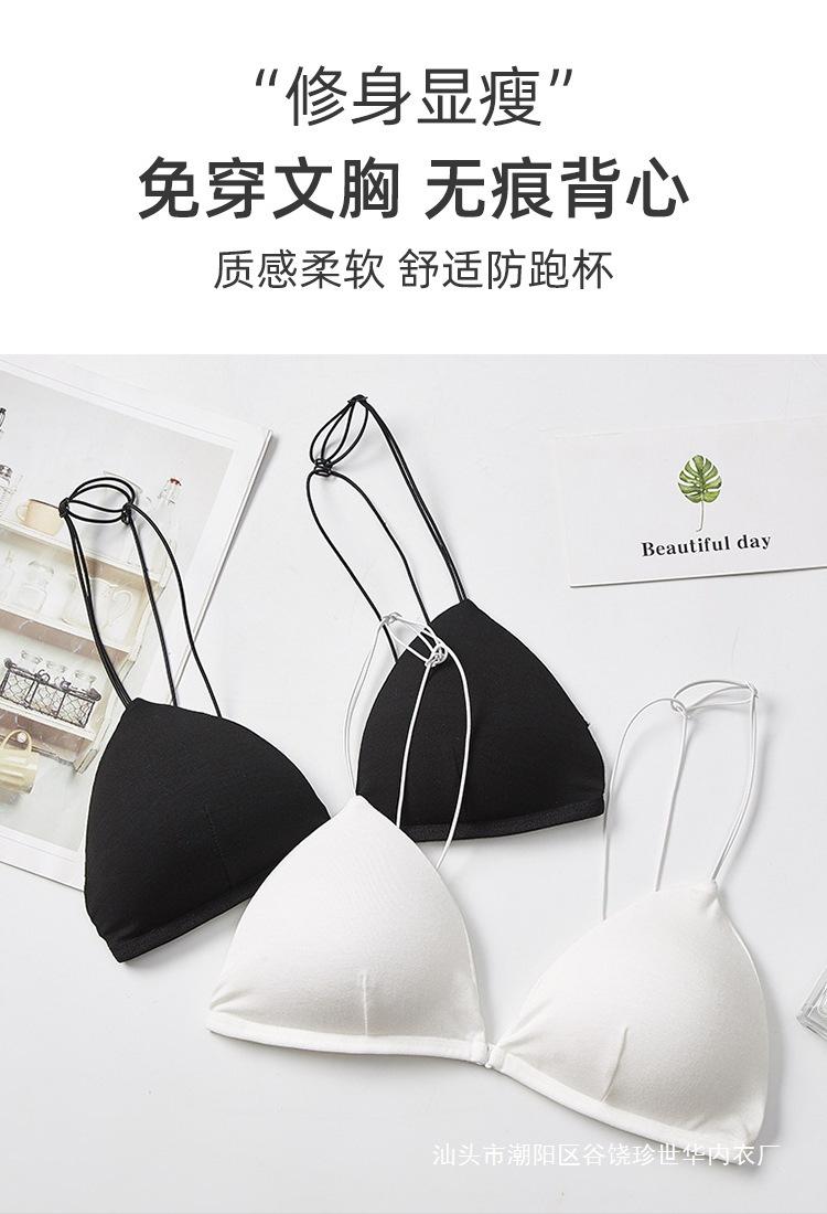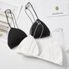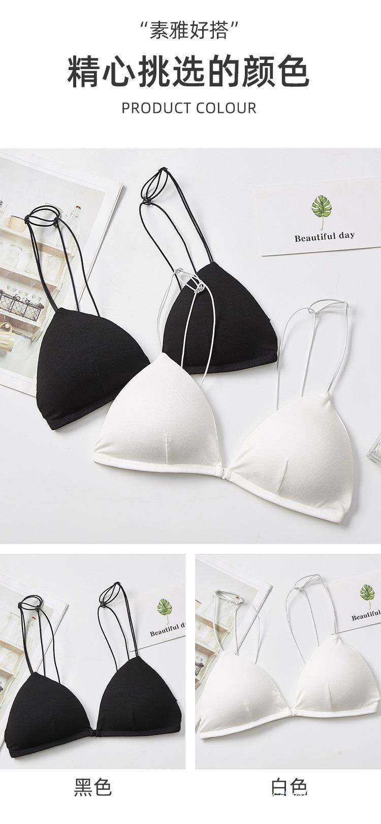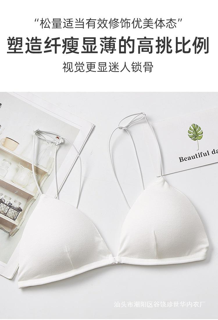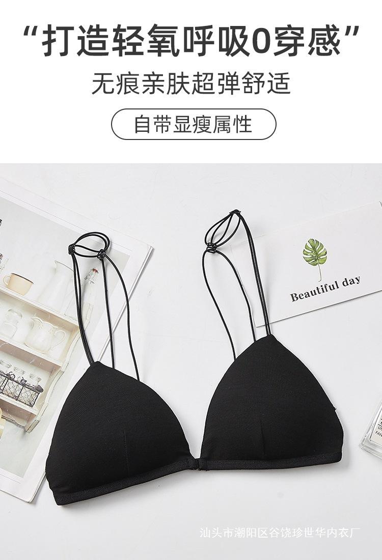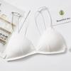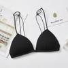 Sujetador francés sexy hermoso con botones en la parte delantera y trasera, copa triangular, pecho pequeño, fino, sin aro de acero, ropa interior fruncida, tirantes finos para los hombros.