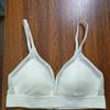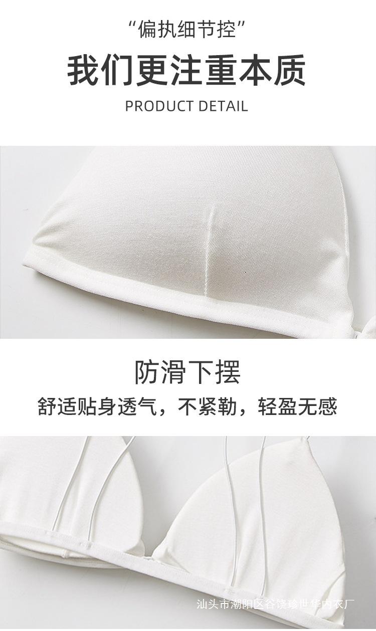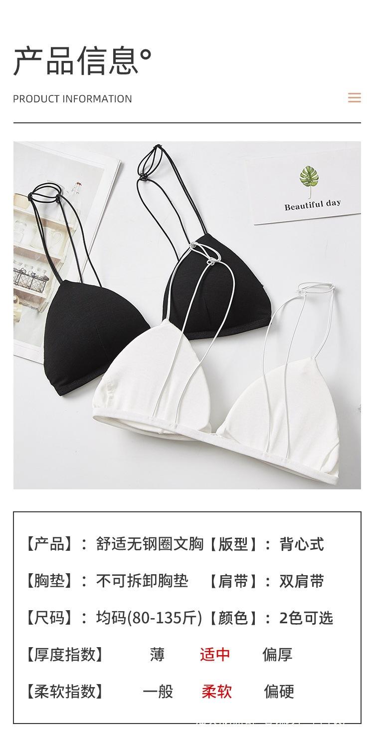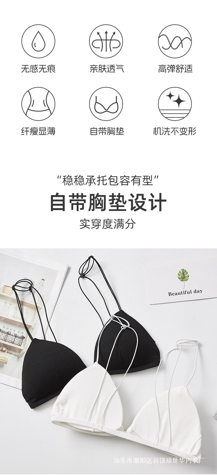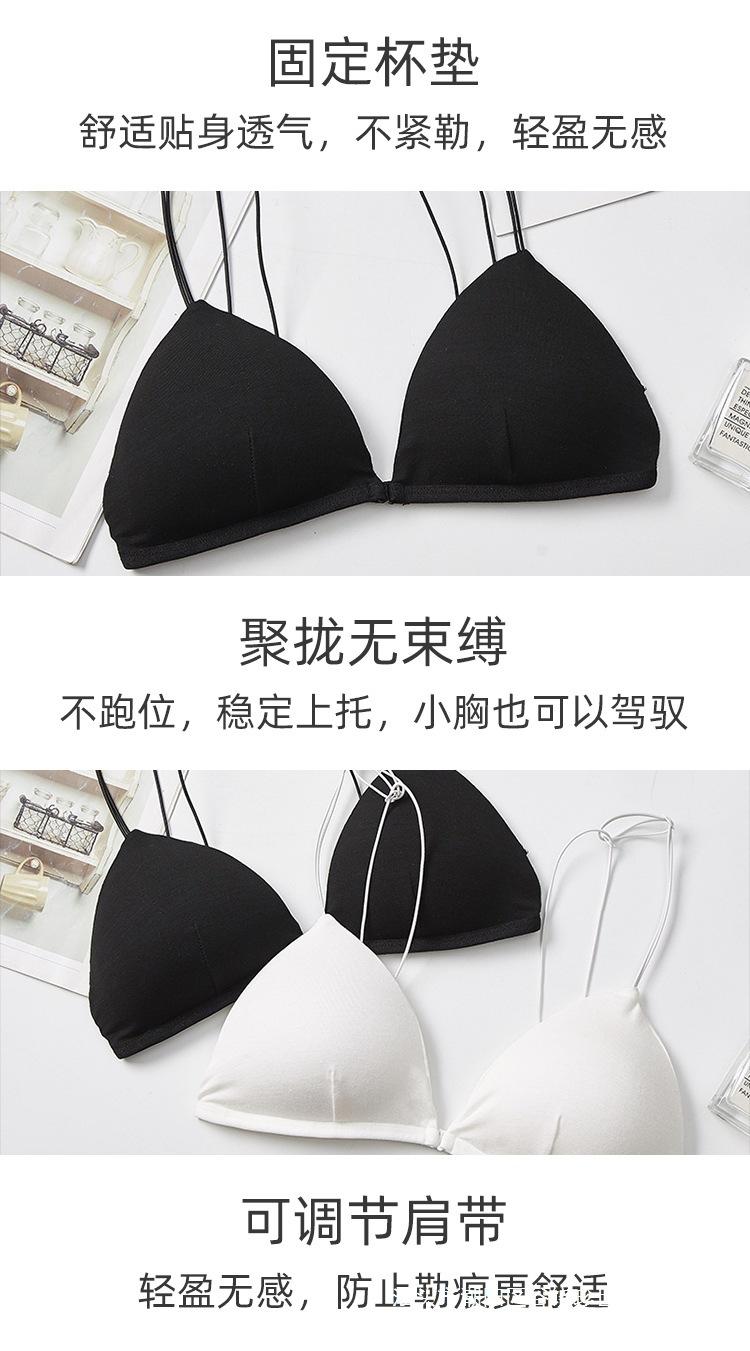 Sujetador francés sexy hermoso con botones en la parte delantera y trasera, copa triangular, pecho pequeño, fino, sin aro de acero, ropa interior fruncida, tirantes finos para los hombros.
