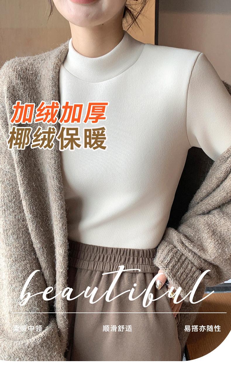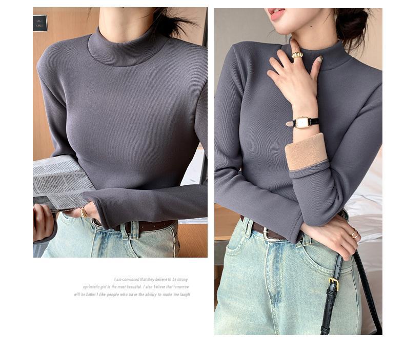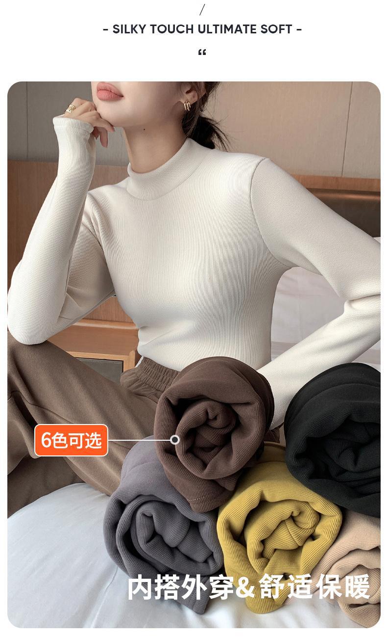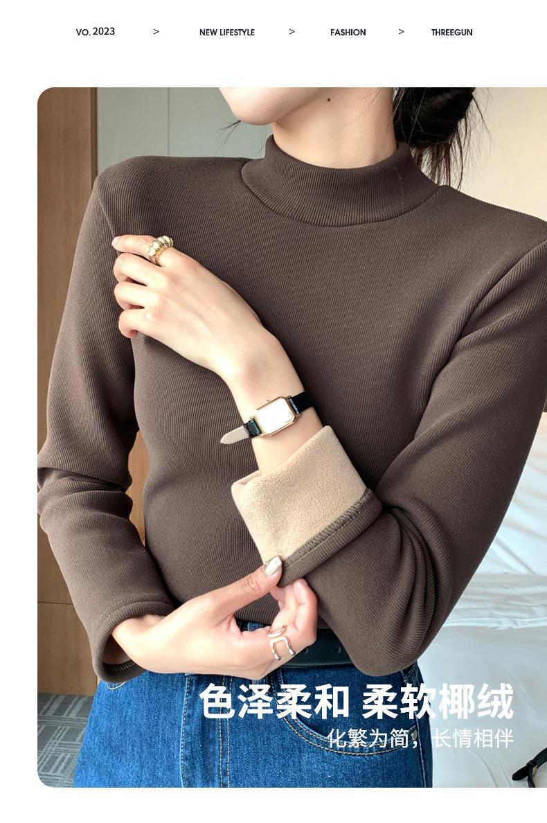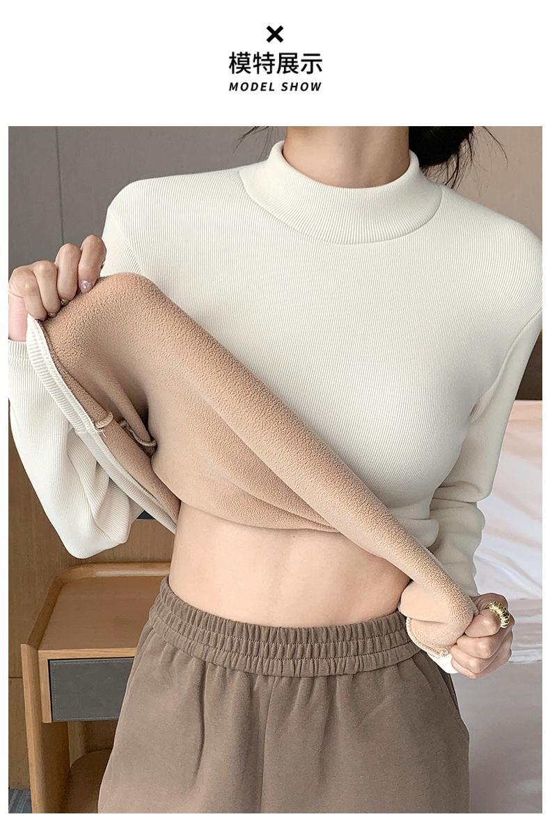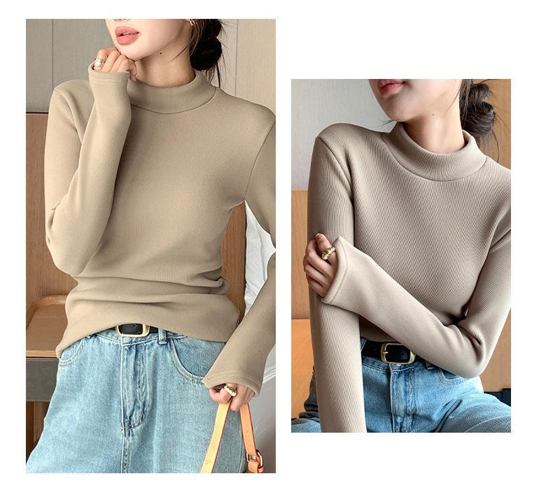 Camiseta Base de Vellón de Coco de Cuello Medio Alto Invierno con Forro Polar Engrosado Cuello Medio Interior Cálido Top Base Interior Mujer A2469