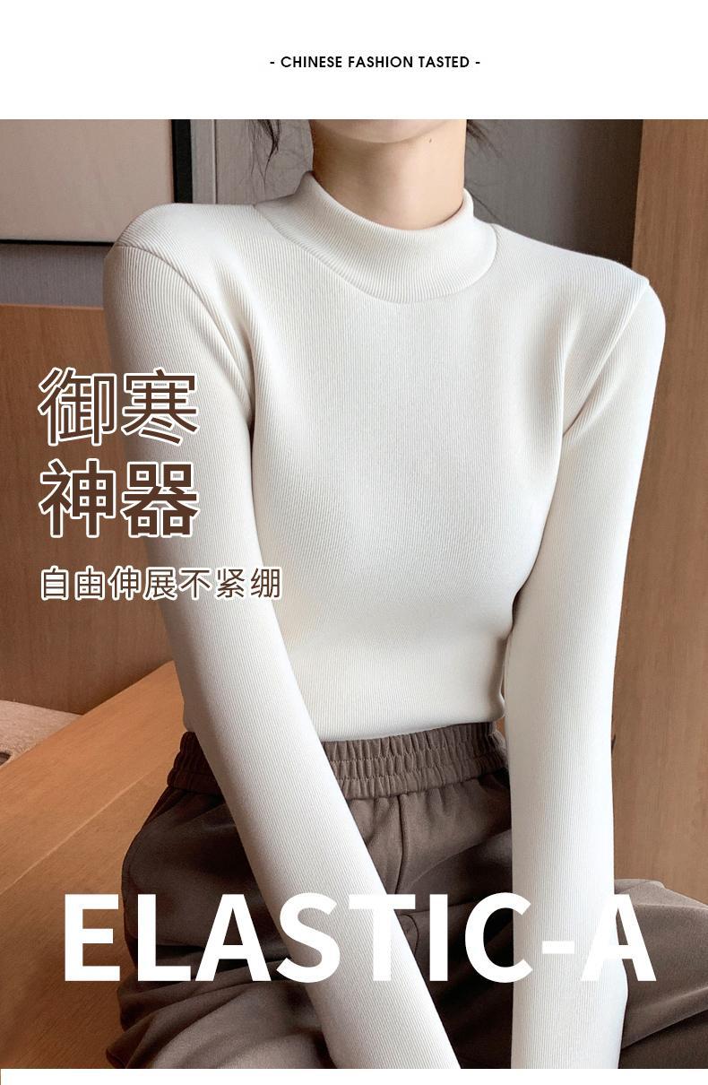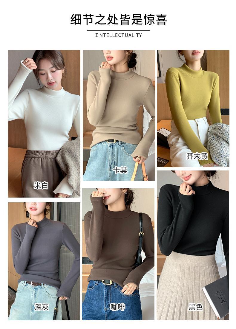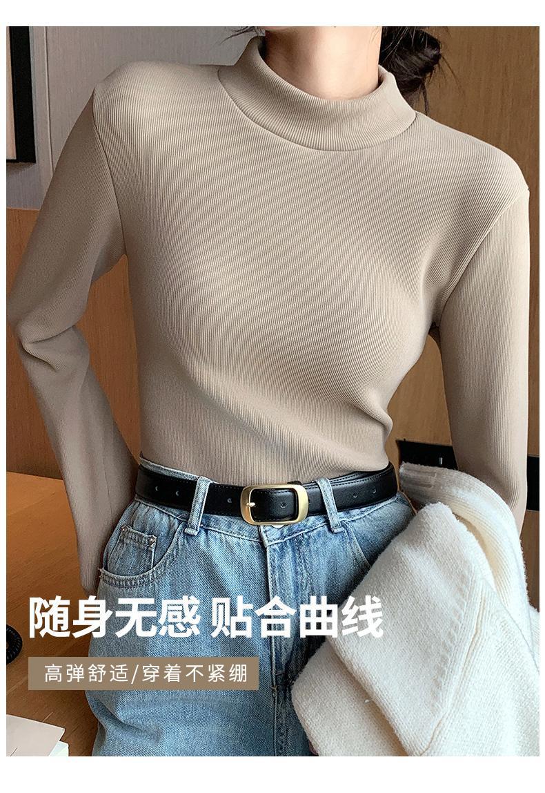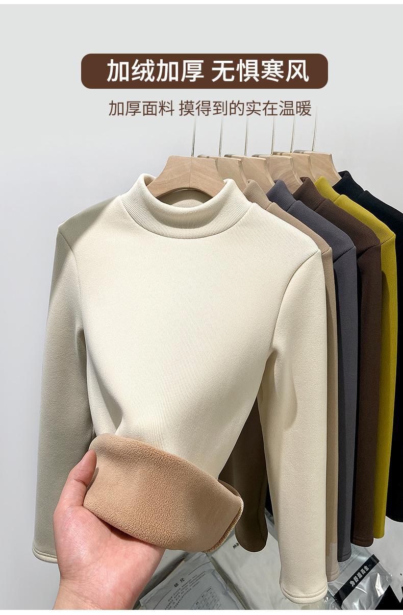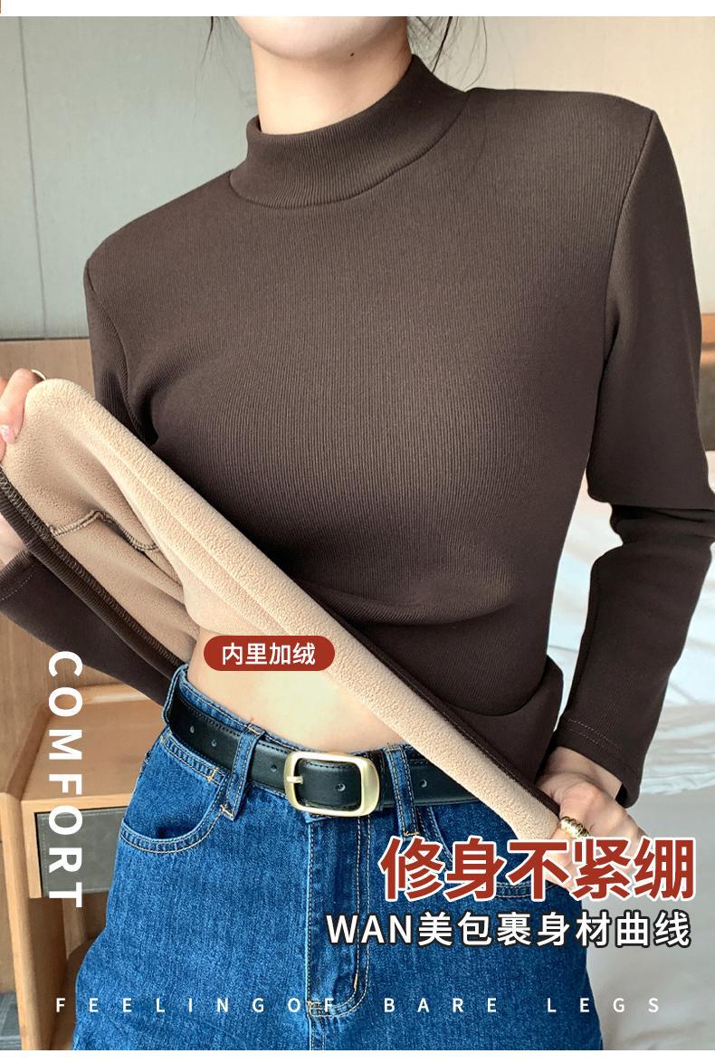 Camiseta Base de Vellón de Coco de Cuello Medio Alto Invierno con Forro Polar Engrosado Cuello Medio Interior Cálido Top Base Interior Mujer A2469