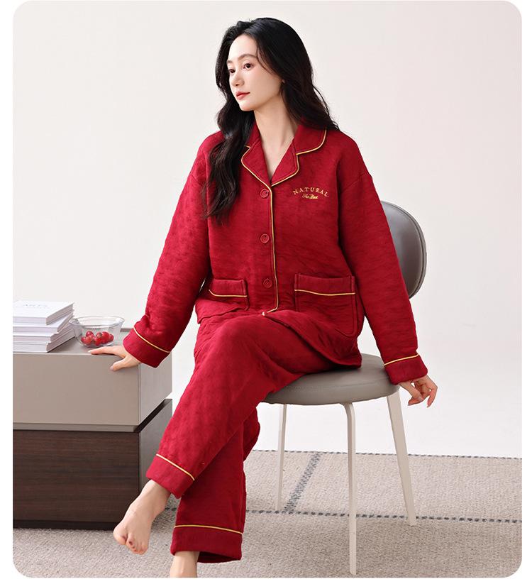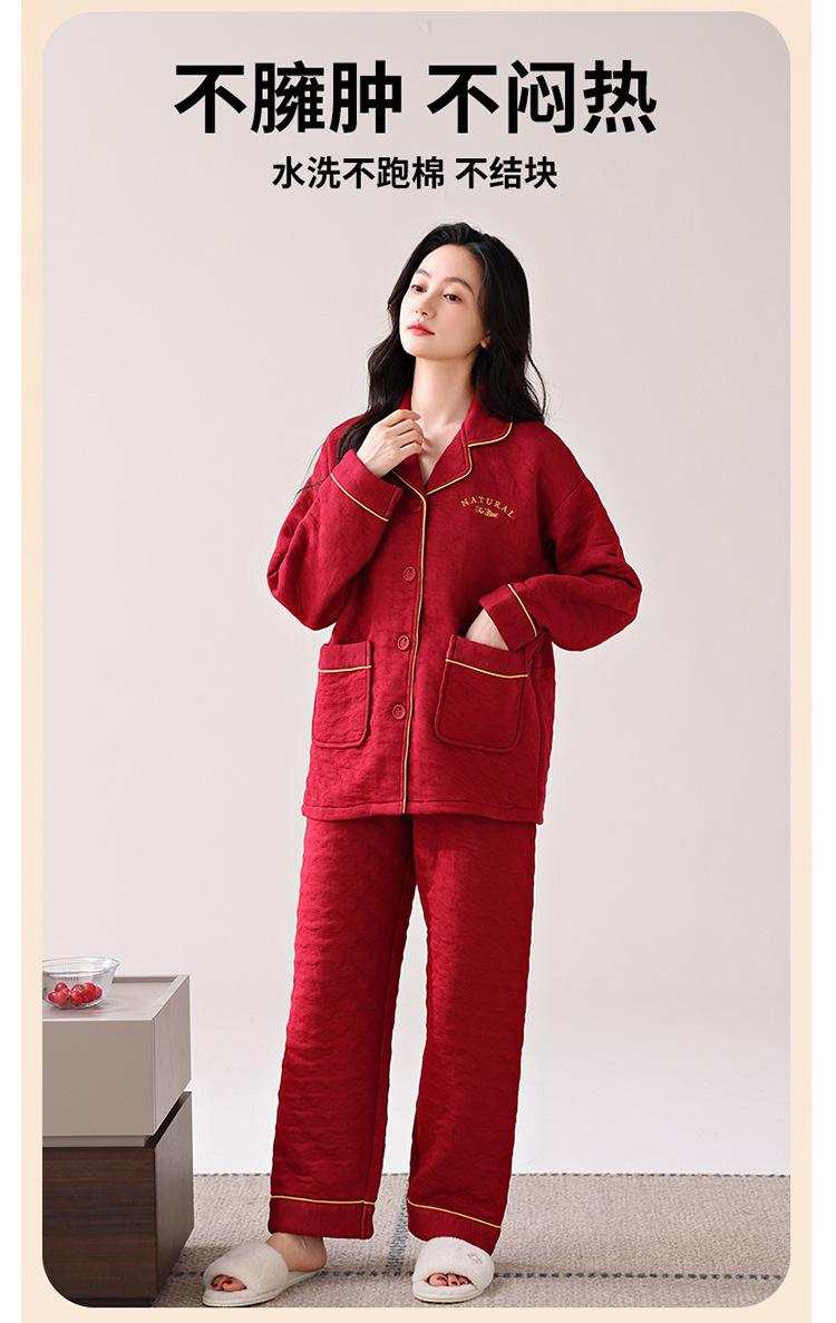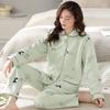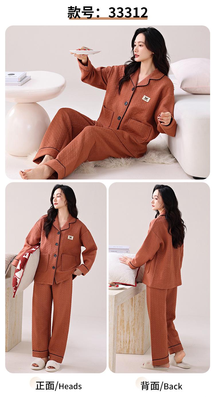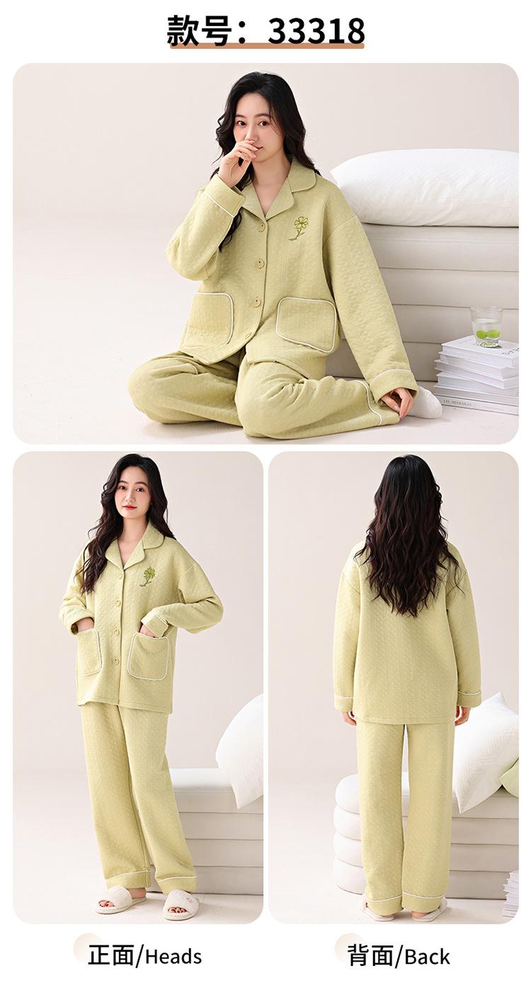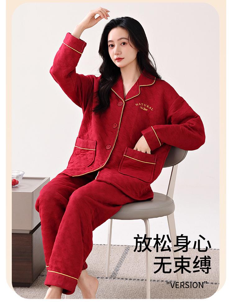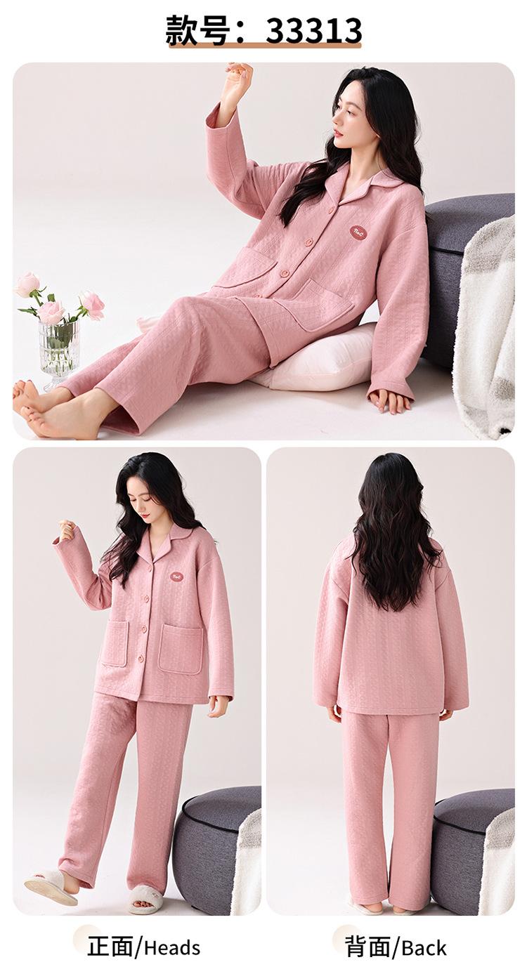 Pijama de algodón tipo sándwich para mujer, de manga larga, para otoño e invierno, grueso y cálido, para el hogar, cárdigan con solapa, traje de talla grande