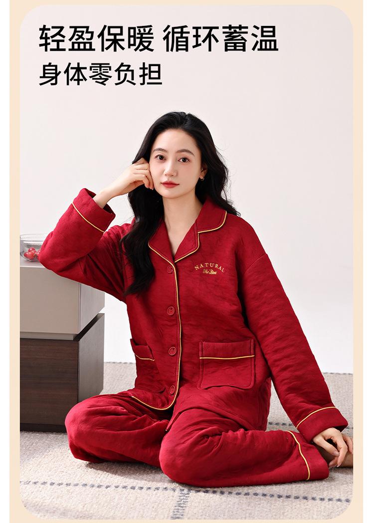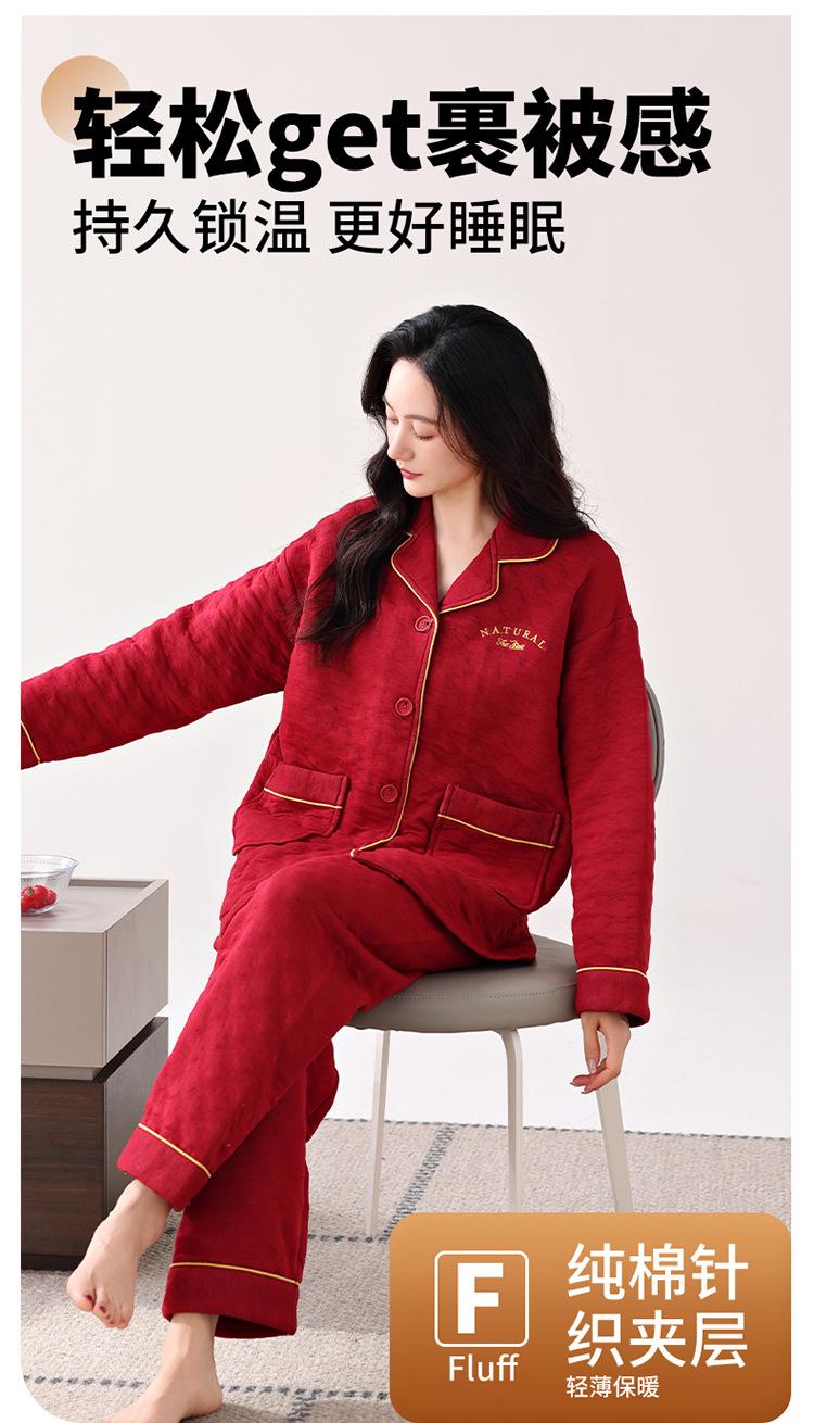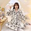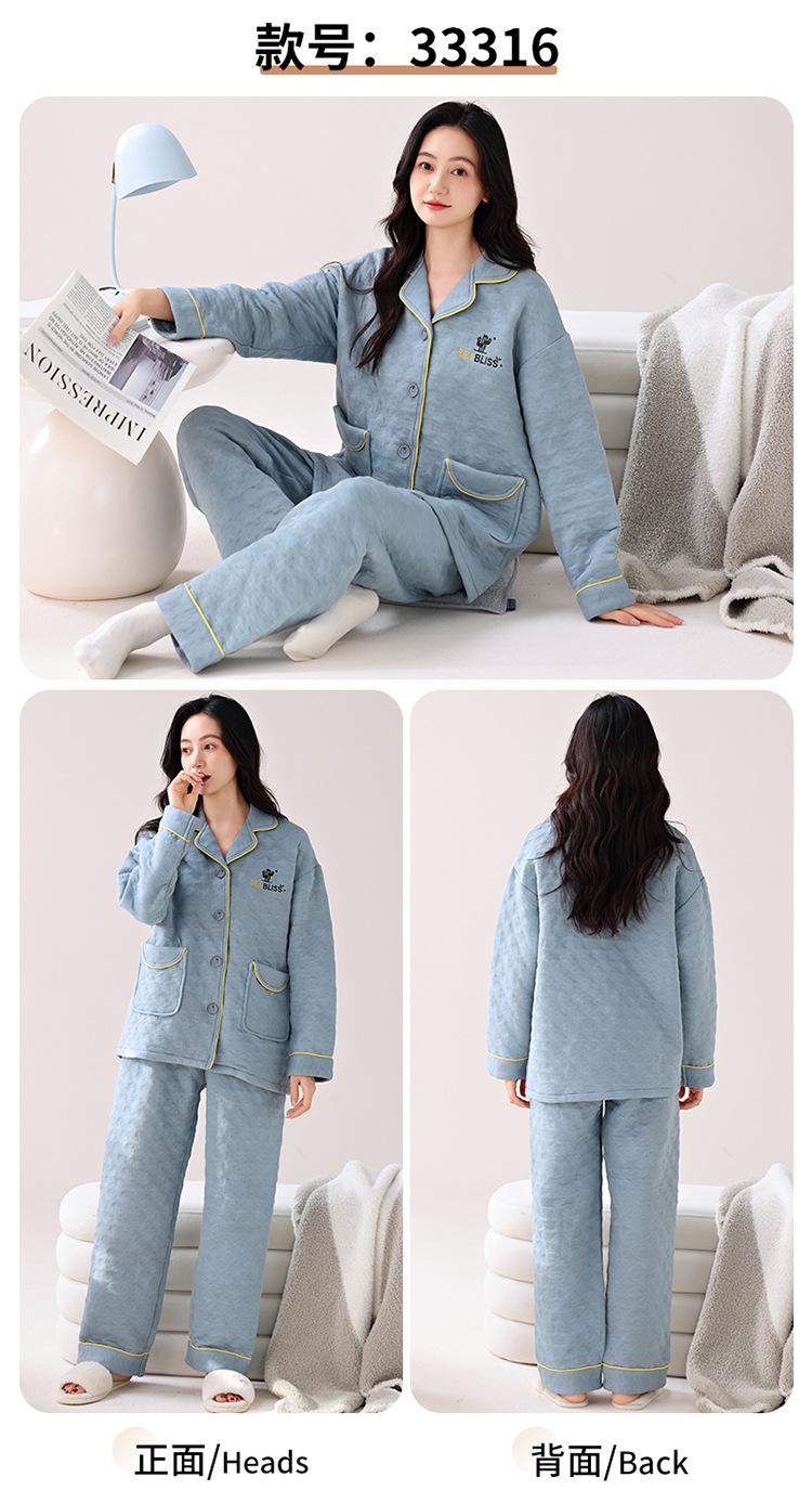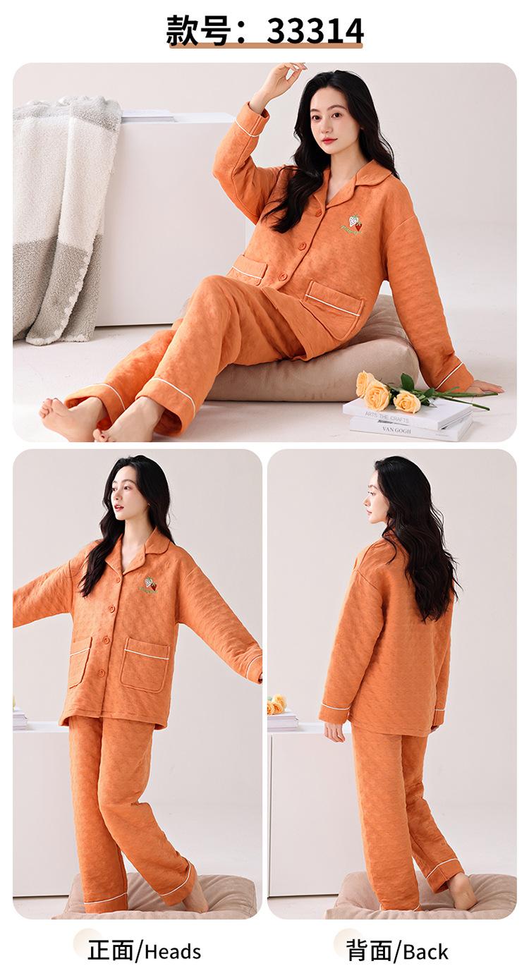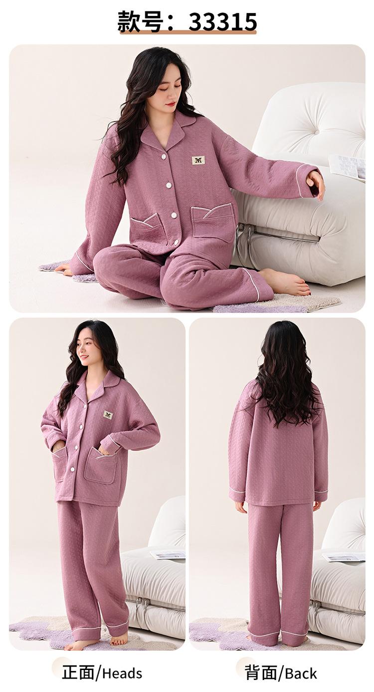 Pijama de algodón tipo sándwich para mujer, de manga larga, para otoño e invierno, grueso y cálido, para el hogar, cárdigan con solapa, traje de talla grande