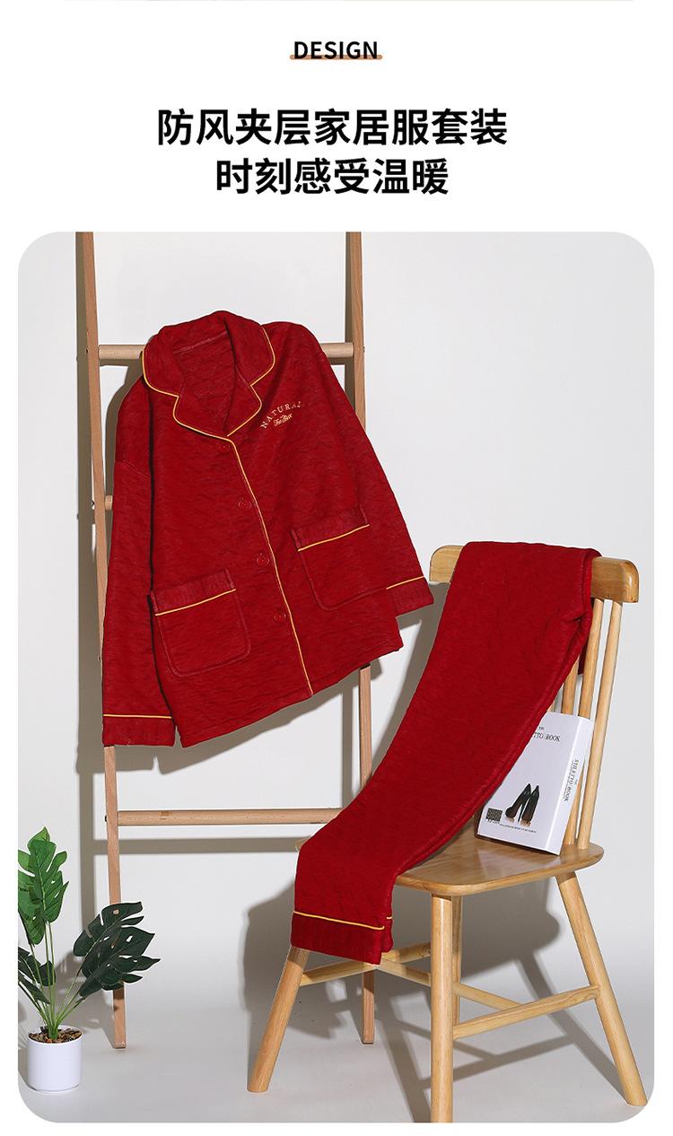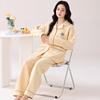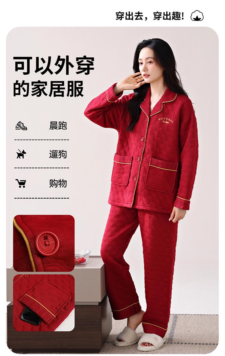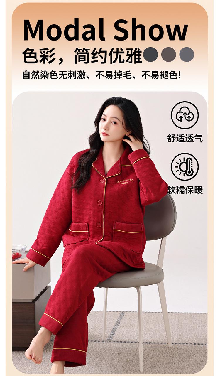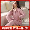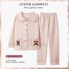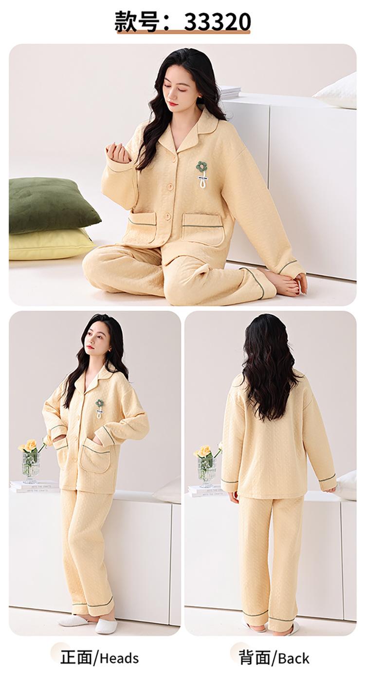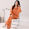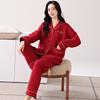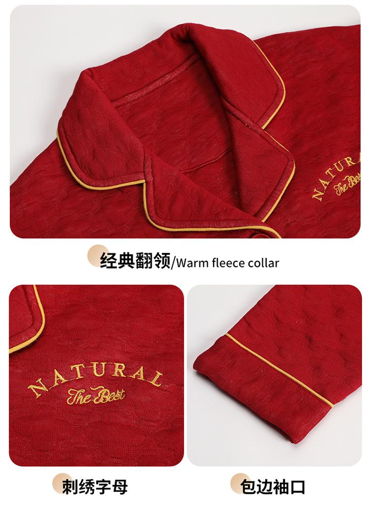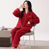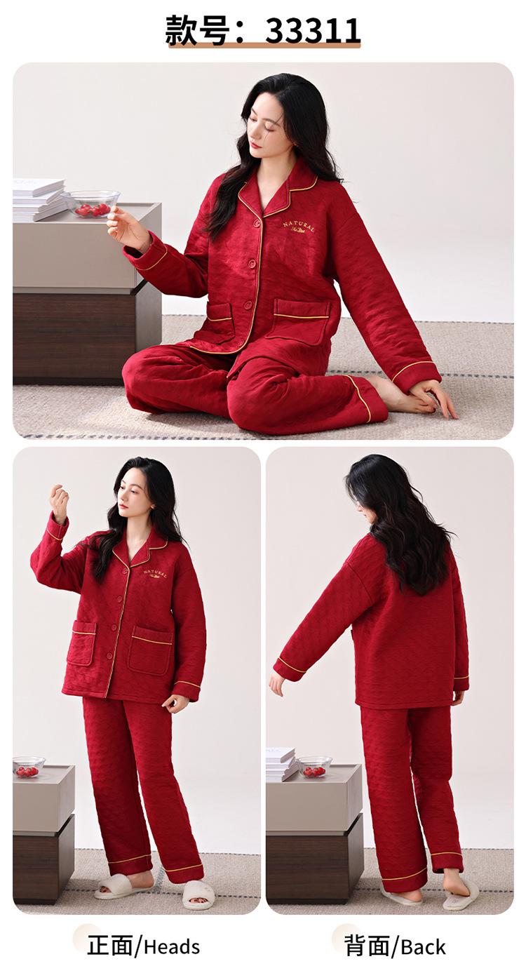 Pijama de algodón tipo sándwich para mujer, de manga larga, para otoño e invierno, grueso y cálido, para el hogar, cárdigan con solapa, traje de talla grande