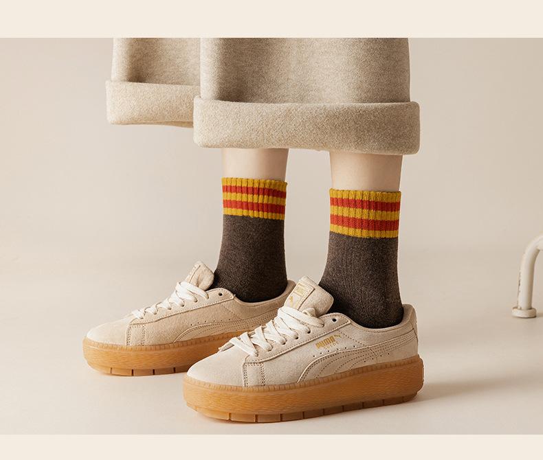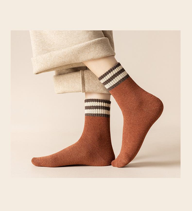 Calcetines de otoño e invierno para mujer, gruesos y cálidos, de tubo medio, estilo universitario, de color liso, de algodón, con diseño de luna.