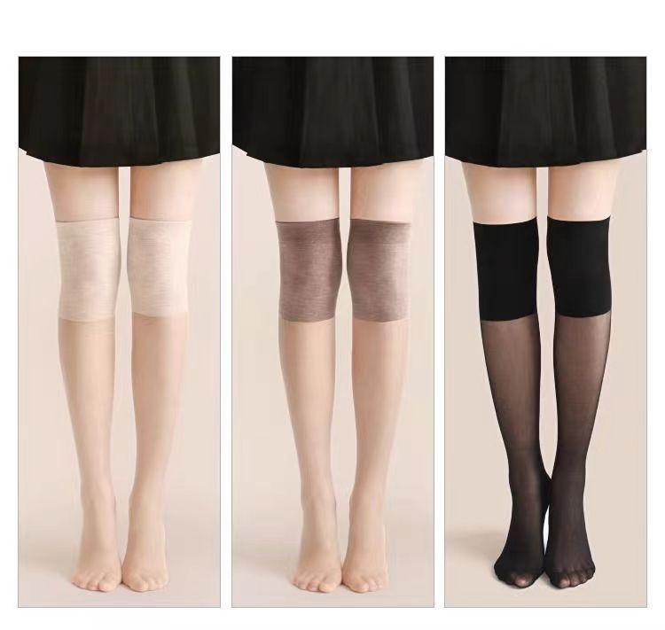 Calcetines hasta la rodilla de ajenjo fino de verano para aire acondicionado, calcetines por encima de la rodilla de terciopelo de moxa antideslizantes, medias anti-enganches, medias de corte libre para mujer