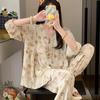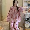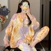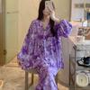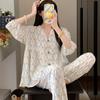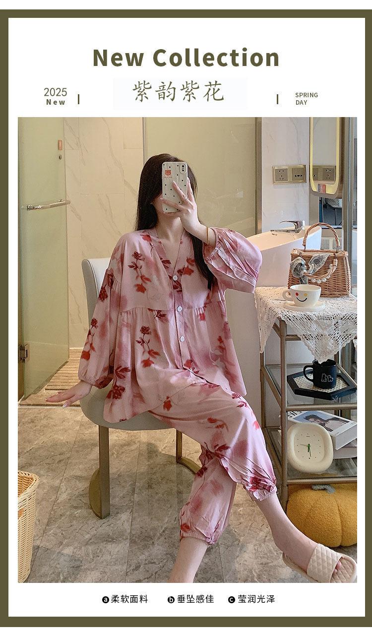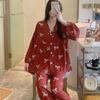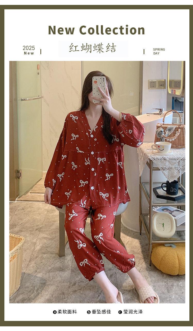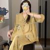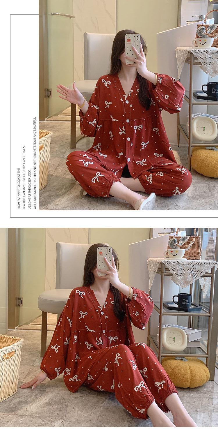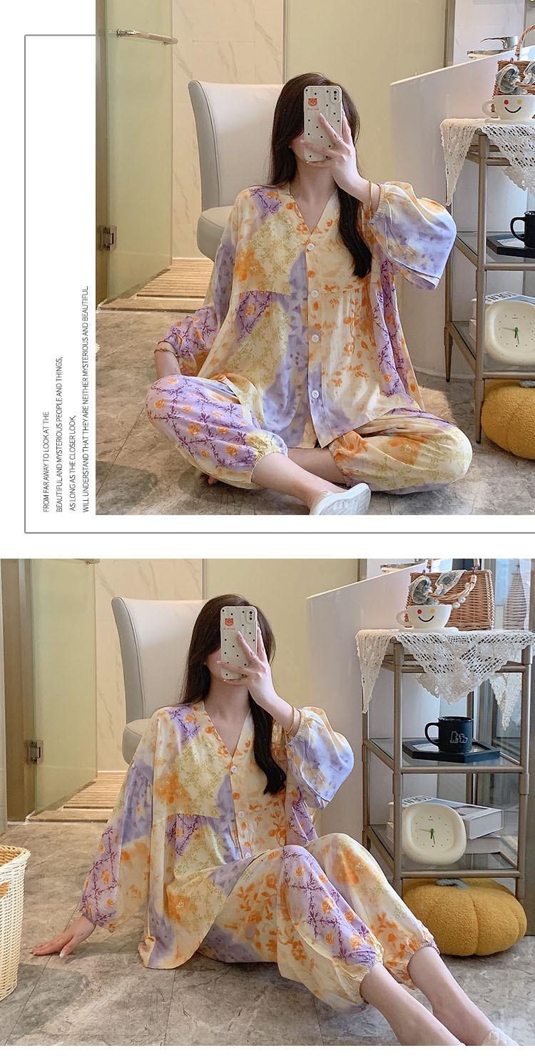 Pijama de Algodón Seda para Mujer de Primavera y Otoño, Conjunto de Pantalón Largo de Manga Larga, Cárdigan de Algodón Seda para Estar en Casa, Cuello en V, Simple y Casual