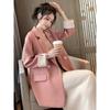 2025 Primavera y Otoño Nuevo Estilo Coreano Celebridad de Internet Rosa Traje Pequeño Chaqueta para Mujer Doble Botonadura Suelta Casual Chic Traje