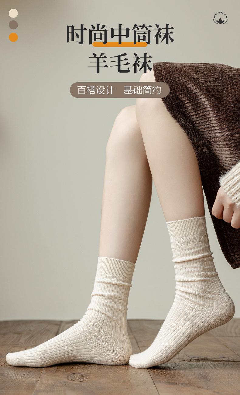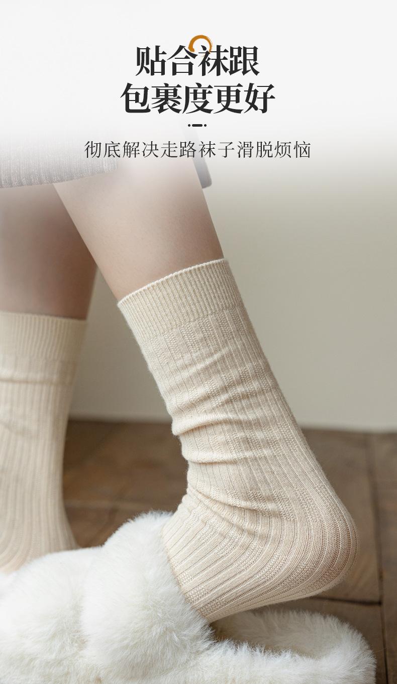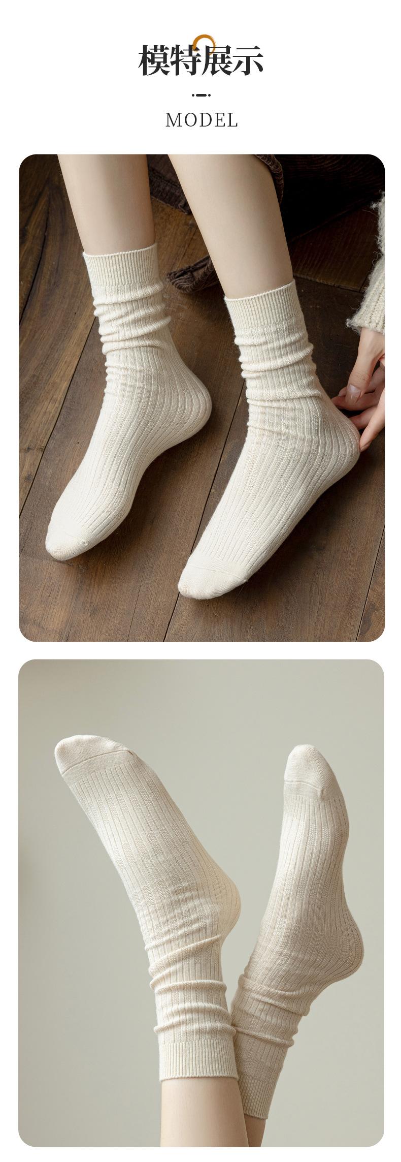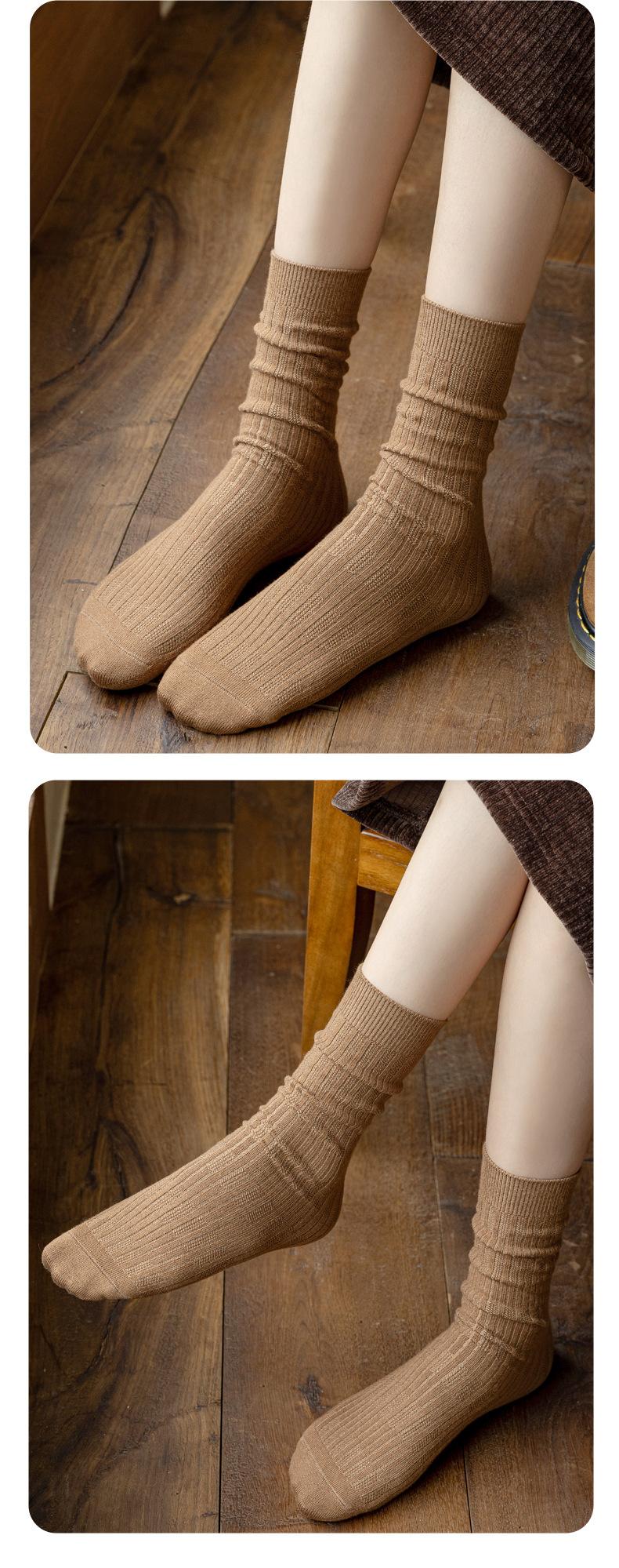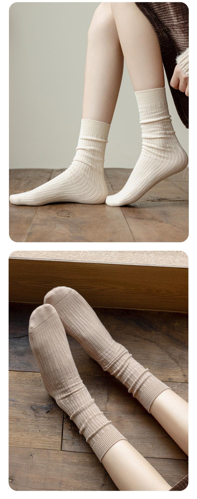 Calcetines de Mujer Nuevos Vintage Doble Aguja Calcetines de Cachemira Alta Elasticidad Sueltos de Caída Media Otoño e Invierno Color Sólido Cálidos Apilados