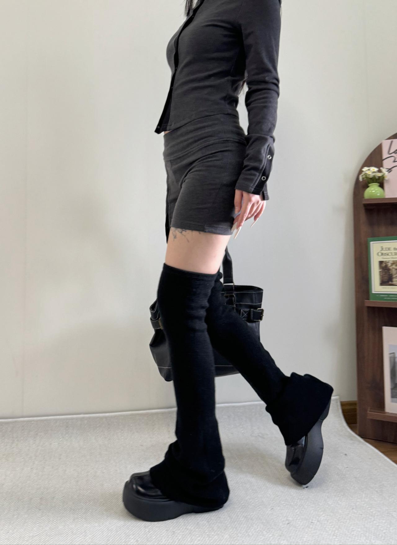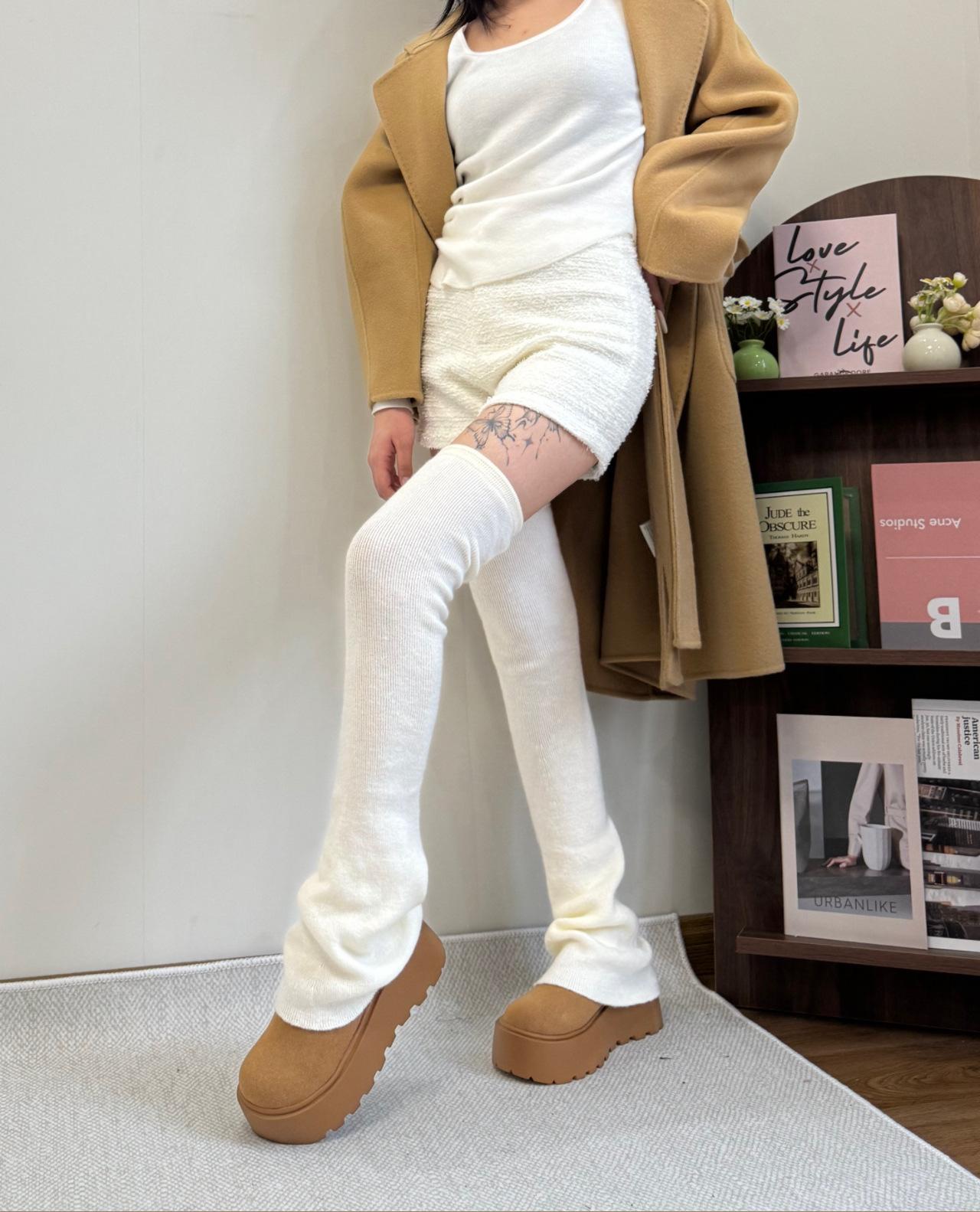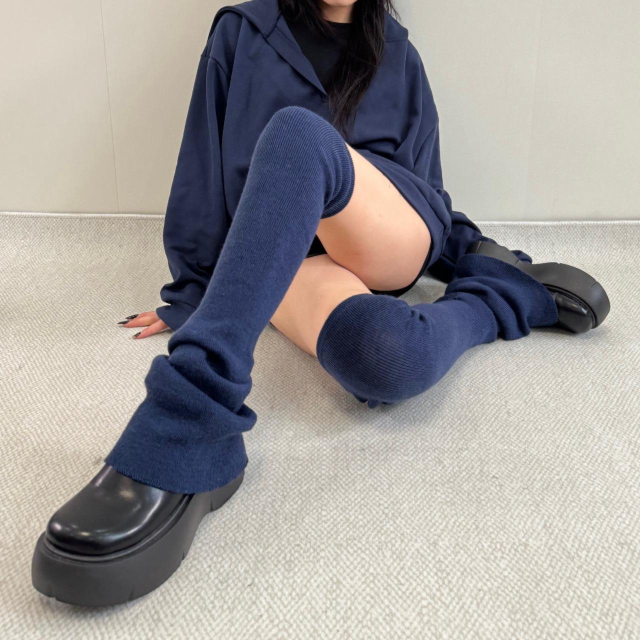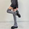 Otoño e Invierno Nuevos Calcetines Micro-altos Tejidos Atmósfera Blanco Cremoso Adelgazantes Combinan con Todo Cubre Piernas Color Sólido Calcetines por Encima de la Rodilla