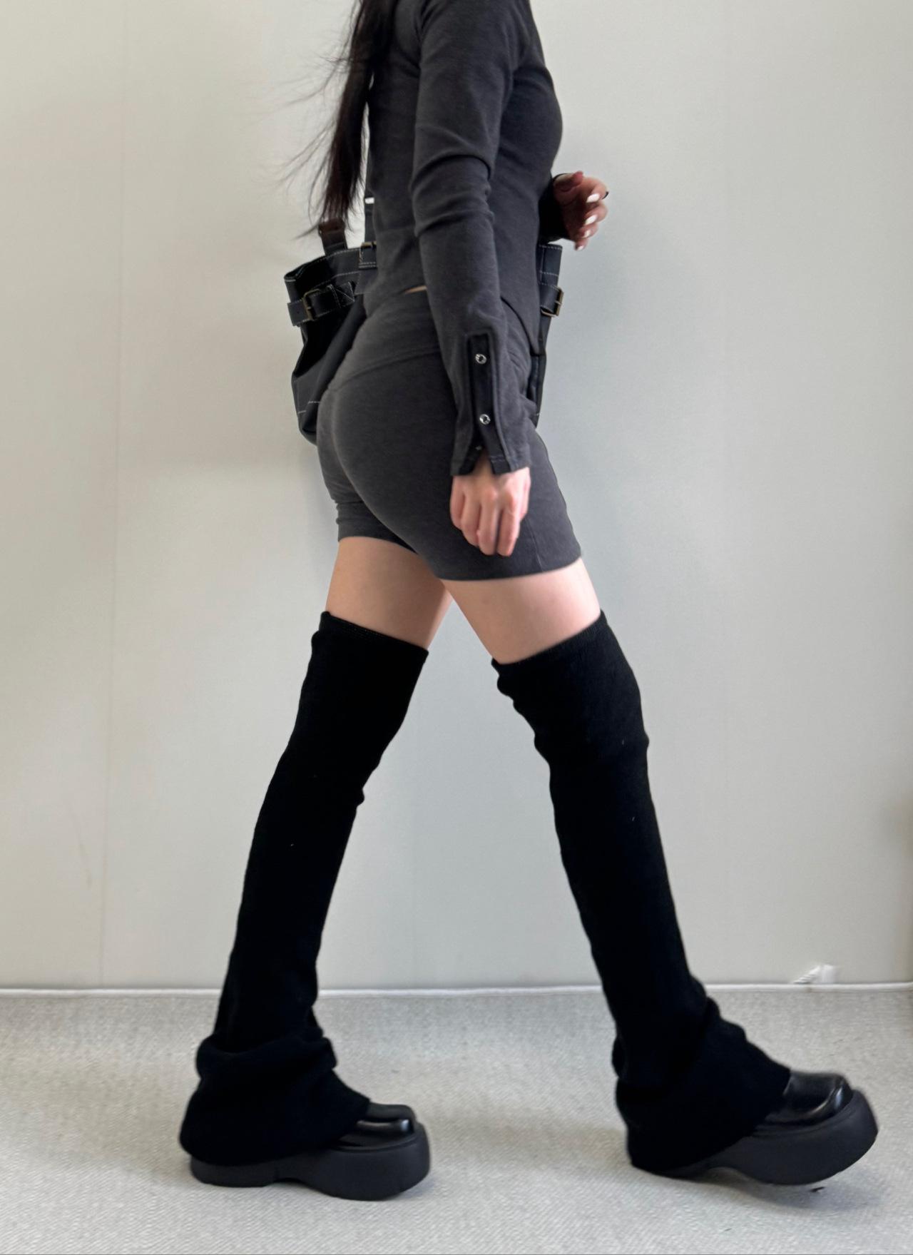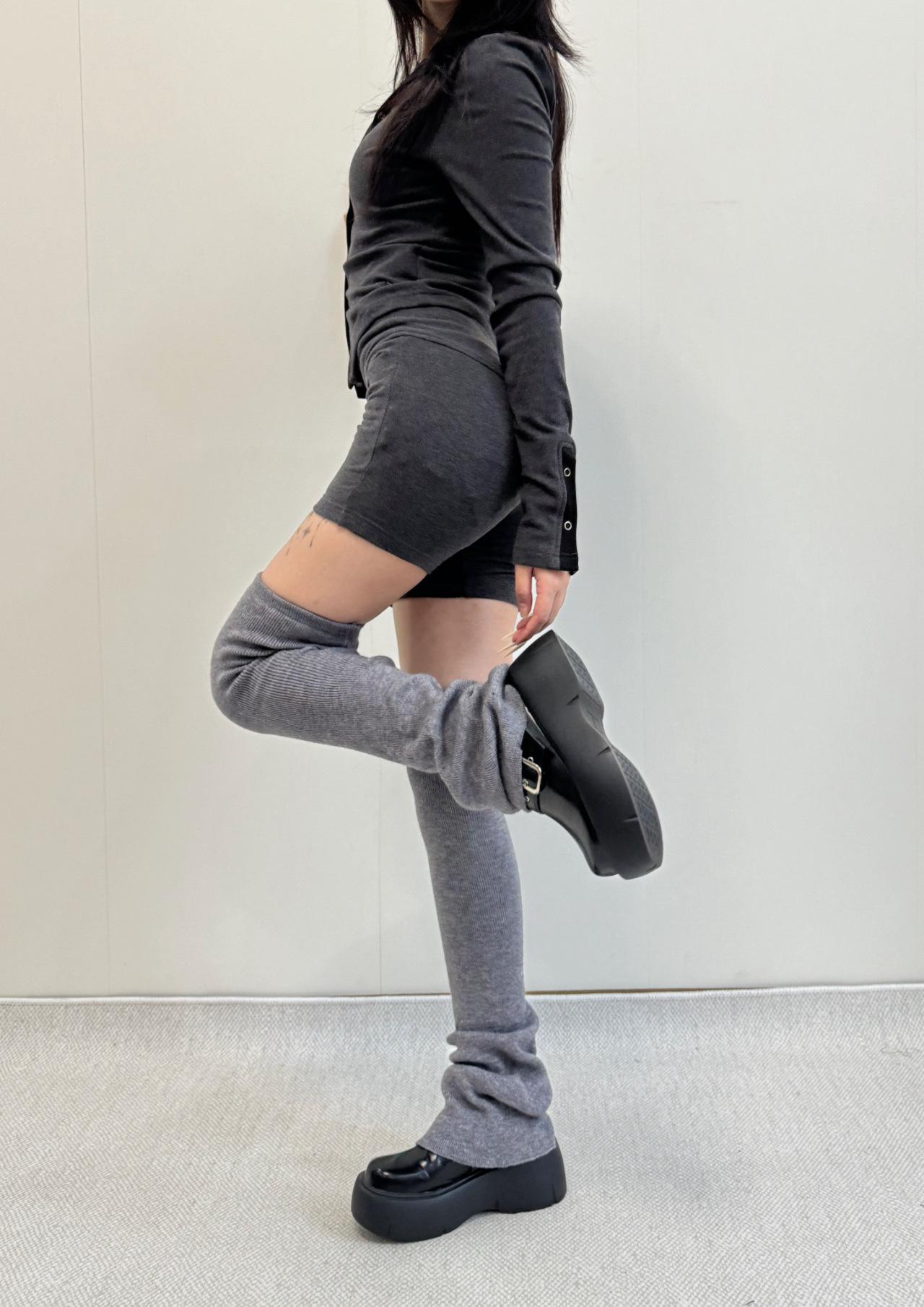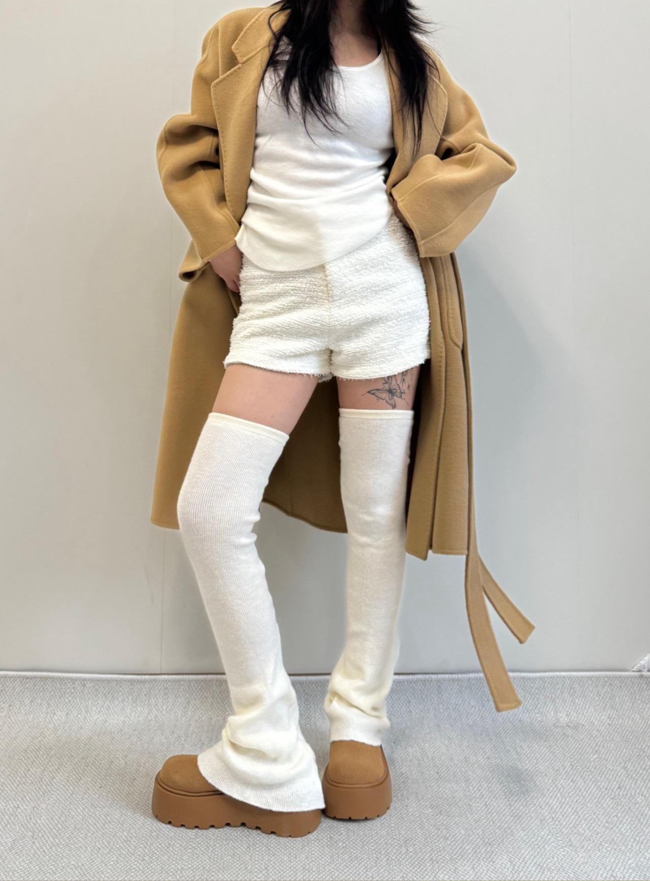 Otoño e Invierno Nuevos Calcetines Micro-altos Tejidos Atmósfera Blanco Cremoso Adelgazantes Combinan con Todo Cubre Piernas Color Sólido Calcetines por Encima de la Rodilla