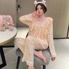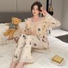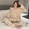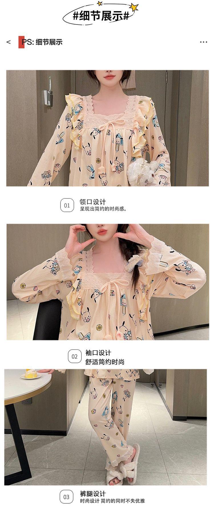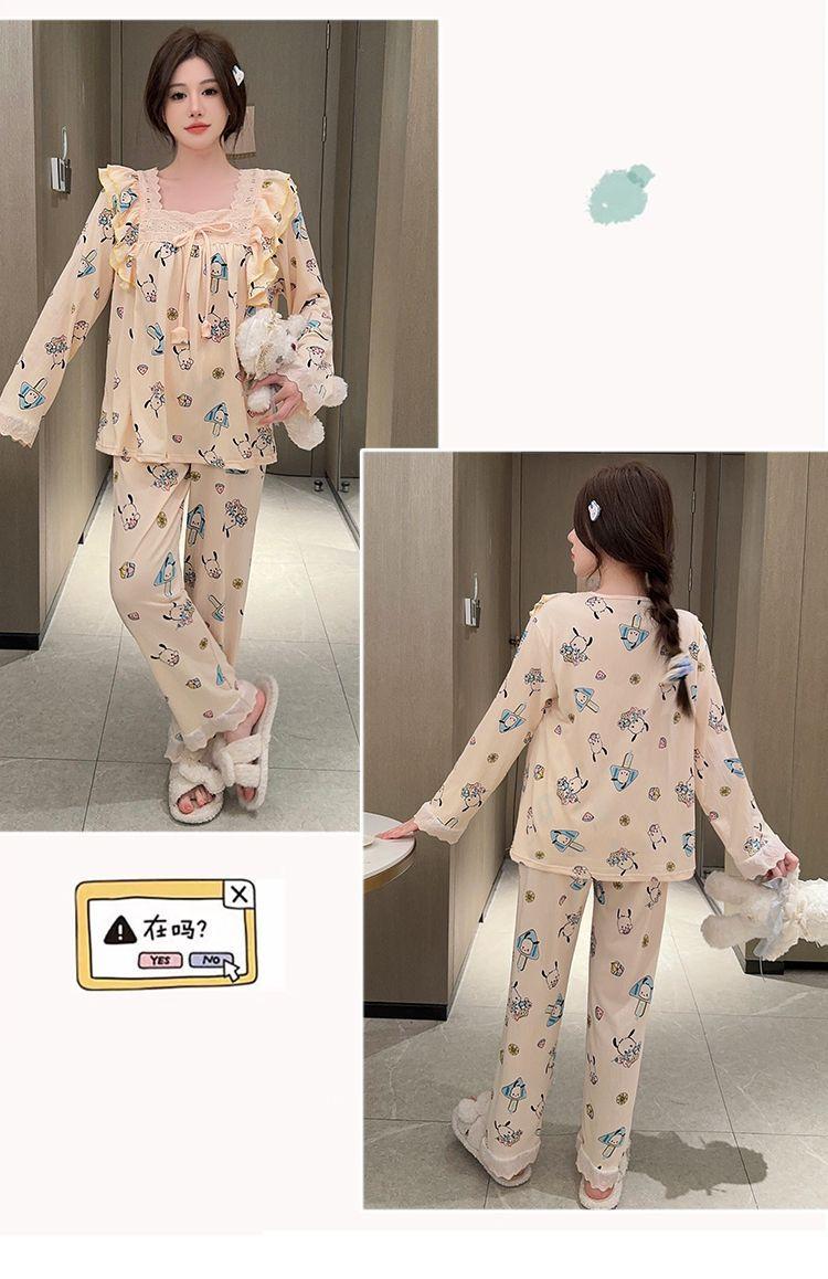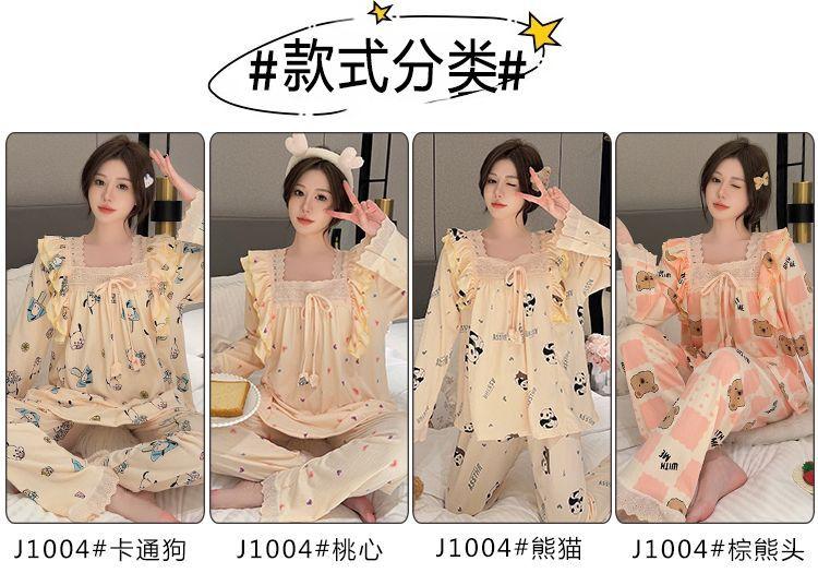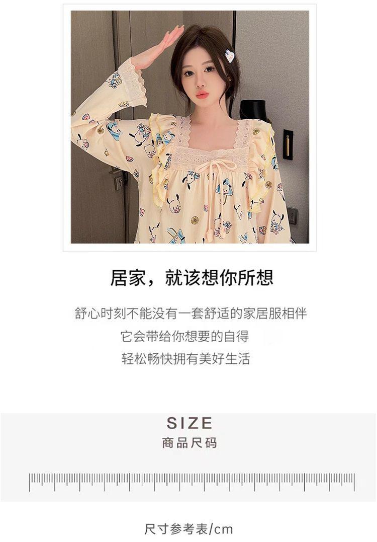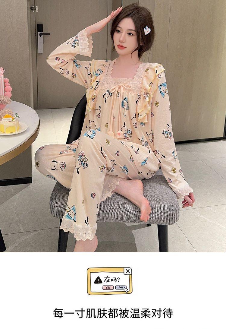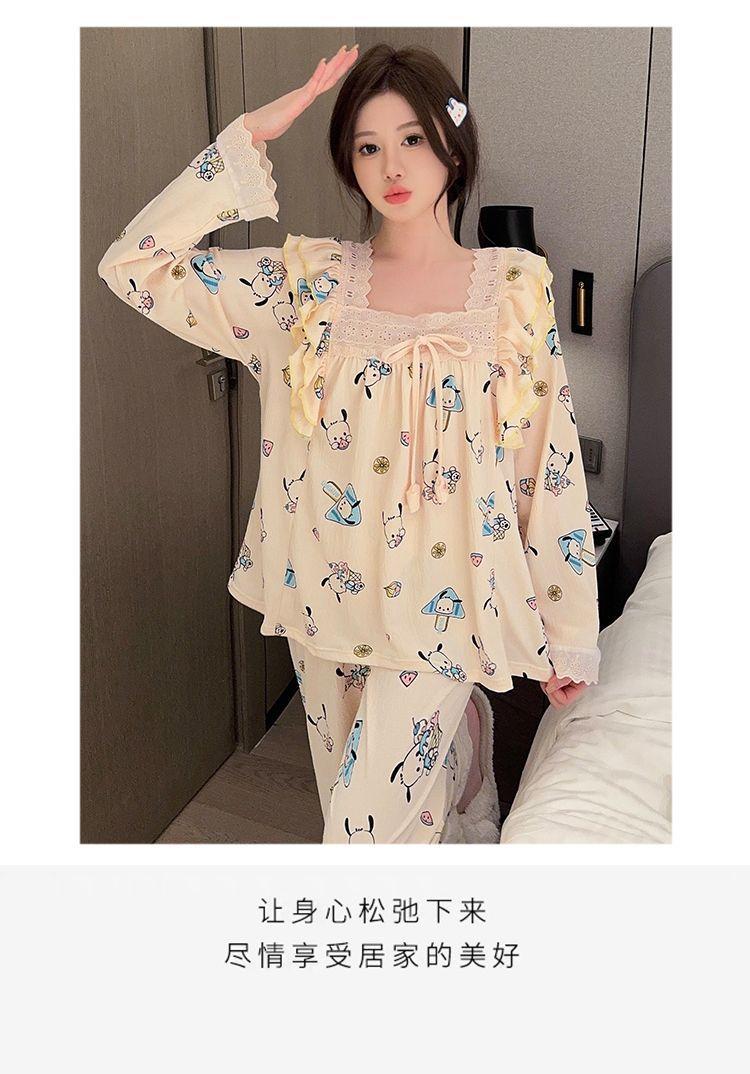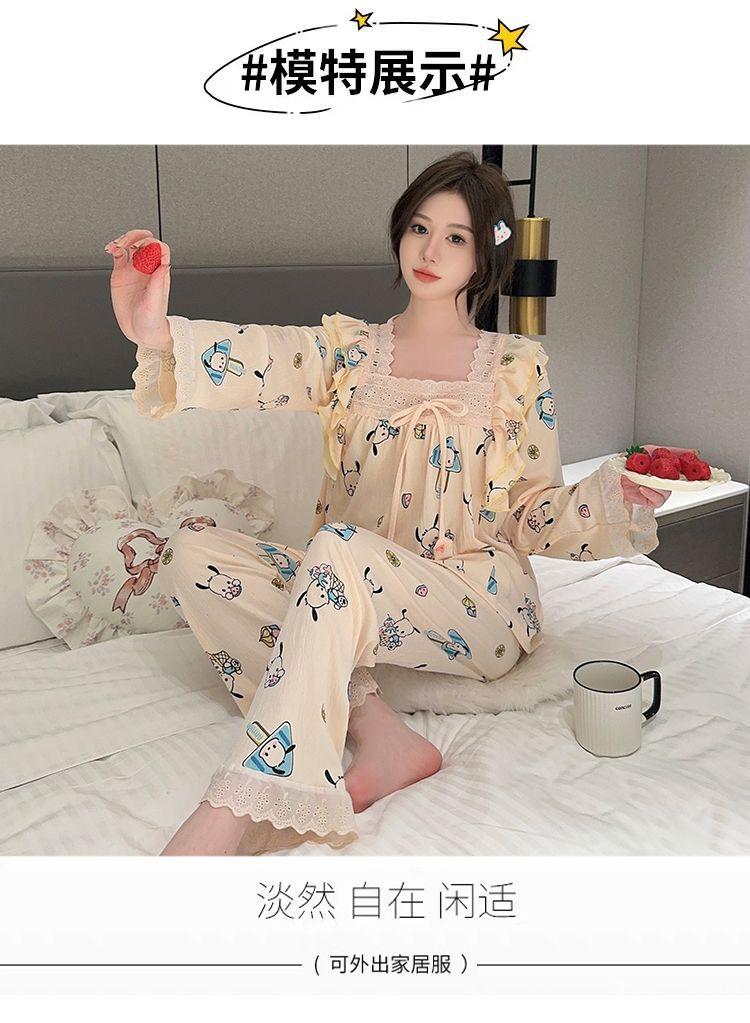 Pijama Arrugado para Mujer Moda Primavera y Otoño Estilo Princesa Dulce Pantalones de Manga Larga Talla Grande 120kg Conjunto de Ropa para el Hogar
