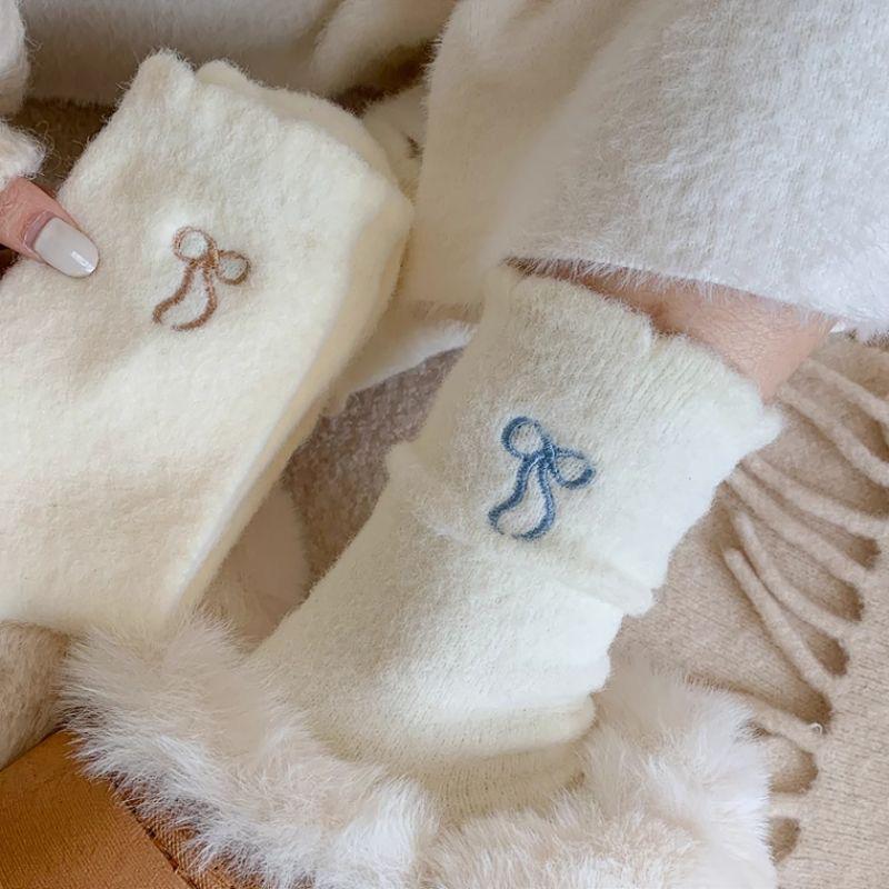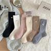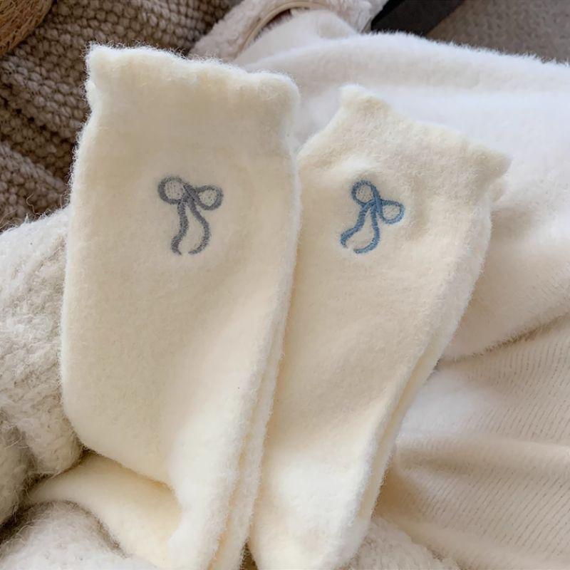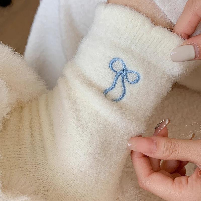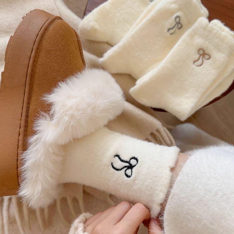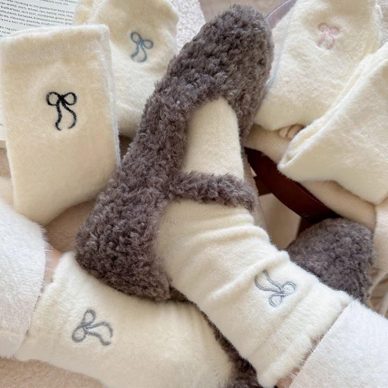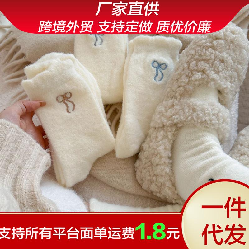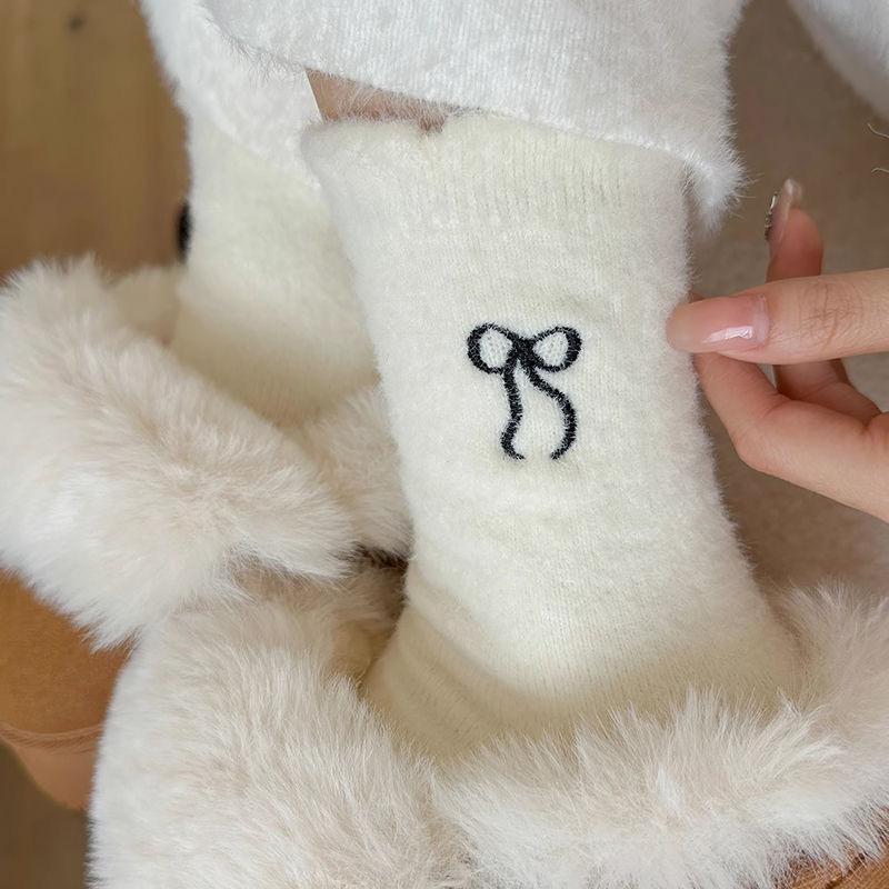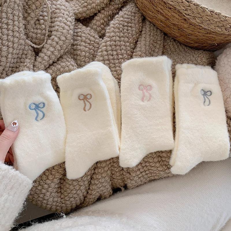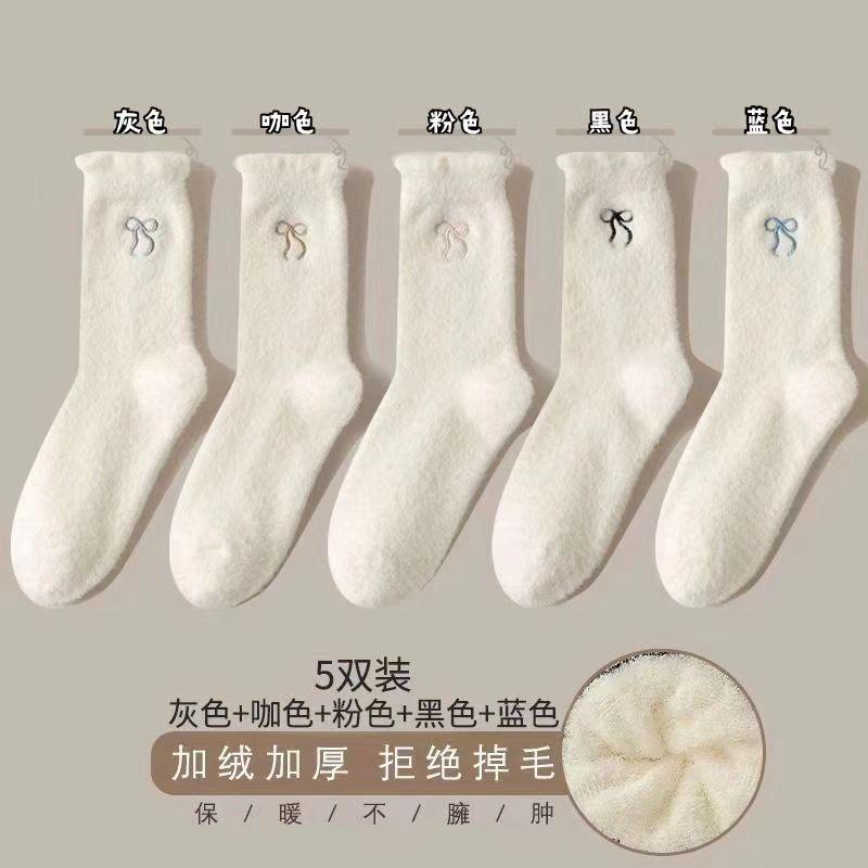 2024 nuevo otoño e invierno calcetines cálidos de felpa Joker engrosados alto valor de color lazo de cinco colores ceroso suave