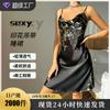 Estilo Verano Nuevo Europeo y Americano Transfronterizo Camisón de Satén No Elástico Sexy Pijama Ropa para el Hogar Falda con Tirantes para Mujer