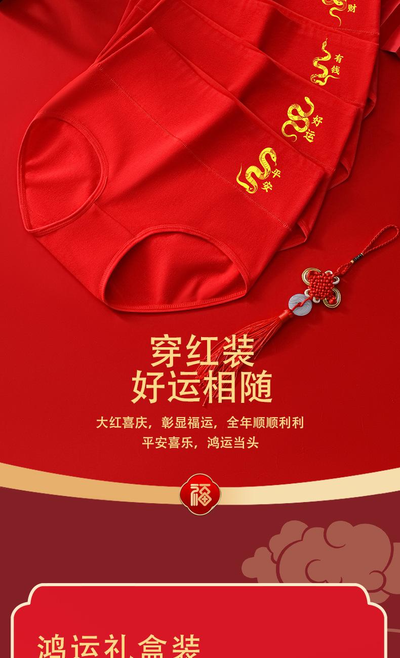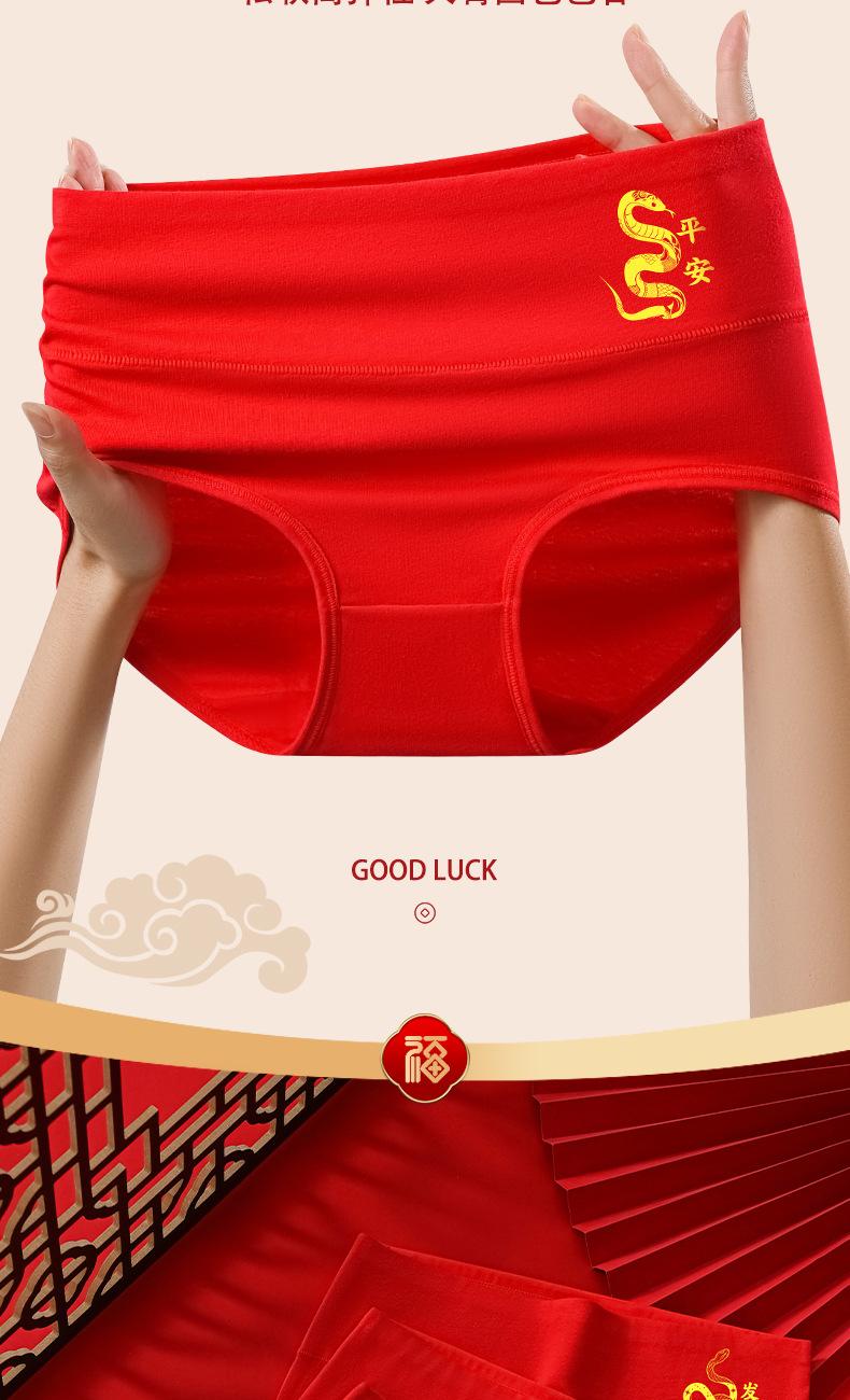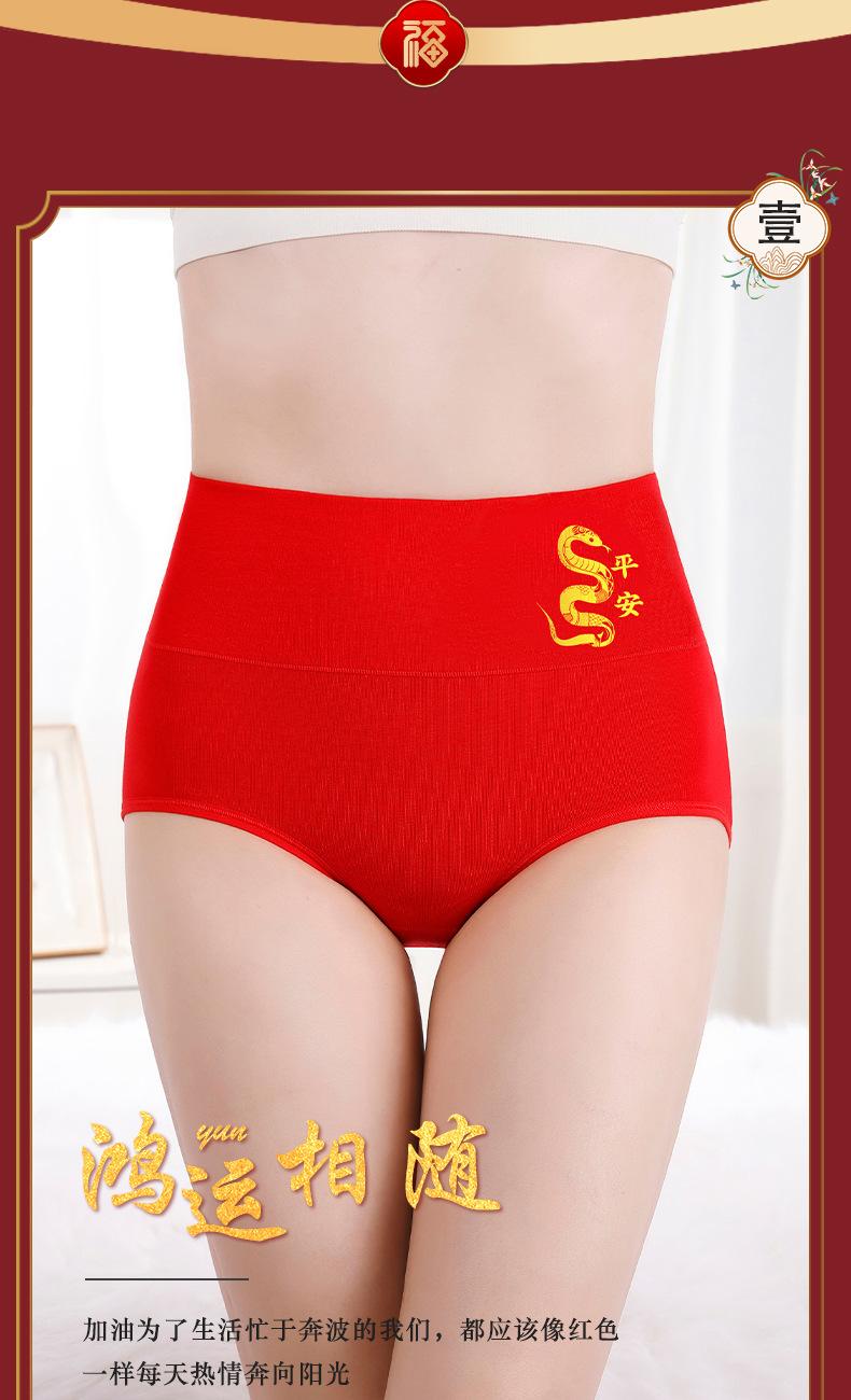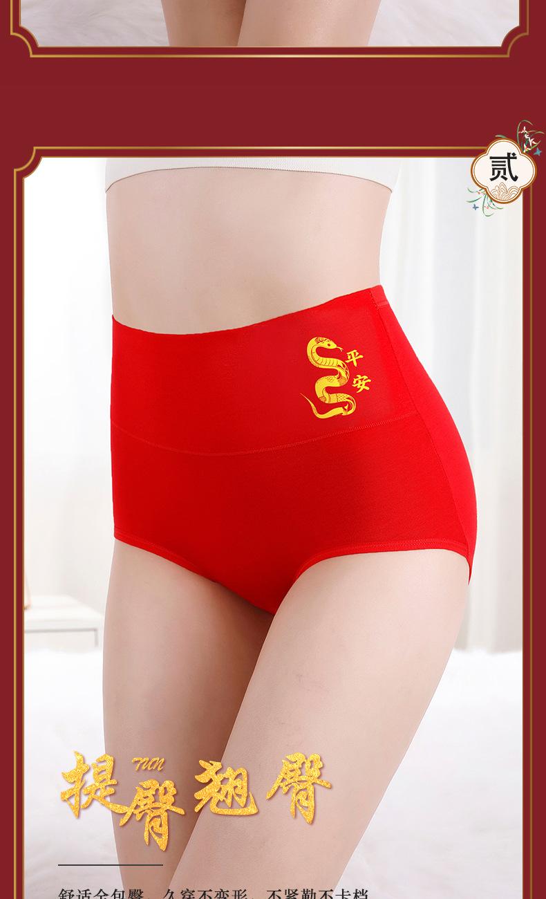 Año del Año del Zodíaco de la Serpiente Ropa Interior de Algodón Rojo Brillante para Niñas Boda Cintura Alta Talla Grande Calzones para Mujer En Caja Venta al Mayoreo