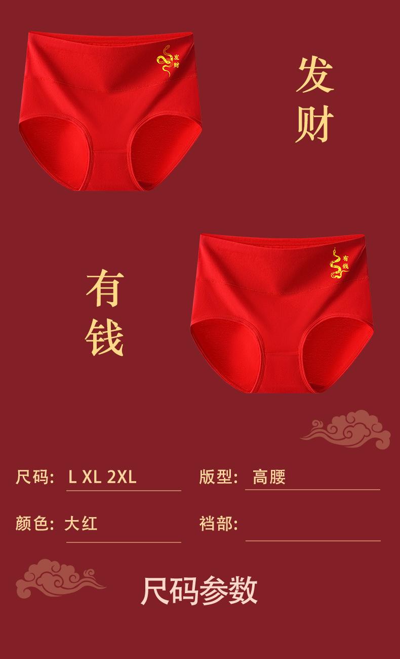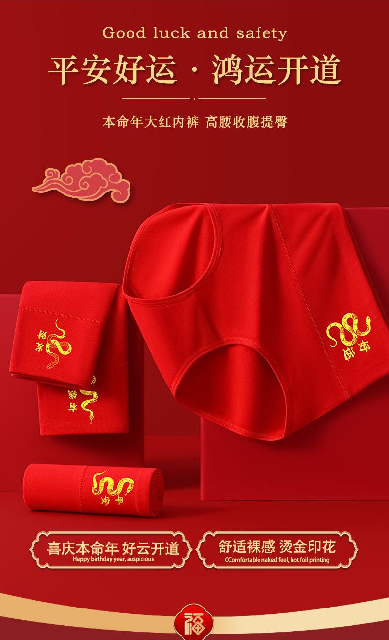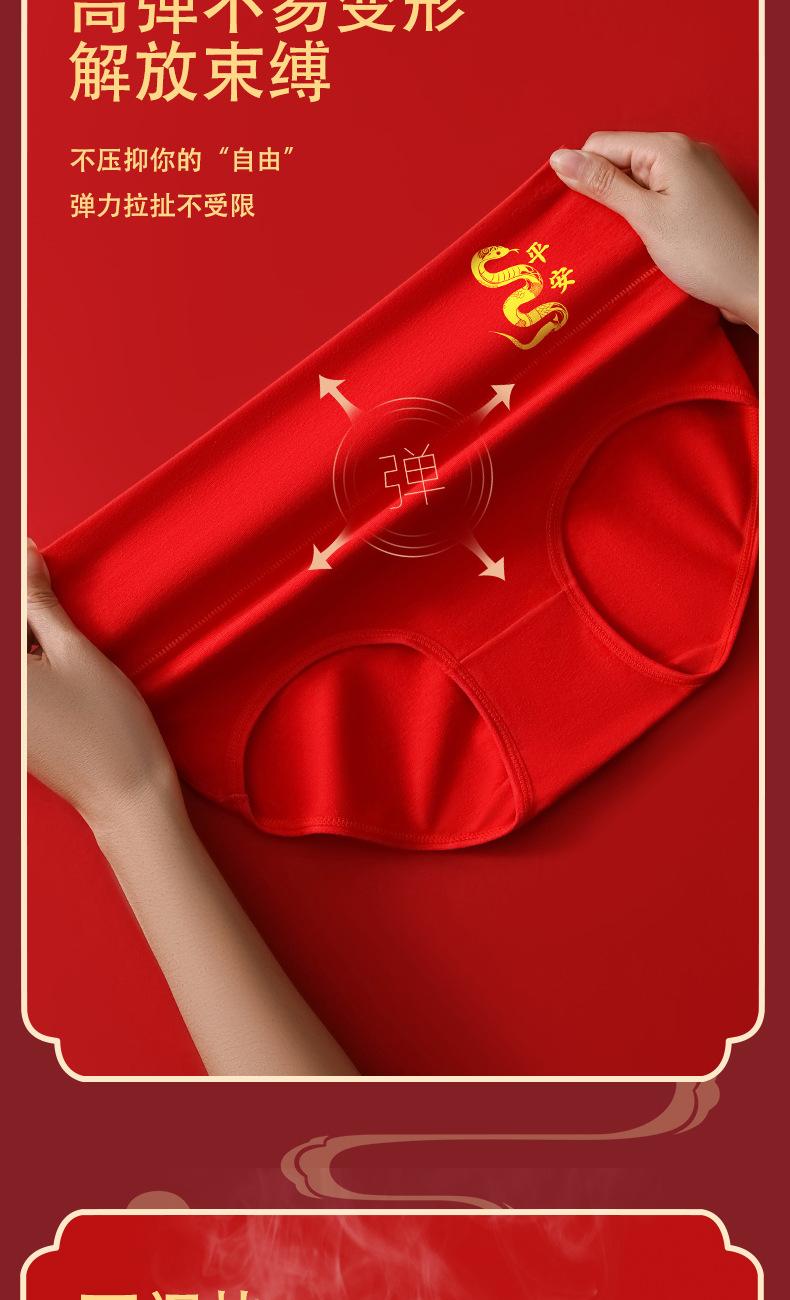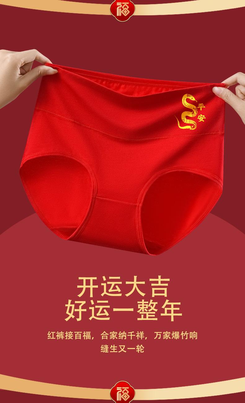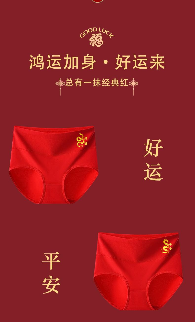 Año del Año del Zodíaco de la Serpiente Ropa Interior de Algodón Rojo Brillante para Niñas Boda Cintura Alta Talla Grande Calzones para Mujer En Caja Venta al Mayoreo