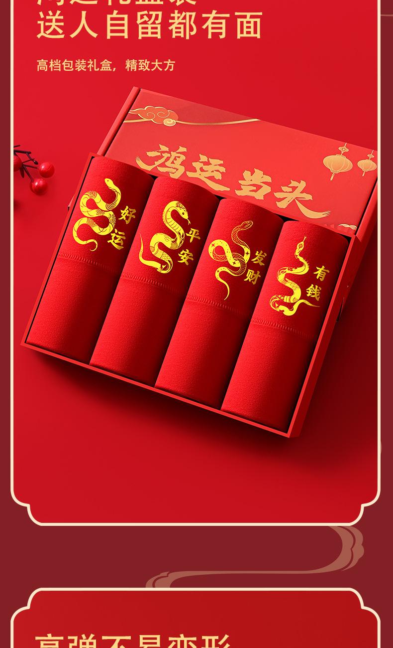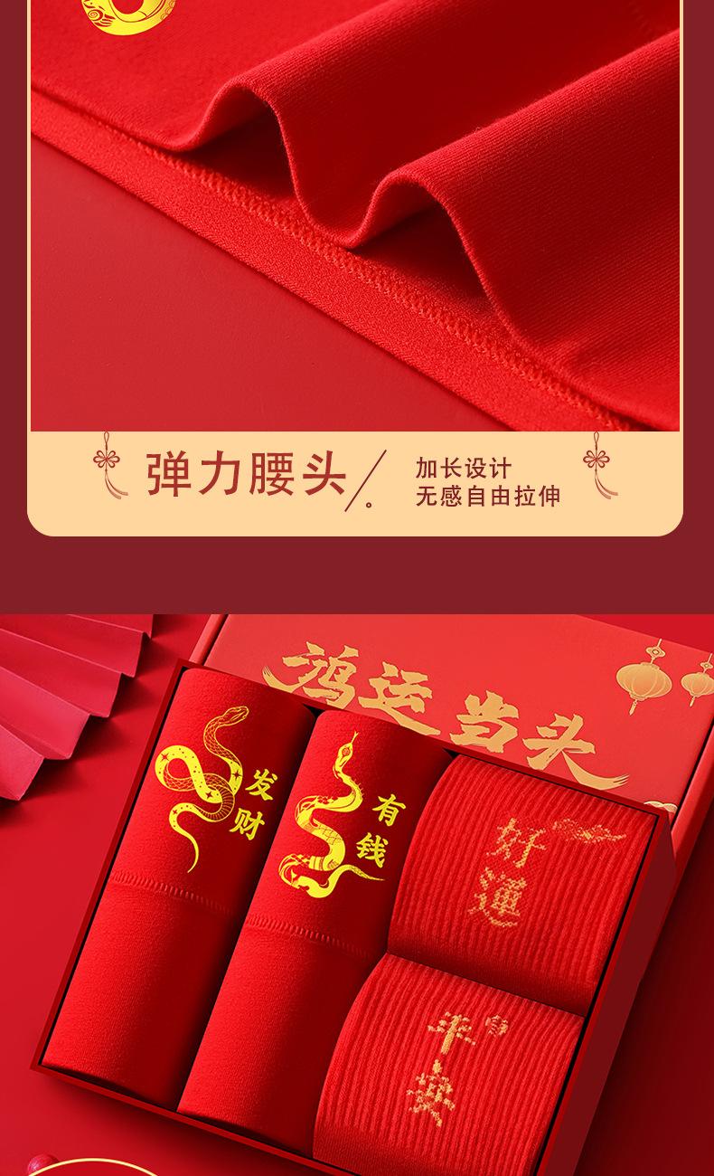 Women's high-waisted red mixed pack (4 boxes), Peace + good luck (2 underwear + 2 socks) gift box, Rich + gett...