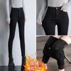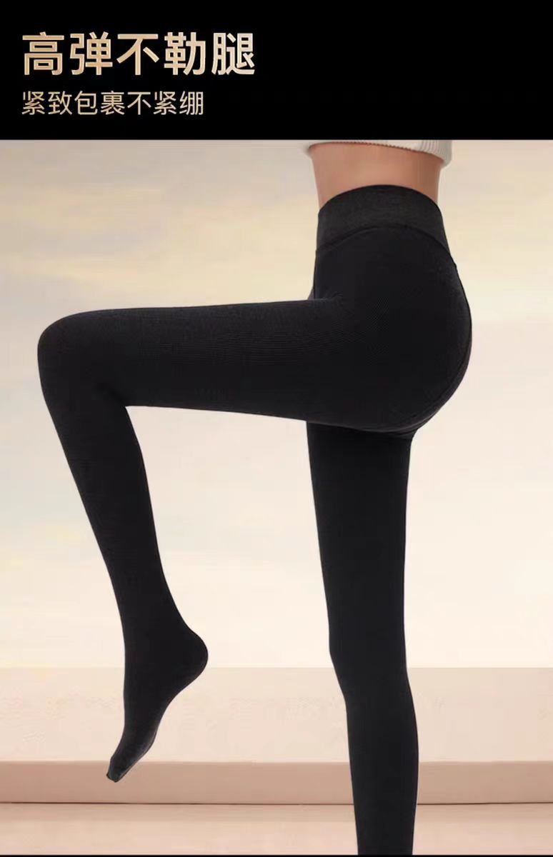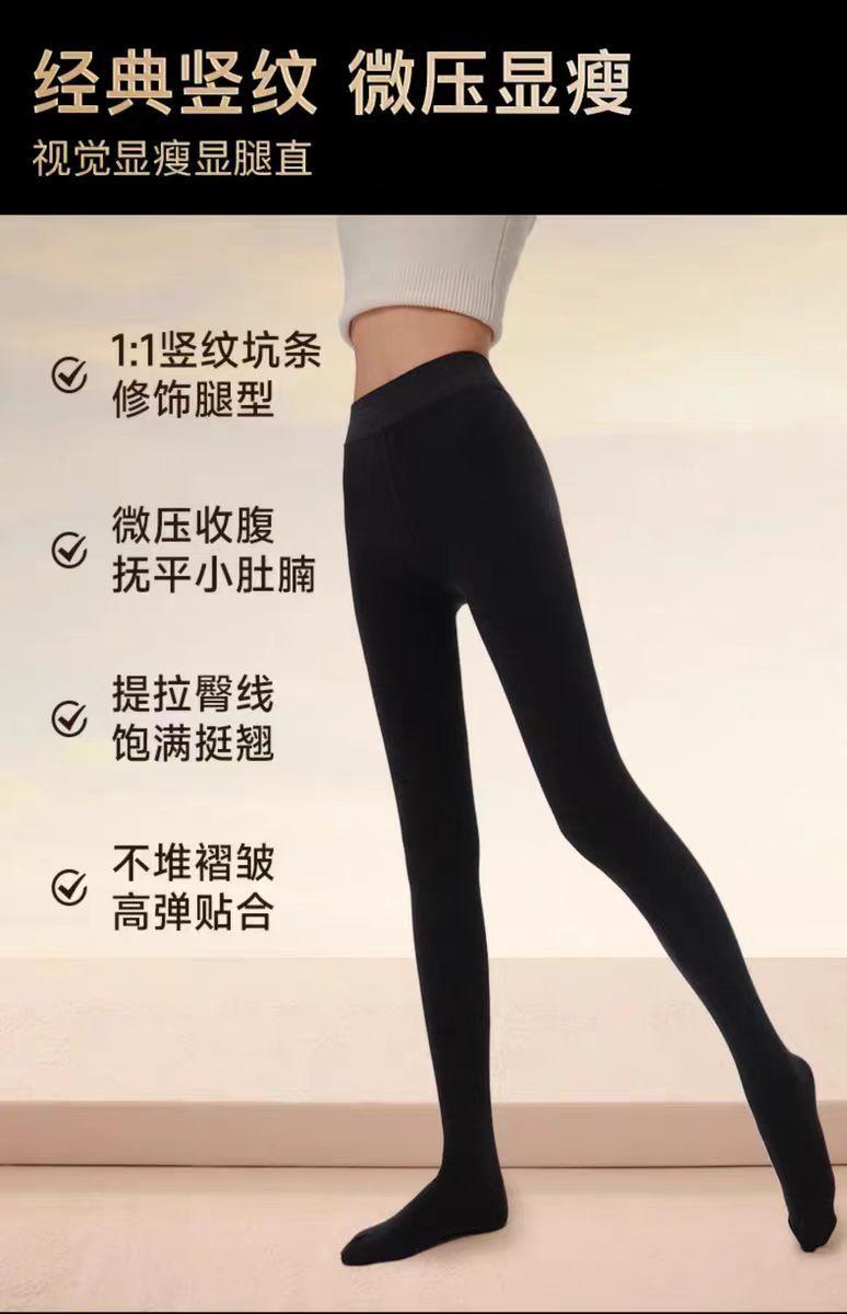 Leggings de terciopelo negro para mujer otoño e invierno ropa exterior calcetines bajos ajuste ceñido algodón rayas verticales mallas gruesas cálidas