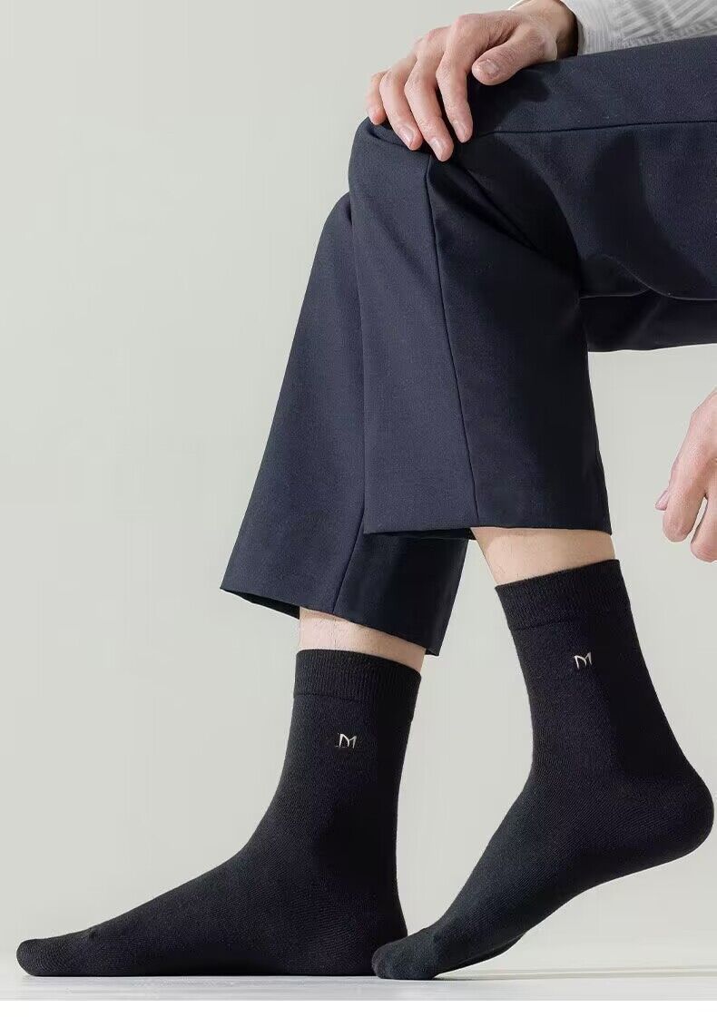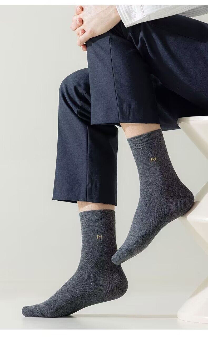 Calcetines de algodón gruesos de otoño e invierno para hombre, de media caña, de color sólido, absorbentes del sudor, de tubo largo y transpirables para las cuatro estaciones, fabricantes de calcetines de algodón para hombre al por mayor